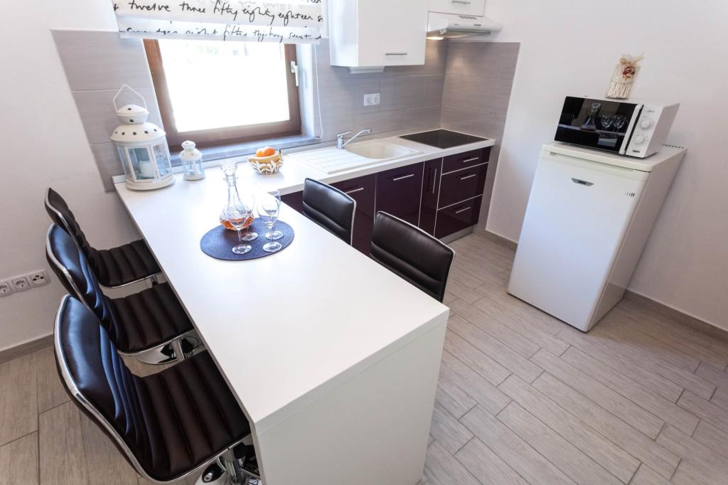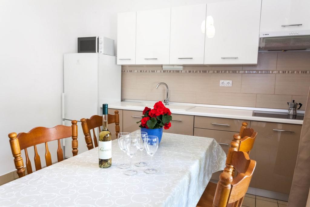 Bine ați venit în apartamentele noastre cu vedere la mare! Apartamentul, camera și studioul nostru sunt situate la etajul al doilea al casei, la doar 5 minute de mers pe jos de prima plajă și de centrul orașului - o locație ideală pentru o vacanță plăcută și relaxantă. Toate unitățile de cazare au o vedere frumoasă la mare și sunt dotate cu TV prin satelit și internet gratuit, astfel încât să puteți rămâne conectați în timpul vacanței. Indiferent dacă alegeți un apartament, o cameră sau un studio, vă puteți aștepta la confort și la o primire călduroasă. Sosirea este posibilă după ora 14:00, iar plecarea este până la ora 10:00. Așteptăm cu nerăbdare sosirea dumneavoastră și vă dorim un sejur de neuitat!