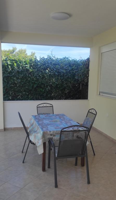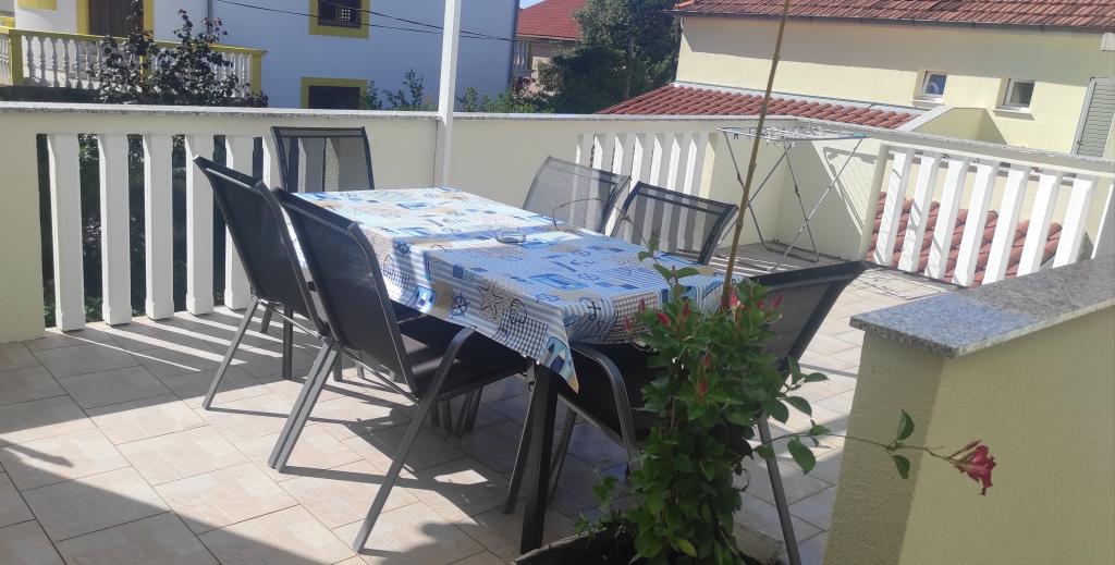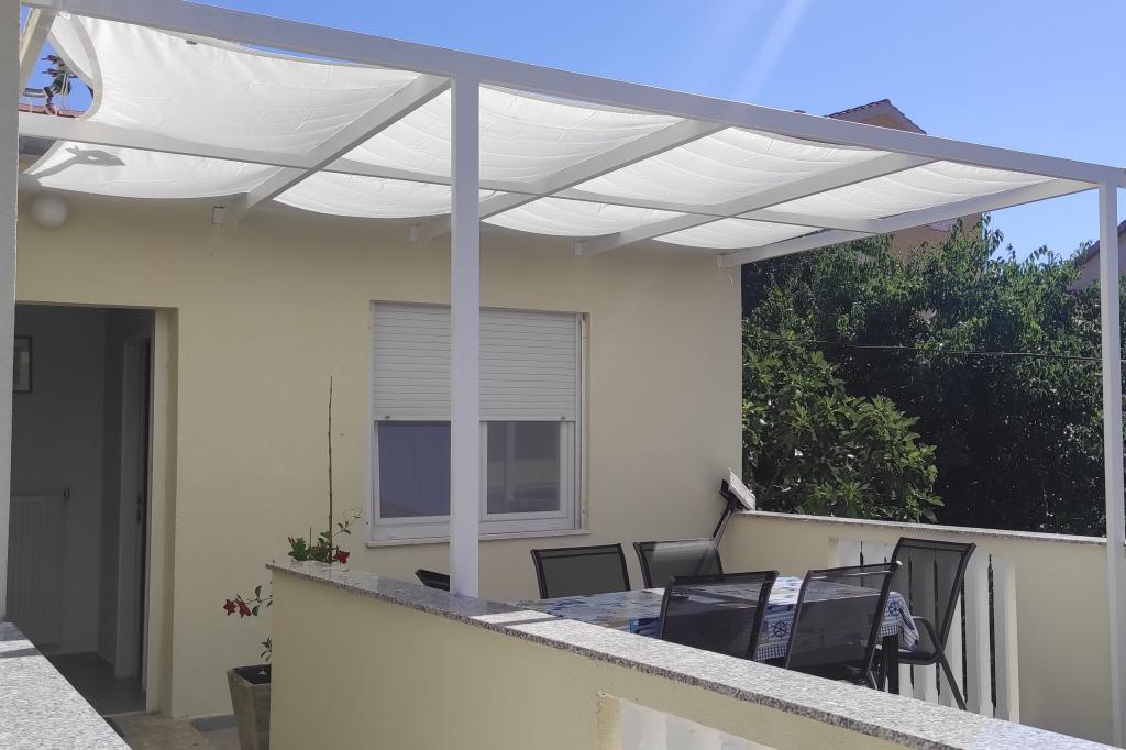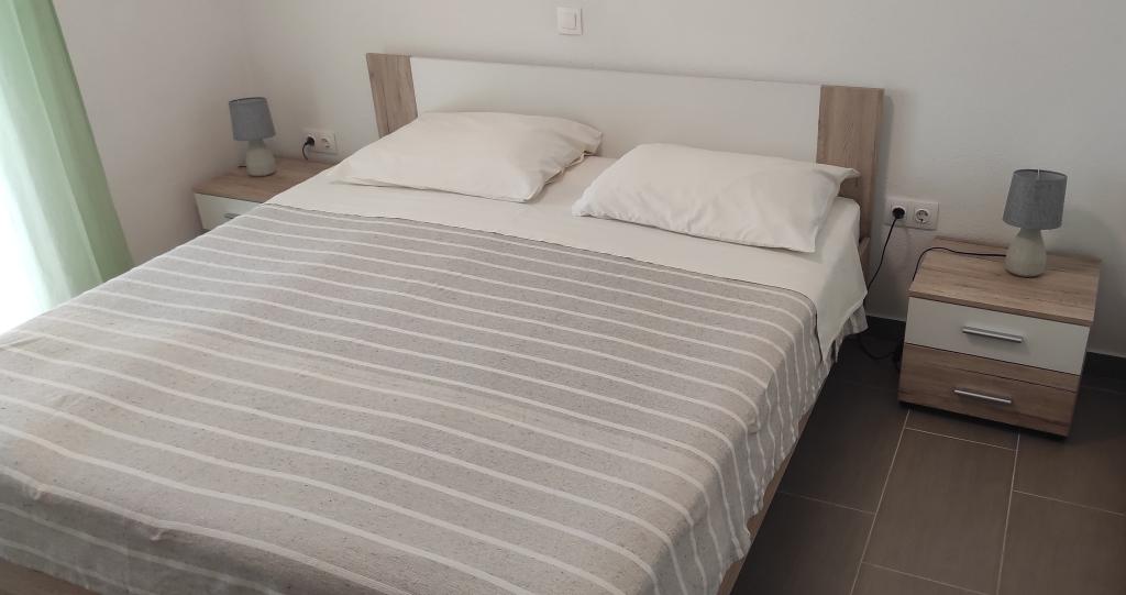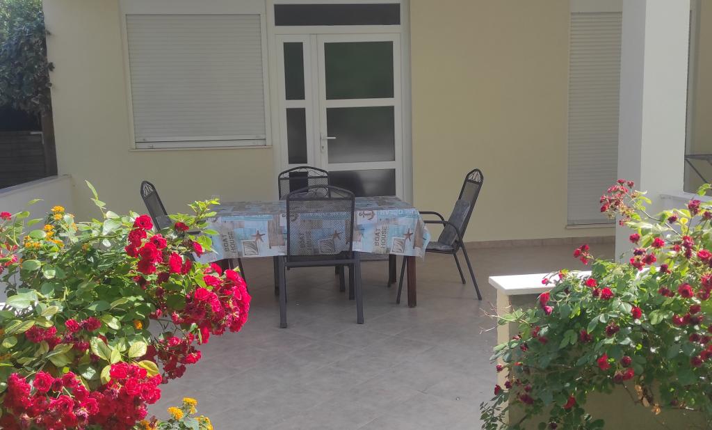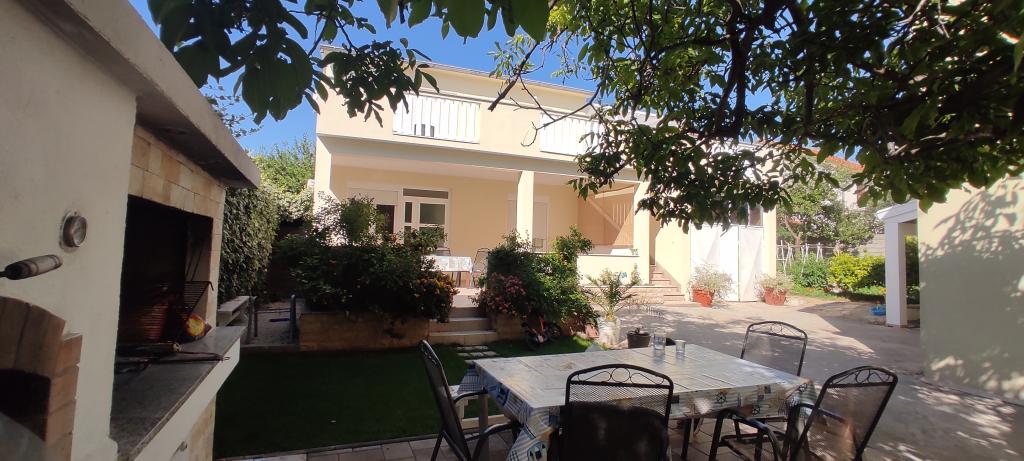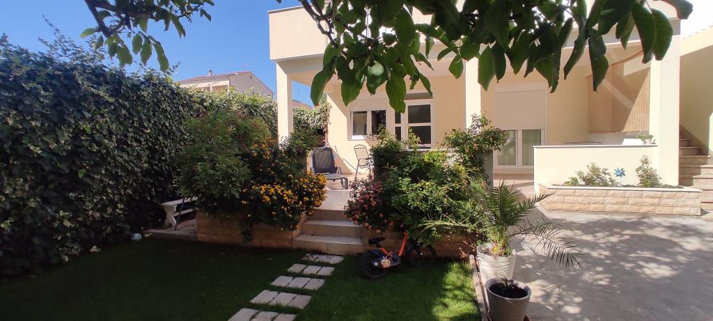 Casa familiala cu doua apartamente complet utilate este situata intr-o zona linistita a orasului, nu departe de centru (2 min de mers pe jos) si plaja (3 min de mers pe jos). Clădirea este înconjurată de o grădină mare, cu multă verdeață și umbră, și este îndepărtată de drum, ceea ce, pe lângă liniște, oferă și un sentiment de siguranță. Există, de asemenea, o parcare privată mare în față și un gazon potrivit pentru joacă. Apartamentul A2+2 este situat la parterul casei si este compus dintr-un dormitor, bucatarie, sufragerie, living cu canapea extensibila si baie. În față există o terasă spațioasă acoperită. Apartamentul A4+2 este situat la primul etaj si este format din doua dormitoare, bucatarie, sufragerie, living cu canapea extensibila si baie. In fata sunt doua terase spatioase acoperite. Toți oaspeții pot folosi grătarul din curte. Gazdele sunt prietenoase și primitoare.