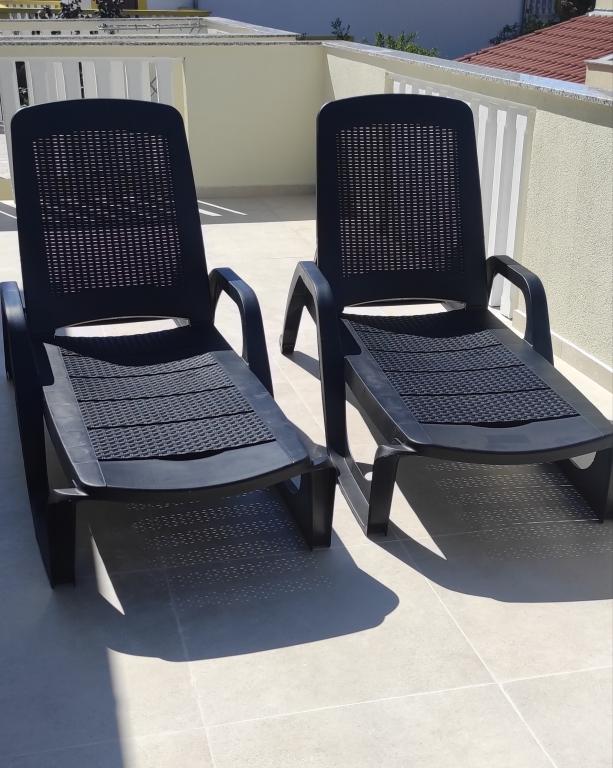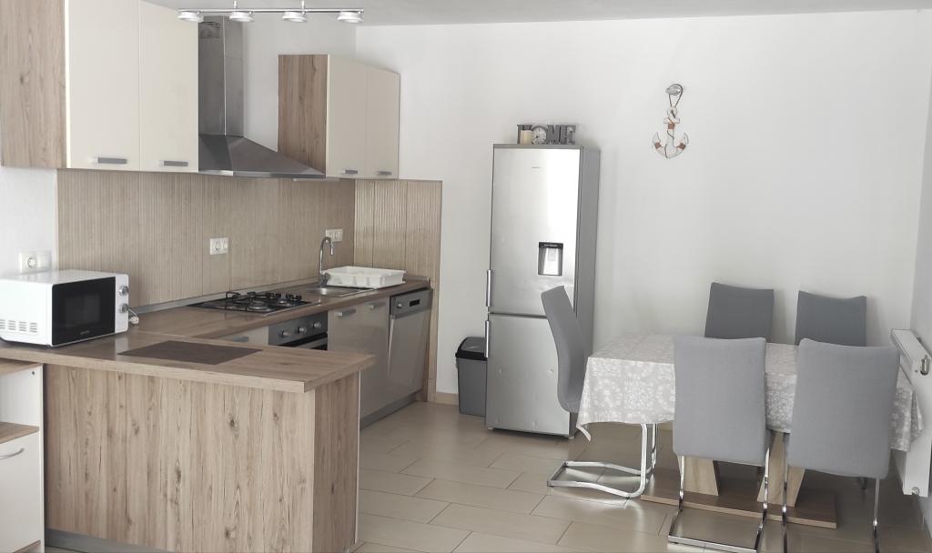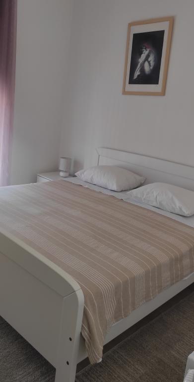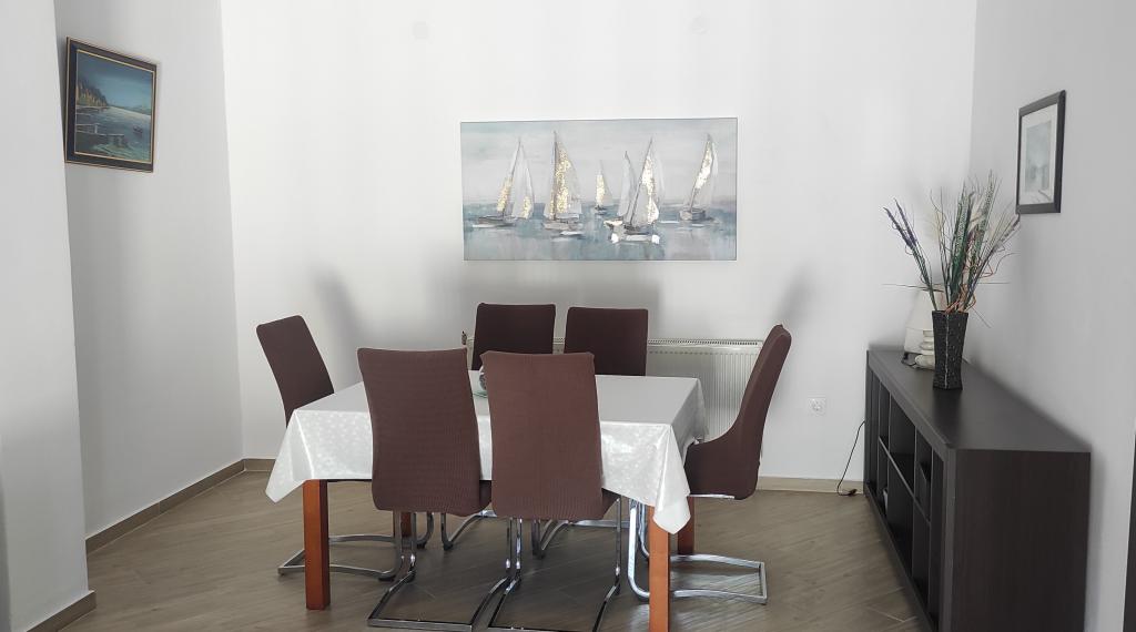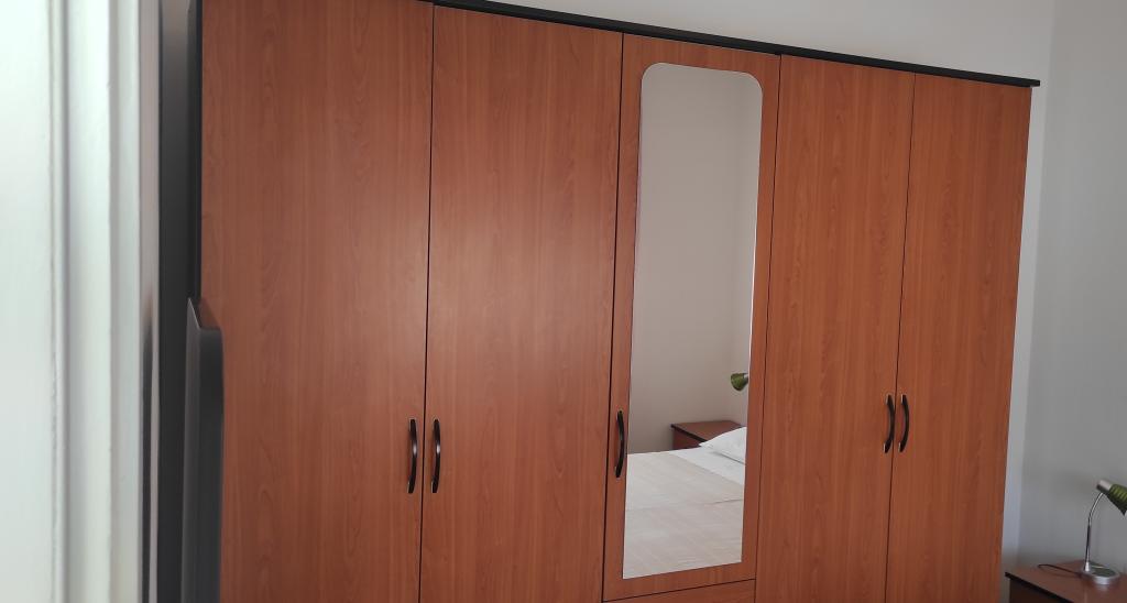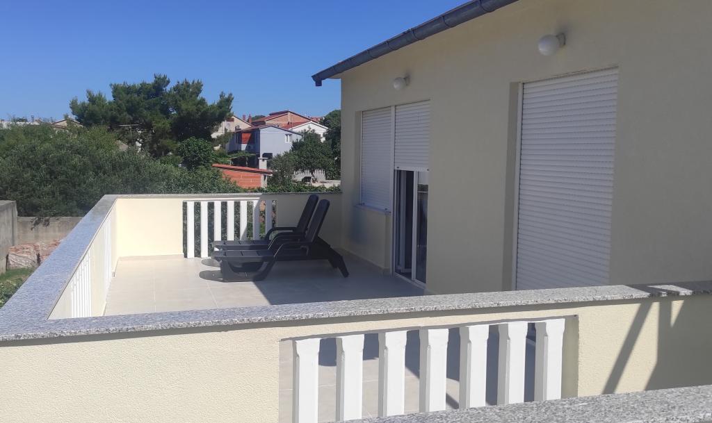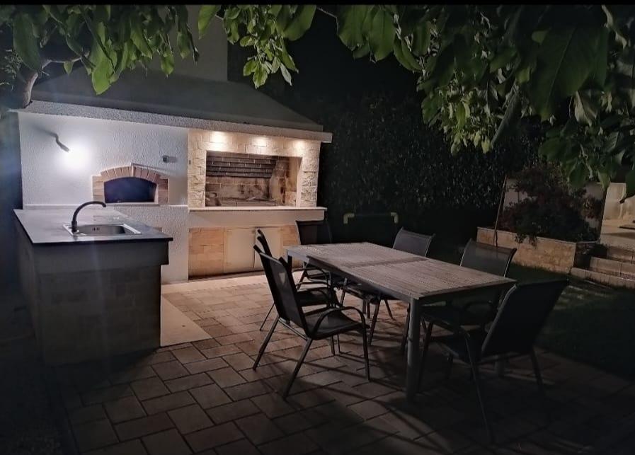 Casa familiala cu doua apartamente complet utilate este situata intr-o zona linistita a orasului, nu departe de centru (2 min de mers pe jos) si plaja (3 min de mers pe jos). Clădirea este înconjurată de o grădină mare, cu multă verdeață și umbră, și este îndepărtată de drum, ceea ce, pe lângă liniște, oferă și un sentiment de siguranță. Există, de asemenea, o parcare privată mare în față și un gazon potrivit pentru joacă. Apartamentul A2+2 este situat la parterul casei si este compus dintr-un dormitor, bucatarie, sufragerie, living cu canapea extensibila si baie. În față există o terasă spațioasă acoperită. Apartamentul A4+2 este situat la primul etaj si este format din doua dormitoare, bucatarie, sufragerie, living cu canapea extensibila si baie. In fata sunt doua terase spatioase acoperite. Toți oaspeții pot folosi grătarul din curte. Gazdele sunt prietenoase și primitoare.