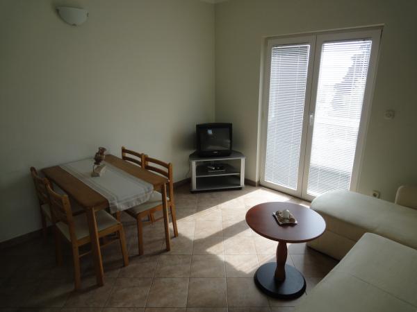 Facilitatea este situat la 70 de metri de plajă, la 200 de metri de locația oficiul poștal, magazine, restaurante, baruri ...... 5 minute. mers pe jos. Balcoane cu care se confruntă apartamente, cu vedere frumoasă la mare-plaja, insule. Apartamente complet mobilate, cu o mulțime de lumină și airiness. Loc de parcare pentru autoturisme în curtea clădirii.