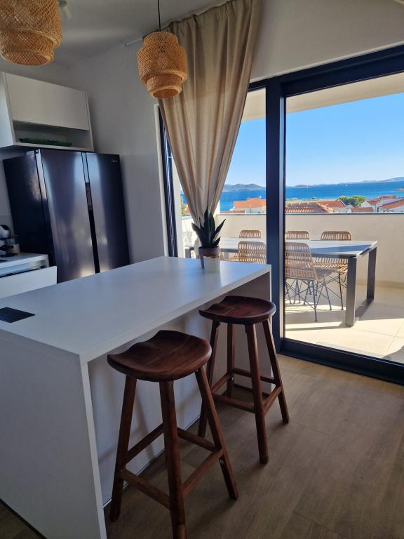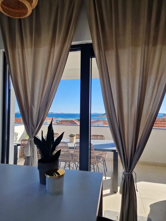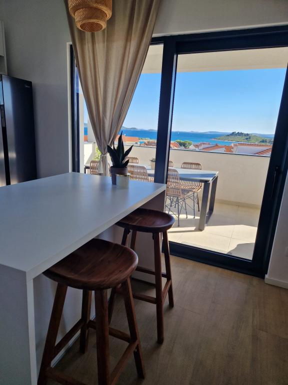 Apartamente recent decorate, situate într-o zonă liniștită din Pakoštan, cu vedere la mare și trei insule frumoase, la 3 minute de mers pe jos de centru și la 4 minute de plaja Janice. Există magazine, restaurante, oficiul poștal , iar o clinică și o farmacie sunt, de asemenea, în apropiere.