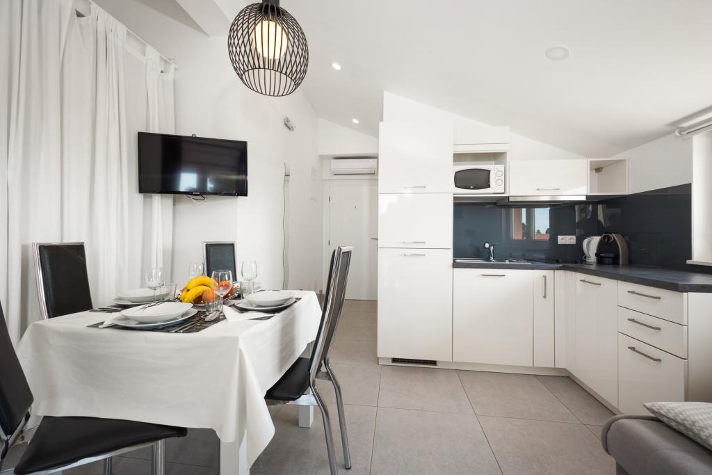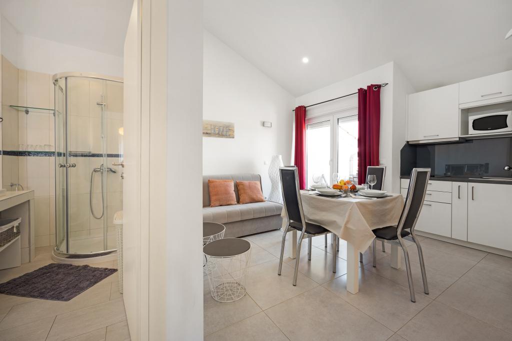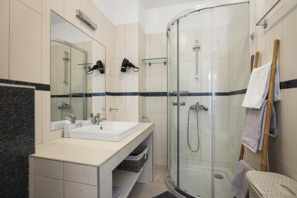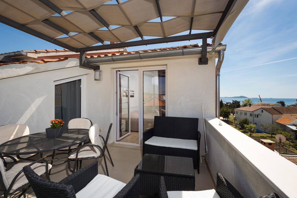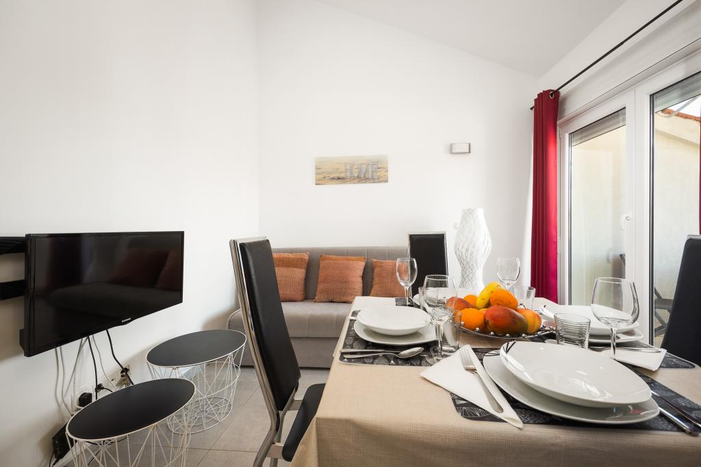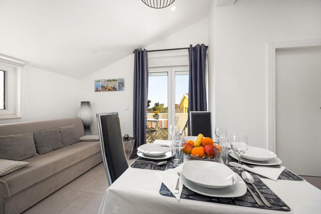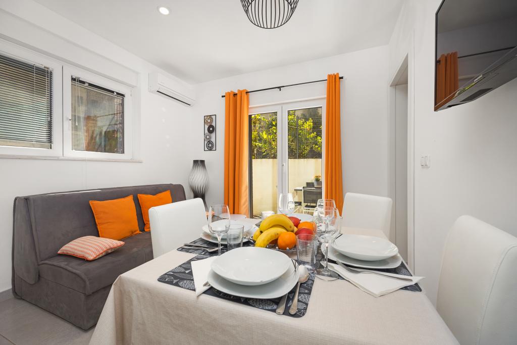 Pakoštane este un mic oraș dalmat situat în centrul coastei Adriatice, cu o poziție unică între marea frumoasă și Lacul Vrana. Pakoštane este înconjurat de patru parcuri naționale (Kornati, Krka, Paklenica și Lacurile Plitvice) și două parcuri naturale (Telašćica și Lacul Vrana) de o frumusețe unică, precum și de două orașe mari, Šibenik și Zadar. Apartamentele Bluemare sunt ideal situate în Pakoštane, la doar 50 de metri de plajă. În imediata vecinătate a casei se află magazine, o bancă, restaurante, cafenele, case de schimb valutar și toate celelalte facilități necesare care vă vor face șederea mai plăcută. Casa a fost construită în 2012 și conține cinci apartamente decorate luxos. Toate apartamentele sunt complet utilate și gata de sosire. Fiecare apartament are: o bucătărie utilată cu toate electrocasnicele și ustensilele pentru gătit și mâncat, un aparat de cafea, un fierbător, televizor digital cu programe prin satelit, aer condiționat, seif, internet gratuit, terasă, băi și dormitoare echipate. Toți oaspeții au la dispoziție: parcare, grătar, loc de joacă pentru copii, bucătărie de vară cu cuptor, mașină de spălat vase și toate ustensilele de gătit. Animalele dumneavoastră de companie mici (câini) sunt, de asemenea, binevenite în apartamente. Apartamentul Bronze este situat la parterul inferior și poate găzdui maximum 4 persoane. Este format dintr-un dormitor cu pat dublu, o baie complet utilată cu duș, o terasă, o bucătărie și un living cu o canapea care poate fi extinsă și devine un pat confortabil pentru două persoane. Apartamentul Silver este situat la primul etaj și poate găzdui maximum 5 persoane. Este format dintr-un dormitor cu pat dublu și un pat mai mic, o baie complet utilată cu duș, o terasă, o bucătărie și un living cu o canapea care poate fi extinsă și devine un pat confortabil pentru două persoane. Apartamentul Gold este situat la primul etaj și poate