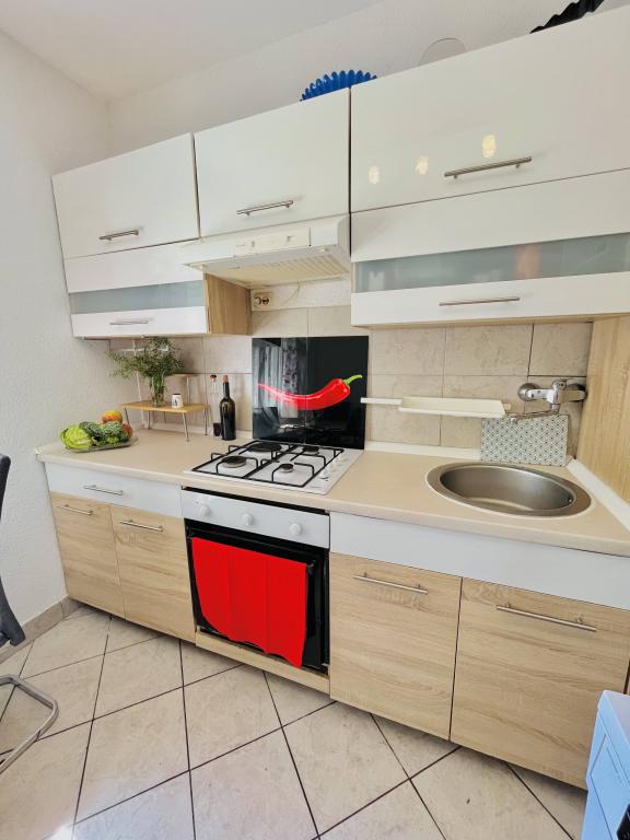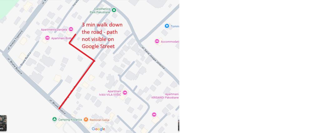 Apartamentele Danijela sunt situate în apropiere de stațiunea atractivă Pine Beach și de campingul Adria-Kozarica. Oaspeții noștri sunt cel mai adesea familii cu copii mici. pentru ca suntem situati pe o strada linistita fara zgomot si trafic. Strada este ceva mai ingusta la intrare si neasfaltata, dar scurta..si avem parcare gratuita in fata casei. Nu avem vedere la mare. Prima plaja este la aproximativ 300 m distanta prin campingul Kozarica, iar celelalte plaje sunt la aproximativ 500-1000 m distanta. Inchiriem 2 apartamente la primul etaj al casei. care este și ultimul. Fiecare apartament are 2 dormitoare, o bucătărie cu living, o baie cu duș și un mic balcon cu copertă. Bucătăria are plită electrică, ustensile de bucătărie complete, mașină de spălat vase, frigider cu congelator mare, mașină de spălat. Sunt furnizate fier de călcat, masă de călcat, uscător de păr și prosoape, precum și toată lenjeria. Apartamentul Riba are saltele de înaltă calitate (Nou) pentru cea mai bună noapte de odihnă. Celelalte paturi au saltele de calitate si saltele care au 2-3 ani, in functie de pat.