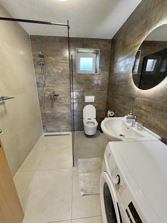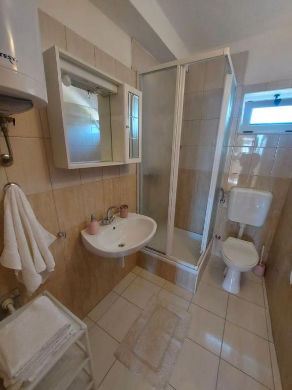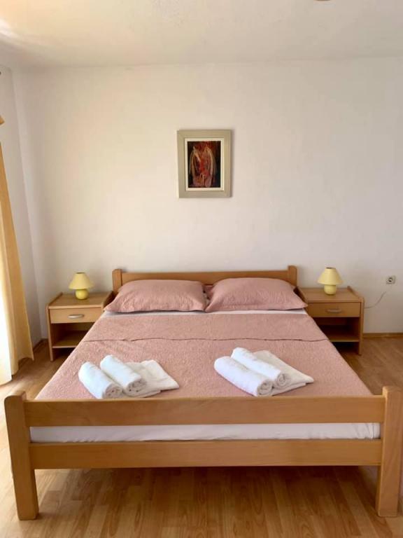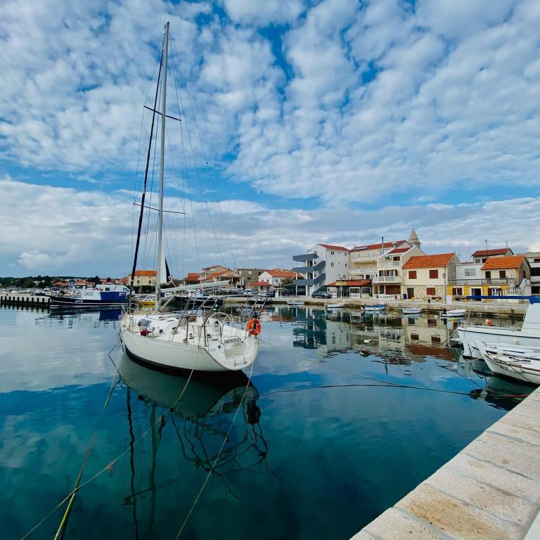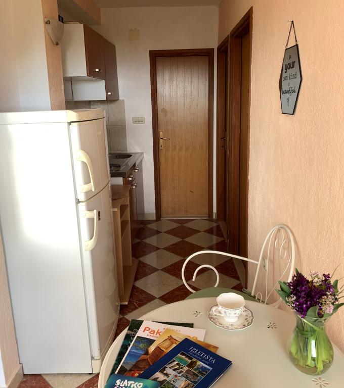 Apartamente moderne situat pe un mic deal într-o zonă liniștită Pakoštane, cu vederi frumoase la mare și insule, și totuși atât de aproape de oraș și de plajă, numeroase restaurante și sadržaja.Udaljenost un turist mare este numai cazare 300m.Nudimo confortabilă în patru camere ( trei apartamente si un apartament studio).