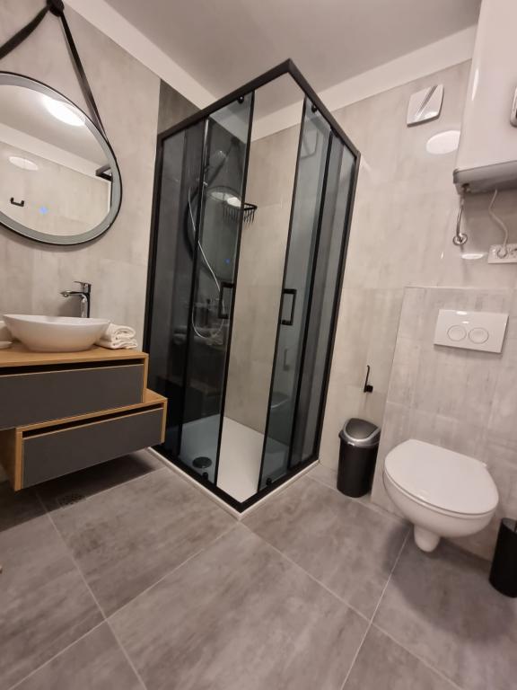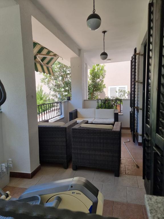 Apartamente moderne decorate în partea centrală a Pakostane. Cu aer condiționat, complet utilate (prosoape, lenjerie de pat etc.) Locuinta este situata la 400 m de mare, la 200 m de centru. Cel mai apropiat magazin este la 20m distanță, iar brutăria 15m.