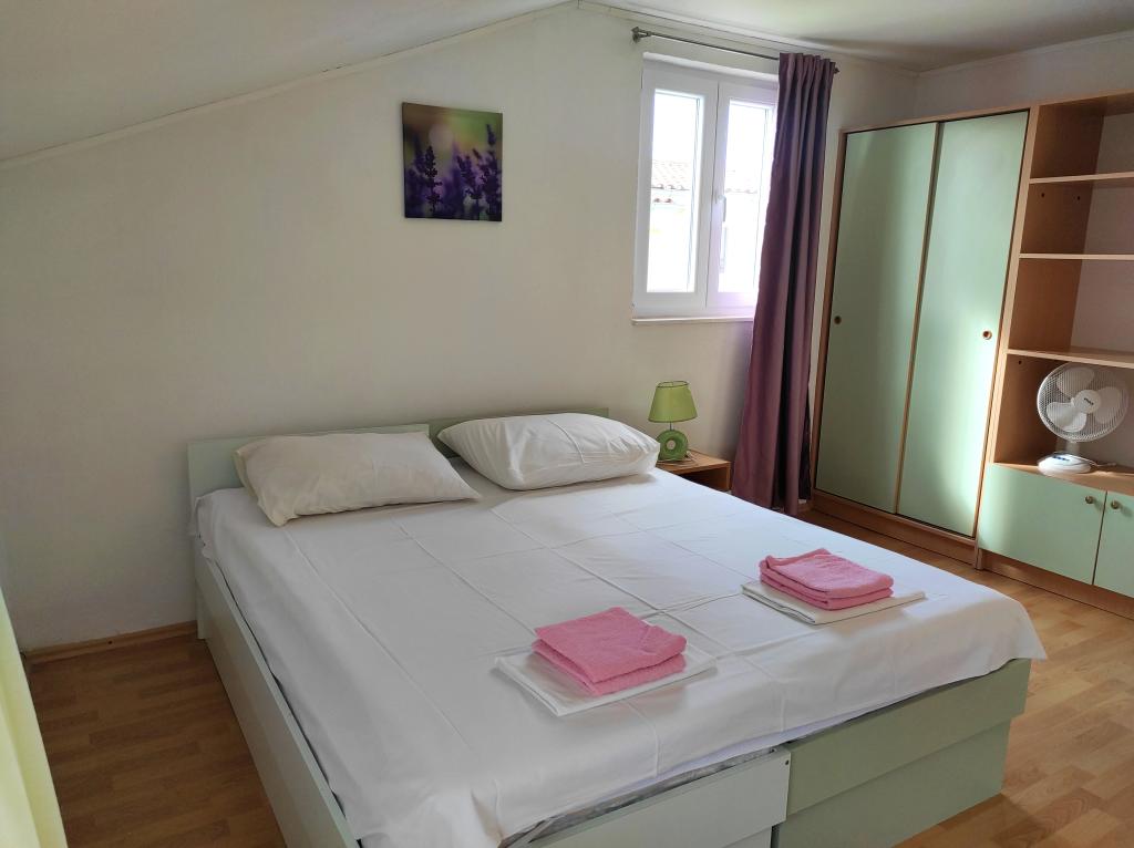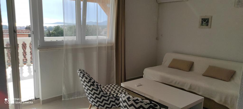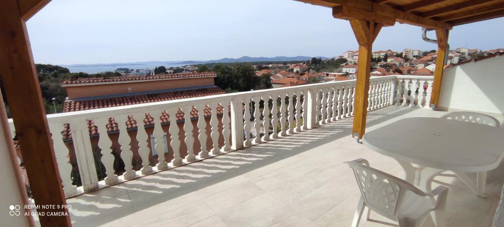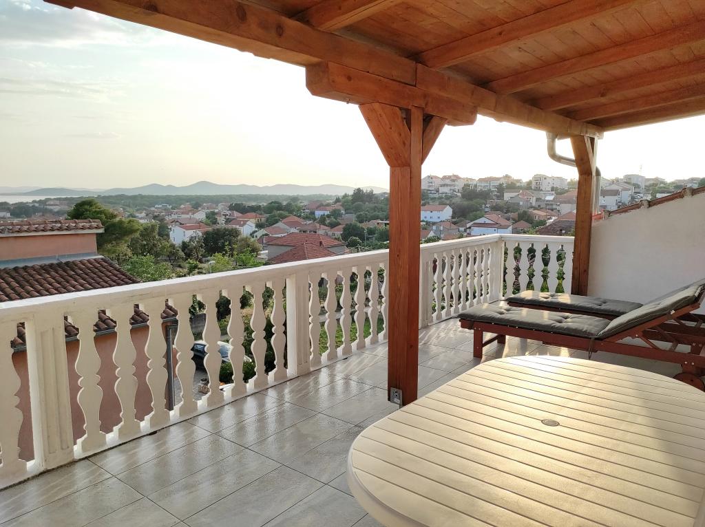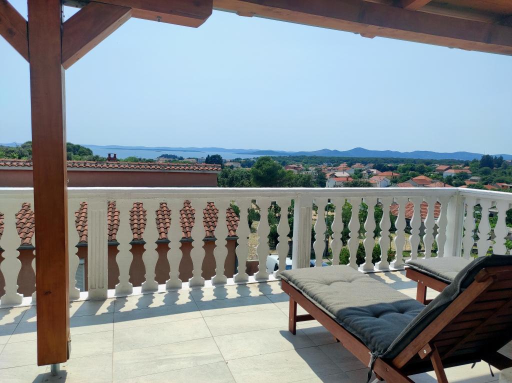 Casa familiala in care se afla apartamentul este situata la o distanta de 600m de mare, adica de centrul orasului. Se află la 500 m de Lacul Vrana, este înconjurat de verdeață și poate oferi fiecărui oaspete o vacanță liniștită și plăcută. Apartamentul are o suprafata de 100 m2. Este compus din 2 dormitoare duble, un living cu pat extensibil, o bucătărie, o baie și o terasă mare de 30 m2. Este situat la etajul doi al casei si are intrare separata. Apartamentul oferă o vedere frumoasă la mare, oraș, lac și îndepărtatul Velebit. Oaspeții pot folosi spațiul exterior de la parter, precum și grătarul. Locurile de parcare sunt situate in curte. Vă rugăm să ne contactați prin e-mail, pentru că astfel vă putem oferi toate informațiile rapid și în detaliu.