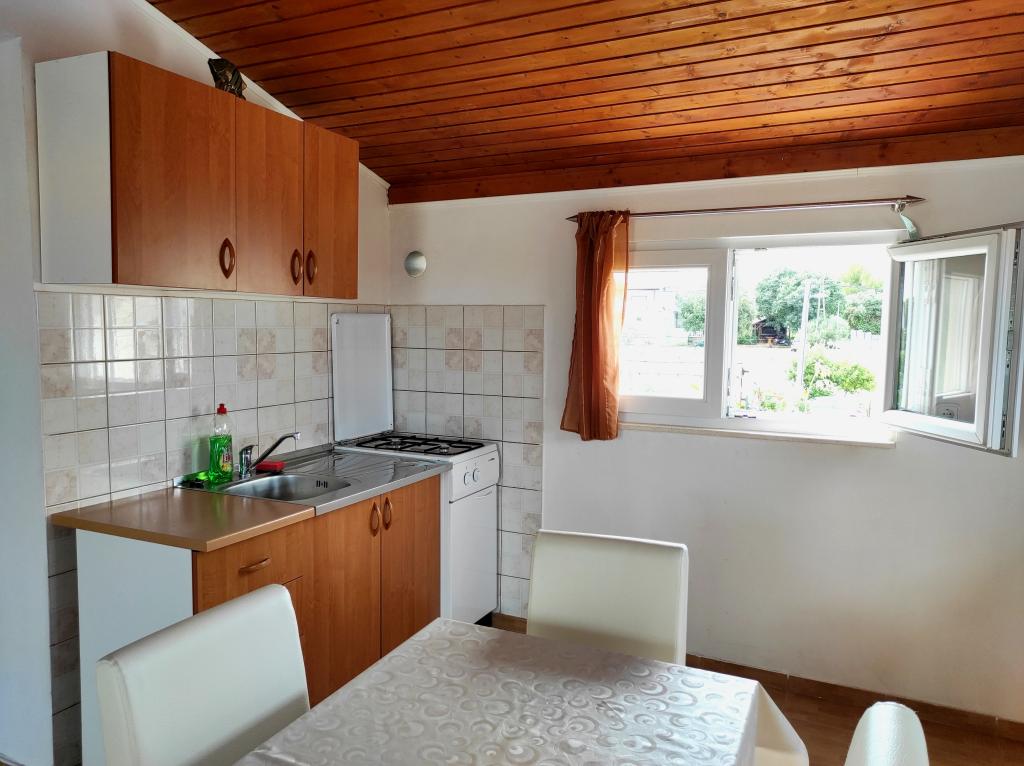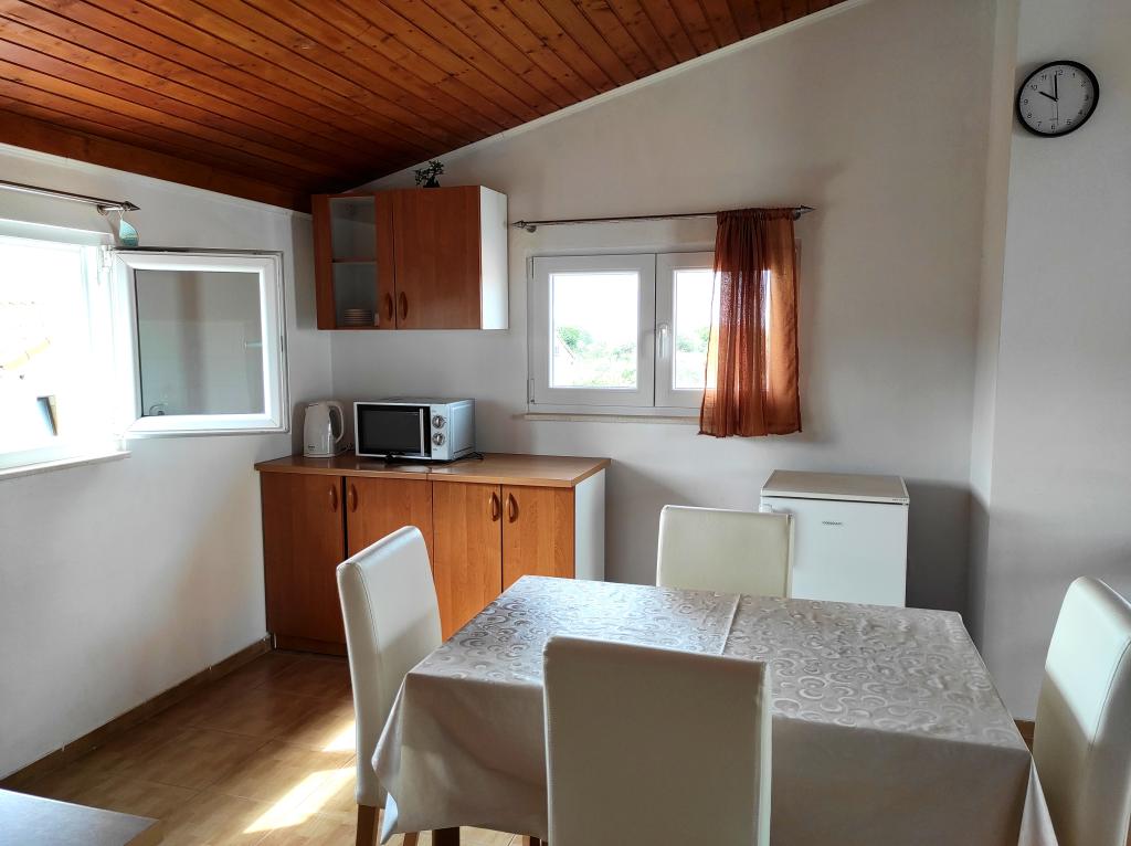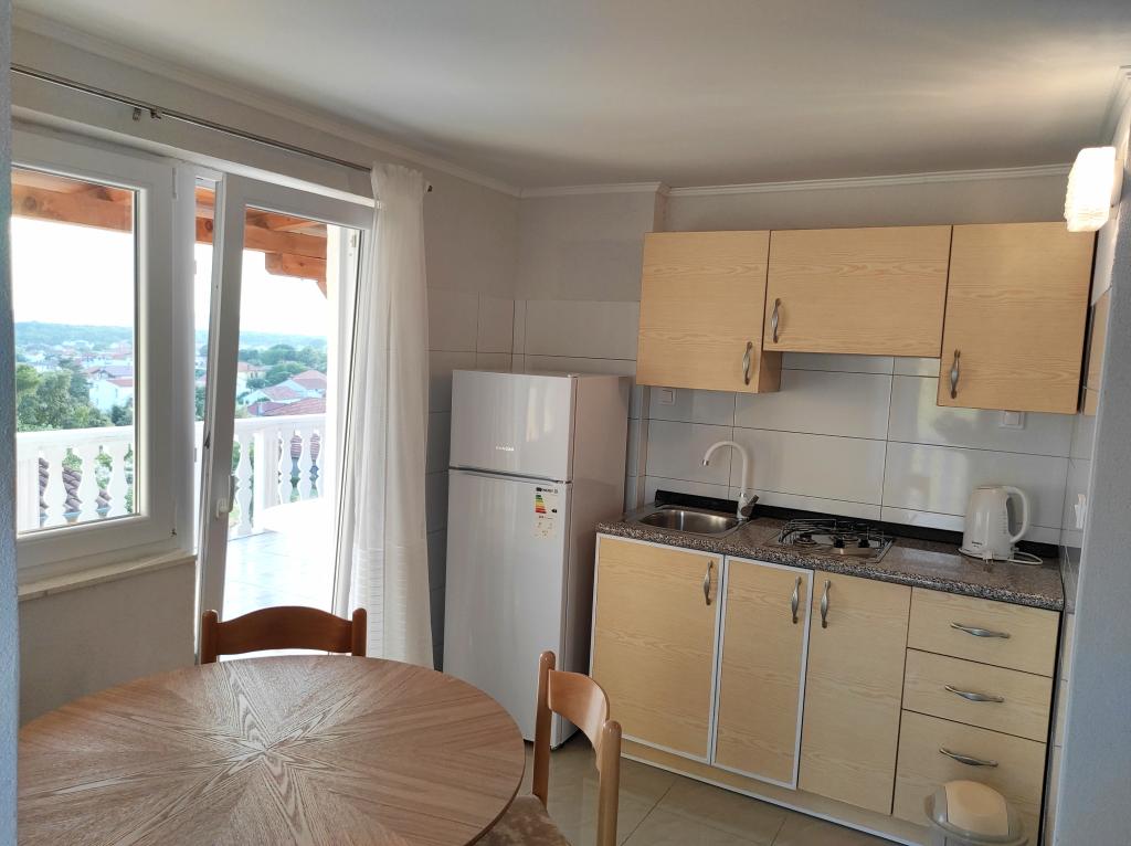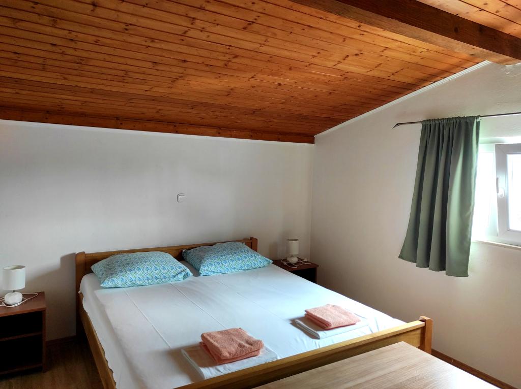 Casa familiala in care se afla apartamentul este situata la o distanta de 600m de mare, adica de centrul orasului. Se află la 500 m de Lacul Vrana, este înconjurat de verdeață și poate oferi fiecărui oaspete o vacanță liniștită și plăcută. Apartamentul are o suprafata de 100 m2. Este compus din 2 dormitoare duble, un living cu pat extensibil, o bucătărie, o baie și o terasă mare de 30 m2. Este situat la etajul doi al casei si are intrare separata. Apartamentul oferă o vedere frumoasă la mare, oraș, lac și îndepărtatul Velebit. Oaspeții pot folosi spațiul exterior de la parter, precum și grătarul. Locurile de parcare sunt situate in curte. Vă rugăm să ne contactați prin e-mail, pentru că astfel vă putem oferi toate informațiile rapid și în detaliu.