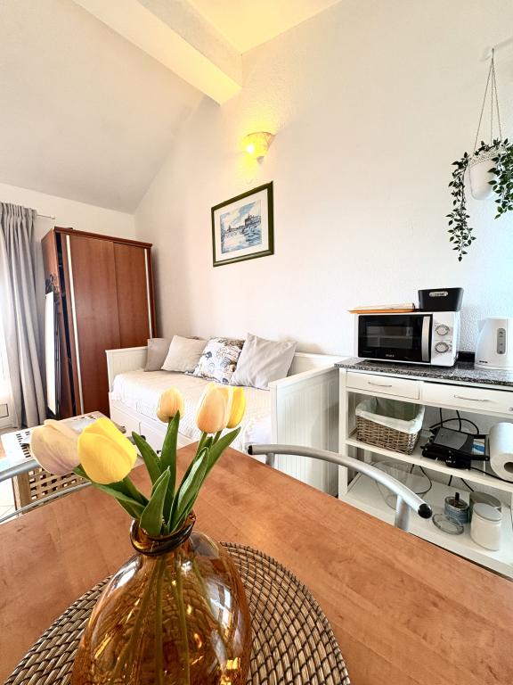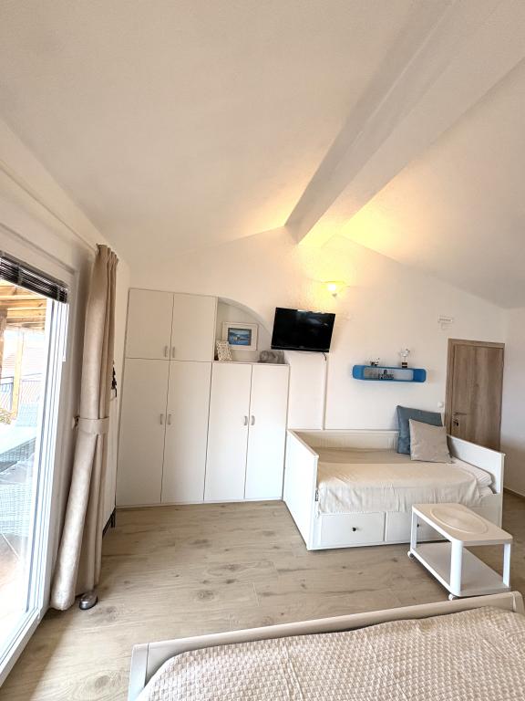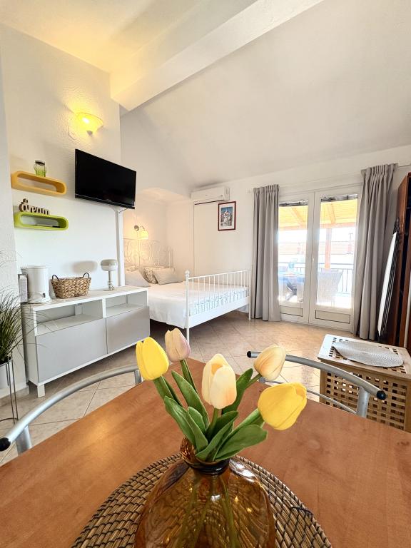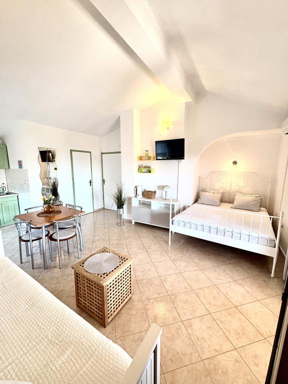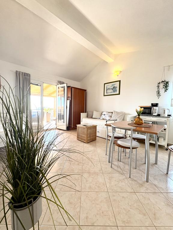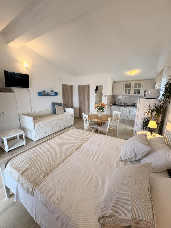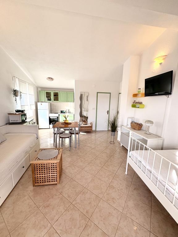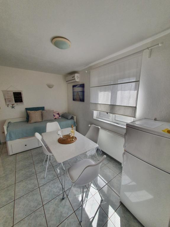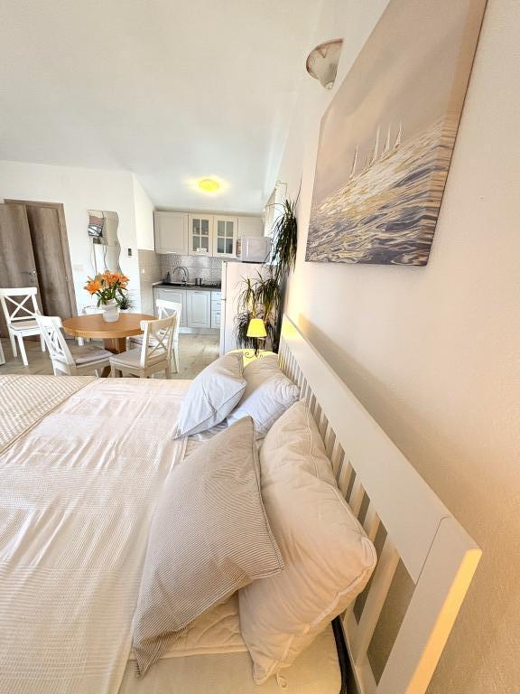 Cazare foarte frumoasă, frumoasă terasă mare. Studio este suficient pentru o familie cu copii mici. Echipamentul este minunat, tot ce aveți nevoie. Proprietari foarte placuti, foarte prietenosi si dispusi. O scurtă plimbare la plajă. Seara și noaptea. Vă recomandăm să vă bucurați de vacanța noastră.