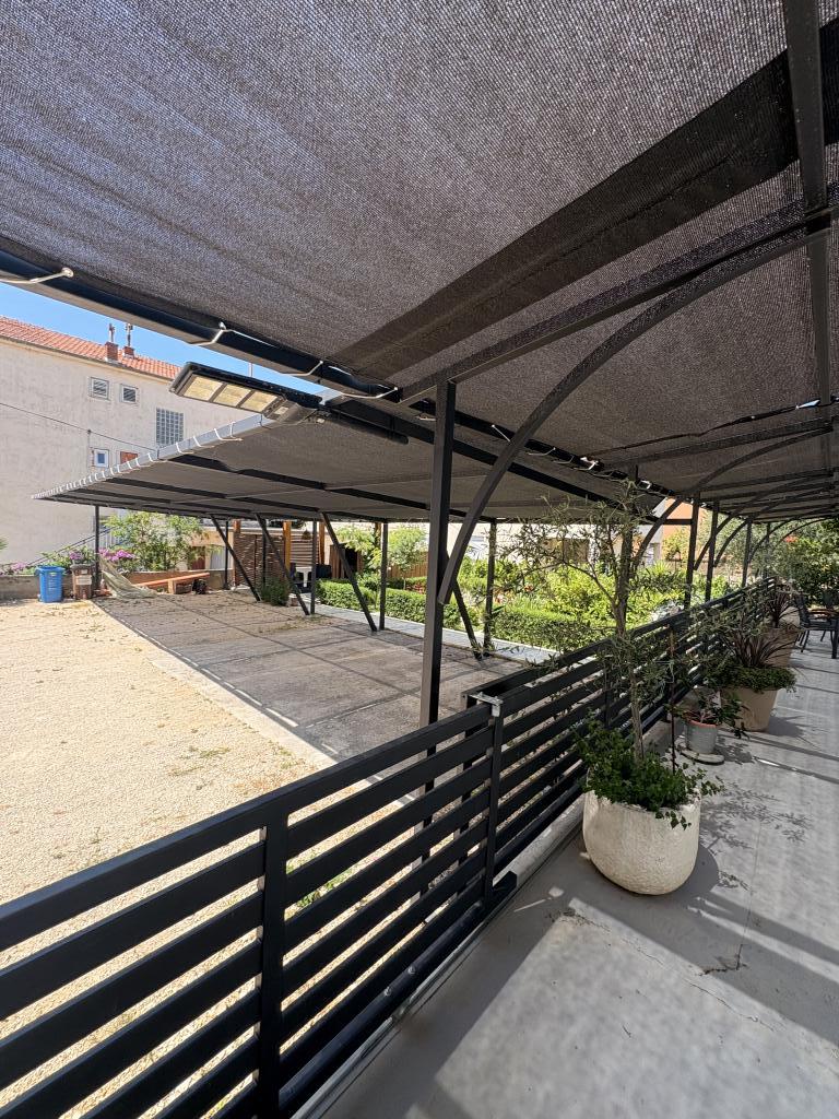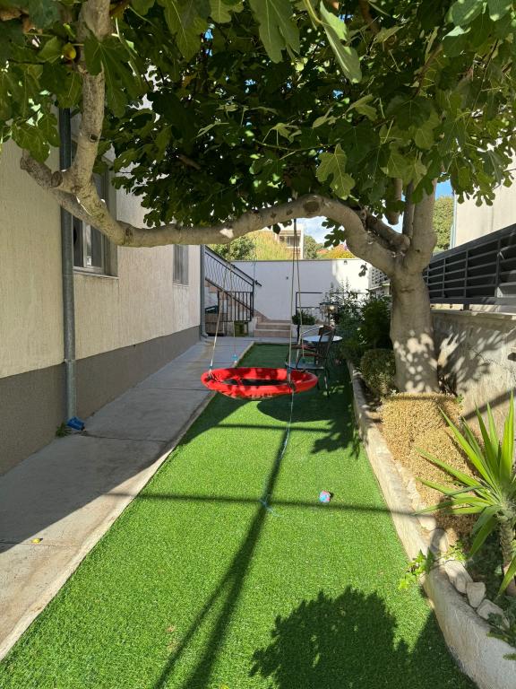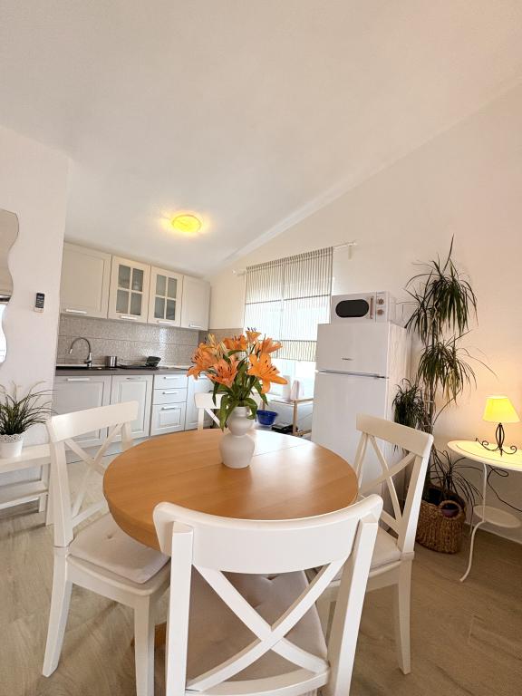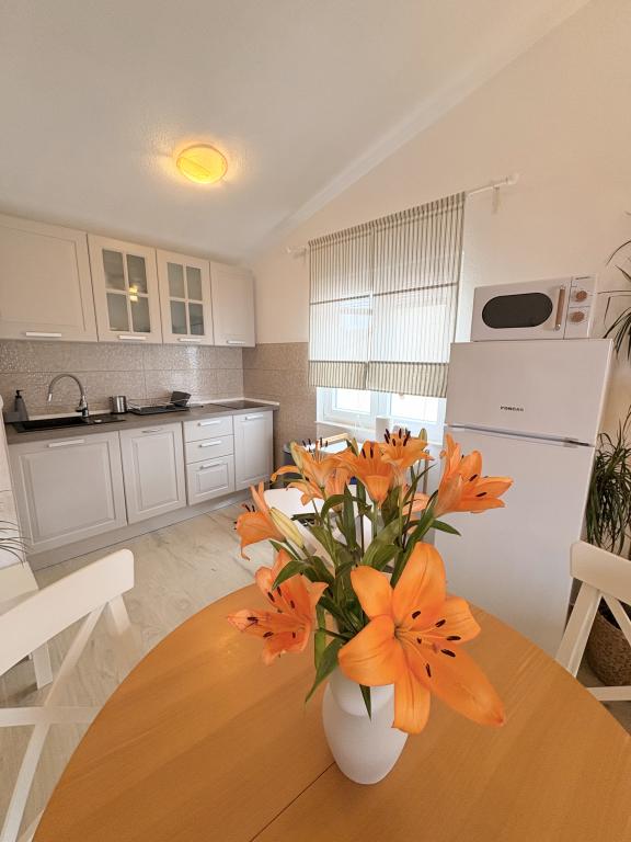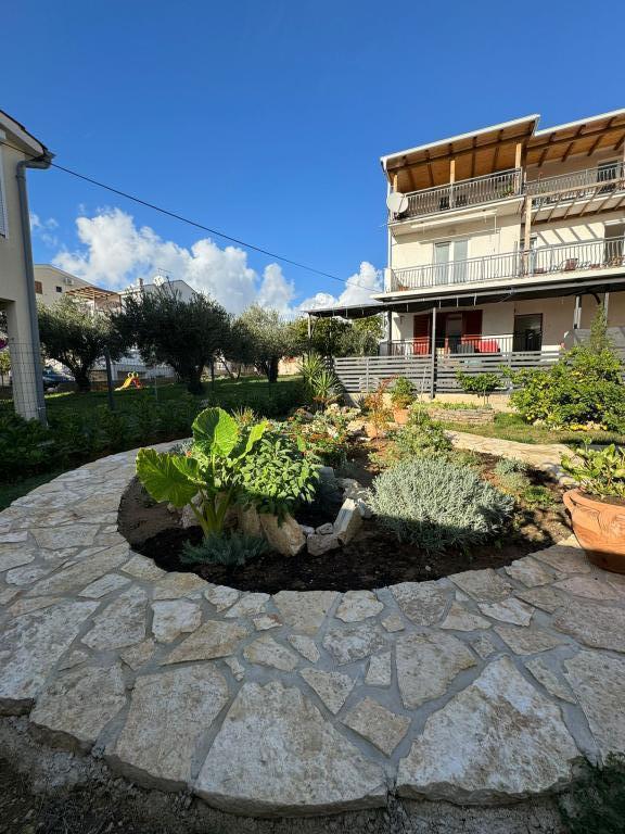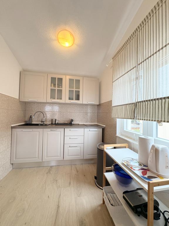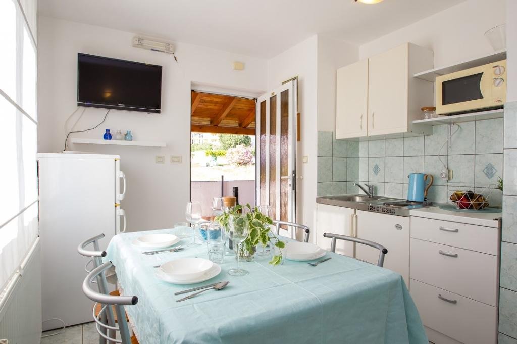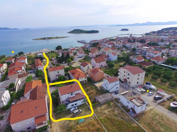 Casa cu apartamente este situata aproape de mare și la oraș. Doar cinci minute de mers pe jos de plajă și oferă, de asemenea, de pace și de intimitate. În fața casei există parcare pentru fiecare vehicul și sunt protejate de soare. Gradina este un gratar care poate fi folosit oricând. Fiecare apartament are intrare proprie. Balcoane mari, orientate spre sud, cu vedere la mare.