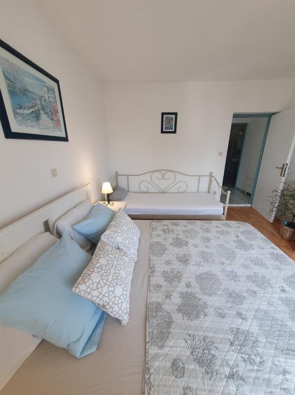 O sărbătoare mare Foarte frumos și bun de cazare, o terasă mare cu o masă și scaune și un șezlong, unde pot fi folosite șezlongurile, camerele dotate cu aer condiționat. Locul de cazare a fost bine marcat, casa are un spatiu mare de parcare pentru 4 masini. Echipamentul camerei a fost în funcție de fotografiile de pe internet, de asemenea, am trimis câteva fotografii noi de la proprietar cu echipament de cameră nou (studiouri). Studioul este ideal pentru o familie cu 2 copii, există un pat complet pentru 2 persoane. Mobila cu alte mobilier este bună, echipamentul pentru bucătărie este dotat cu aparate, iar mobila este exact conform fotografiilor, mâncărurile sunt suficiente pentru o familie de 4 membri, există tot ce ai nevoie. În apropierea casei se află un magazin de produse de panificație și o varietate de vânzări de fructe și legume. Proprietari foarte frumos, prietenos și de ajutor, acord foarte bun. O scurtă plimbare la plajă. Seara și noaptea. Ne-am bucurat de vacanța noastră aici, o recomandăm. Am inchiriat si alte studiouri - 2 + 2 si 3 + 1, chiar si acestea au fost bine, la studioul 3 + 1 exista o sedinta perfect acoperita (pergola) pentru o problema de 10 persoane. O scurtă plimbare de la casă (aproximativ 200 m) pornește centrul orașului cu restaurante și magazine bune. Plajele sunt pietriș - pietriș mic și beton.