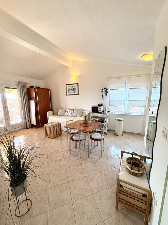 Locație excelentă, apartament grozav. Are vedere la mare de pe terasă. 2 min de mers pe jos pana la plaja, 3 min pana in centrul orasului, parcarea este in fata apartamentului la umbra sub baldachin. Gazda (Ivana) este o persoana grozava, amabila, cu suflet bun, mereu gata sa ajute. În mare parte, totul este grozav. Cu siguranta vom reveni.