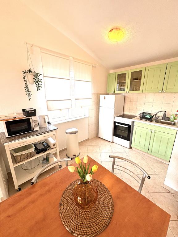 Recomand foarte mult apartamentul de la IVANA! Curată, bine echipată, vedere minunată la mare. Plaja este la 200 de metri de plajă. Totul arată exact așa cum este prezentat în imagini. O terasă mare cu o masă pentru 4 persoane, un pat de zi, un uscător de haine. Bucătăria este dotată cu toate accesoriile necesare. Proprietarul frumos întâmpină întotdeauna oaspeții cu smochine mari sau pepene verde. Am vizitat-o pentru a doua oară și cu siguranță o vom reveni la ea. IVANA! Salutări și vă mulțumesc.