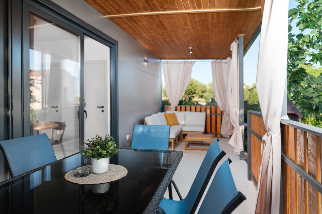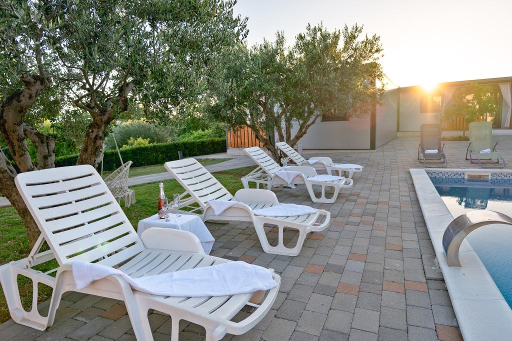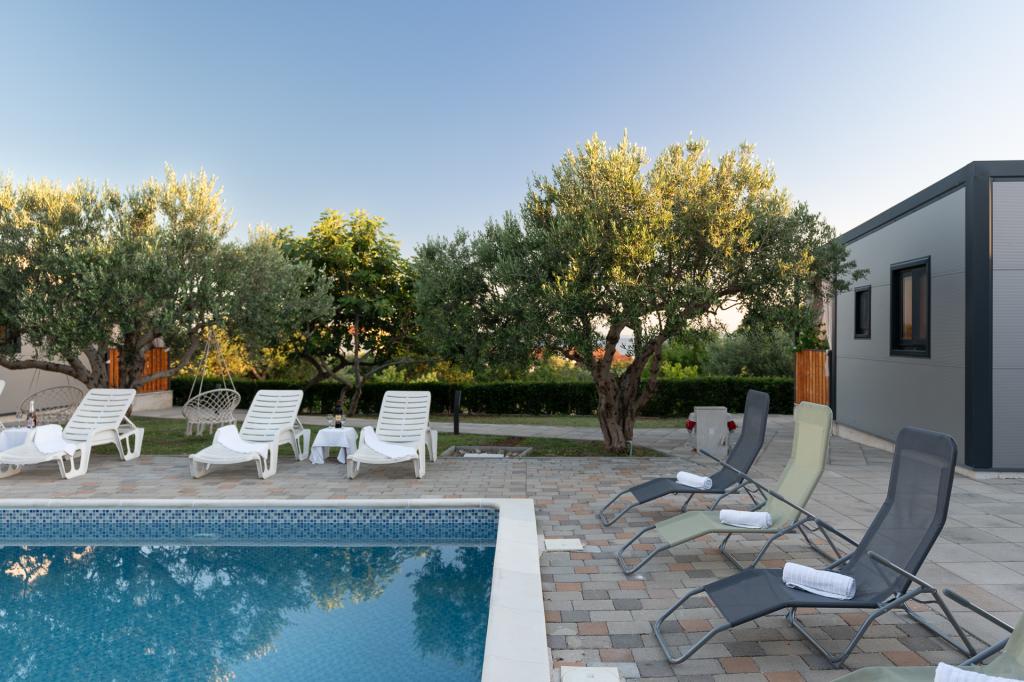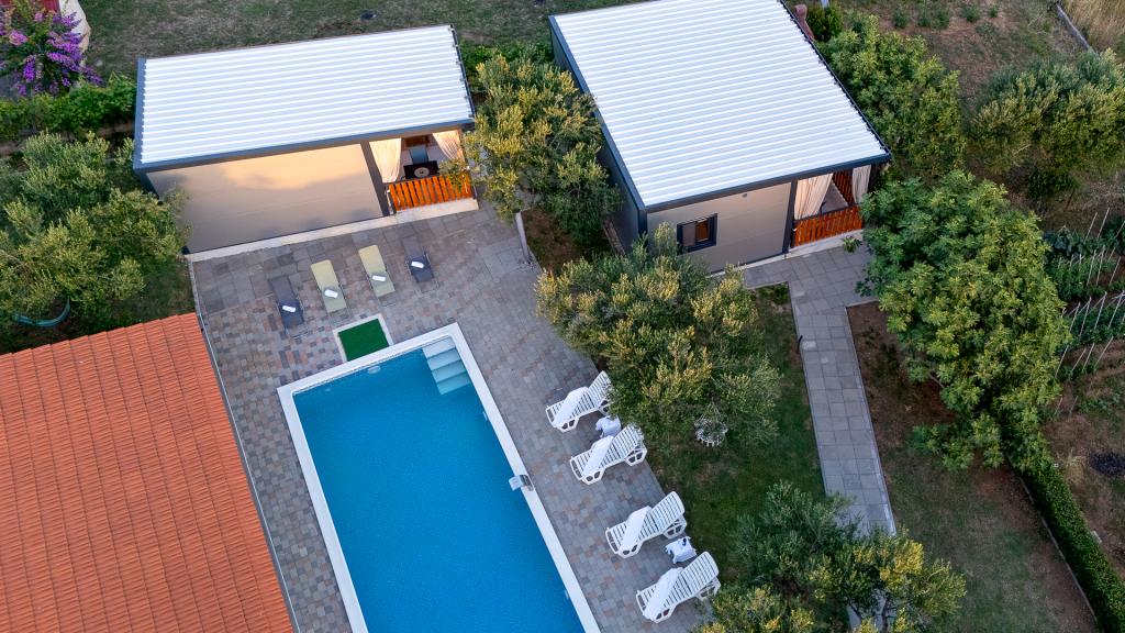 In imprejurimi linistite ale unui Pakostane mic sat aproape de Zadar este o casă familială mare, cu 4 apartamente si case prefabricate aceleași. Grădină spațioasă, cu parcare privată și o piscină și o terasă cu vedere la mare este ideală pentru relaxare pe soare, înot relaxat în piscină și lăsați-vă copiii. La numai 5 minute de mers pe jos sunt multe plaje frumoase și de mare de cristal albastru clar. Casa de familie este la doar 300 de metri de centrul orașului și oferă o vacanță liniștită, fără zgomot. Daca doriti un eveniment social sau o noapte în centrul există o promenada, numeroase baruri, cluburi de noapte, restaurante, iar vara, și multe evenimente distractive. Utilizați timpul liber pentru a vizita parcurile naționale croate și păstrează natura care sunt in imediata apropiere.