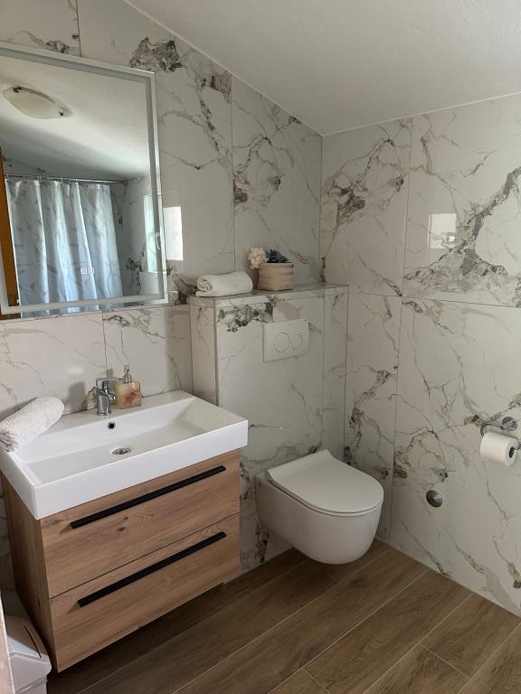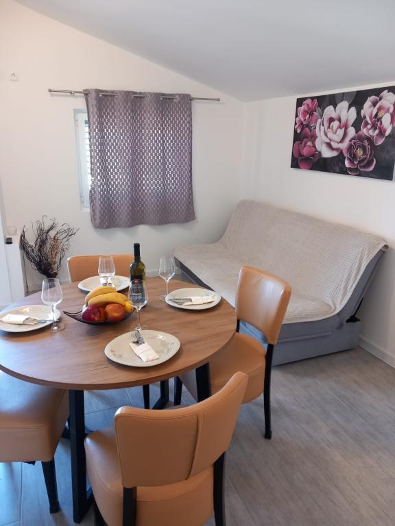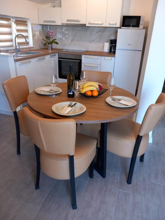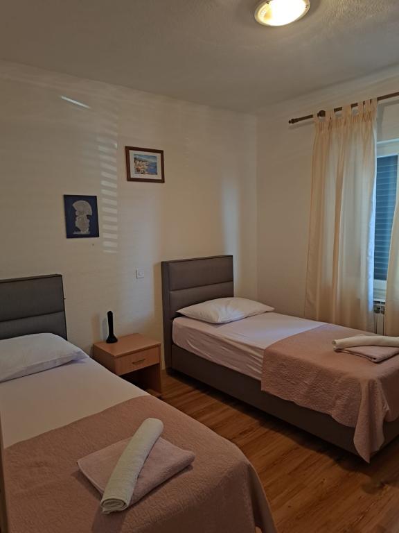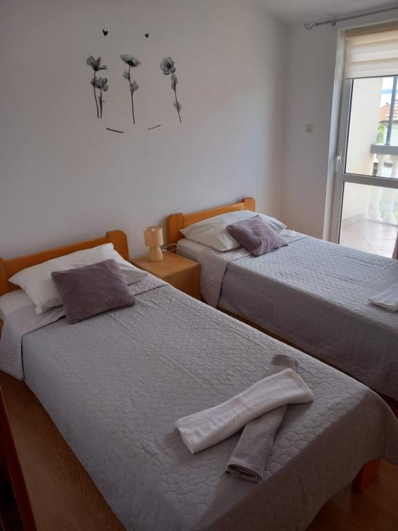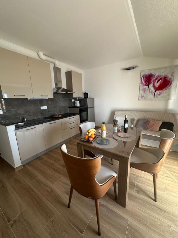 Apartamentele sunt situate într-Krpeta-o parte liniștită a Pakoštana.U Oferim două apartamente cu terase mari cu vedere la grădină disponibil more.Na cu locuri de parcare si gratar.
