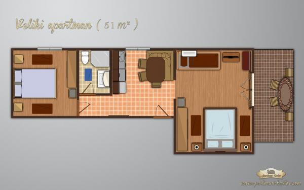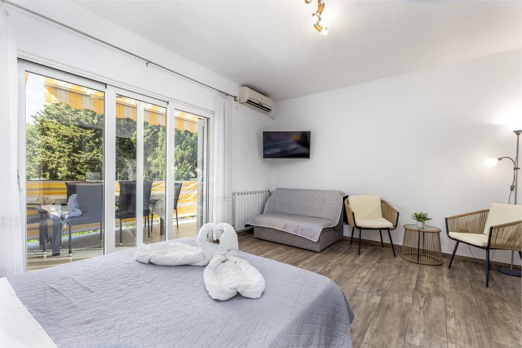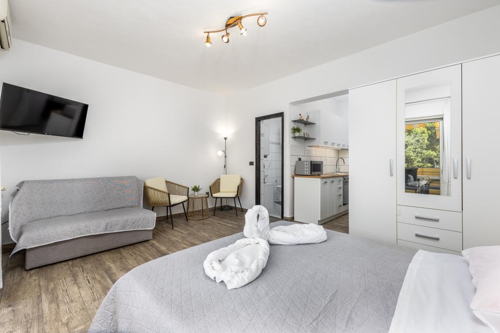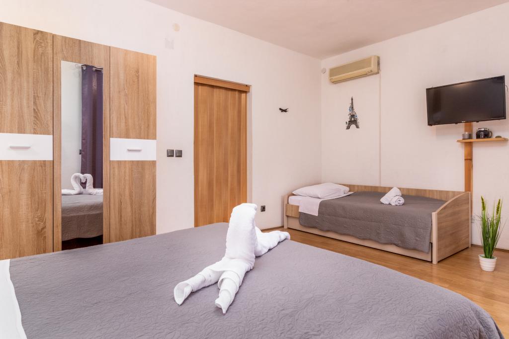 Citește mai mult Unități de cazareRezervare este de 100 €, iar apartamentele sunt plătite în ziua de Dol (în euro sau Kuna).