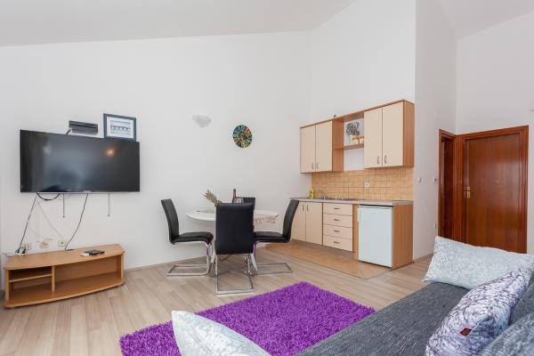 Un apartament mare, curat și bine amenajat într-o locație excepțională. În apropiere - nu este nevoie să folosiți mașina, mai multe plaje frumoase, magazine la 5 m distanță, cafenele, restaurante și parcare proprie chiar în fața apartamentului. Echipament de top al apartamentului - totul pentru gătit, un televizor mare cu mult conținut, WiFi, aer condiționat, un balcon mare cu copertă și o vedere frumoasă la mare, care, datorită poziției sale, nu este fierbinte și poate fi savurat toată ziua. Pe lângă toate acestea, primirea, căldura și accesibilitatea proprietarului apartamentului reprezintă o garanție pentru o vacanță ideală. Toate cele bune și cu siguranță vom reveni în fiecare an.