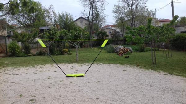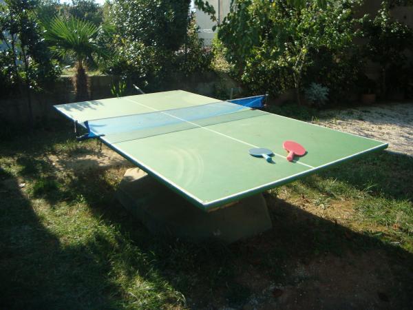 Dispunem de garaj pentru biciclete, echipamente pentru jocuri pentru copii precum tenis de masa, badminton, darts, carucioare copii, romobile, biciclete... Gratar de exterior si mobilier de scaune la umbra langa gratar si pe gazon. Oferim ulei de măsline și brandy de casă.