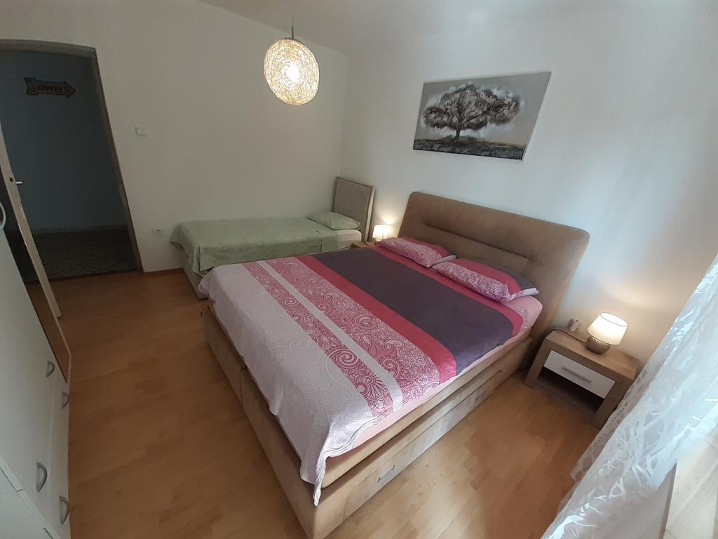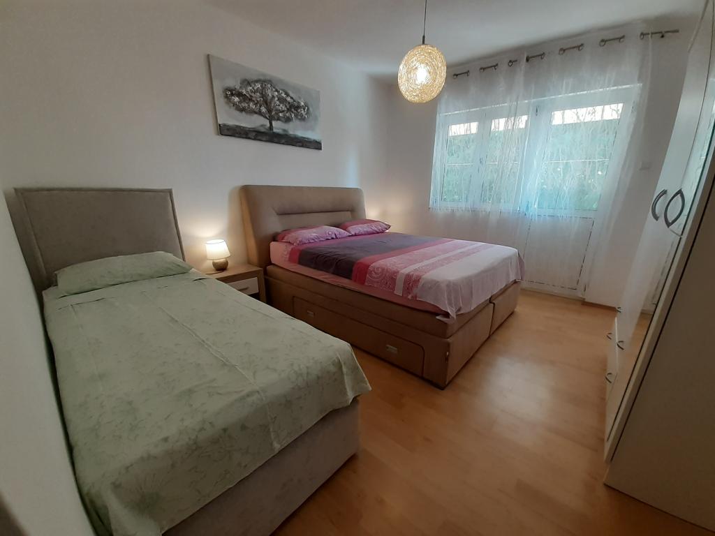 Apartamente complet utilate in apropiere de centrul orasului. Unitatea este situată la 5 minute de mers pe jos de centru și plajă. Stația de autobuz, biroul de turism, clinica, restaurantul, cafeneaua, magazine și brutărie se află la 50 de metri. Într-un mediu frumos și o ambianță plăcută, aici veți găsi tot ce aveți nevoie pentru vacanța dumneavoastră perfectă în Pakoštani. Apartamentele sunt confortabile și oferă cazare pentru 2 până la 11 persoane într-un total de 2 apartamente. Fiecare apartament are un balcon. Facilitatea are multă verdeață, gazon și umbră și oferă oaspeților bucuria de o curte mare, potrivită pentru joacă pentru copii. Sunt ideale pentru a sta cu familia, copiii și prietenii. Parcarea autoturismelor este asigurata in interiorul cladirii, la umbra. Turistii pot folosi gratarul din curte.