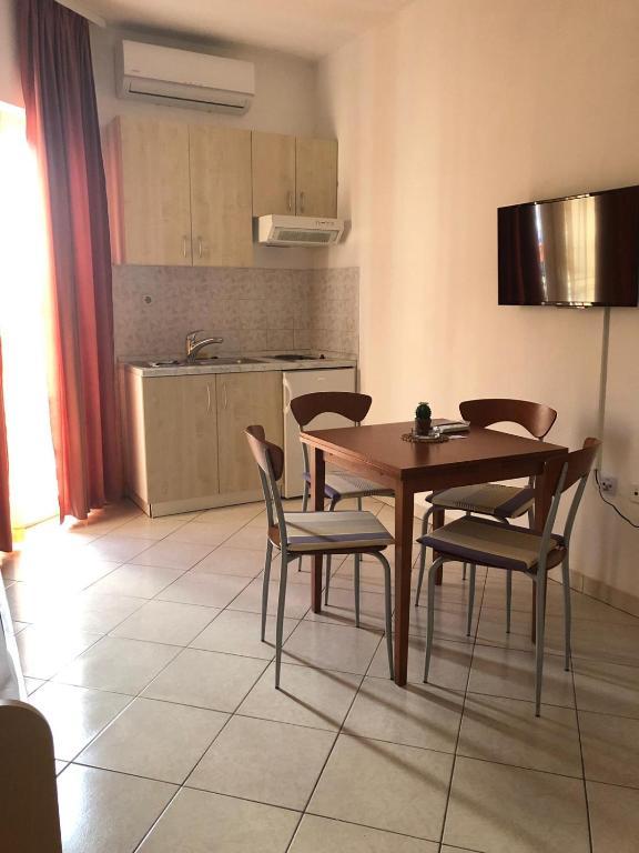Apartamente in centrul orasului, nu departe de plaja. Fiecare apartament are propriul balcon, cu vedere la mare sau la parc. Apartamente: parter, primul și al doilea etaj. Apartamentul include un loc de parcare gratuit. Dacă aveți nevoie de informații, gazdele sunt întotdeauna disponibile. Apartamentul este dotat cu: aer conditionat, wifi, tv, lenjerie de pat. Nu sunt incluse: prosoape, cuptor cu microunde, cuptor.