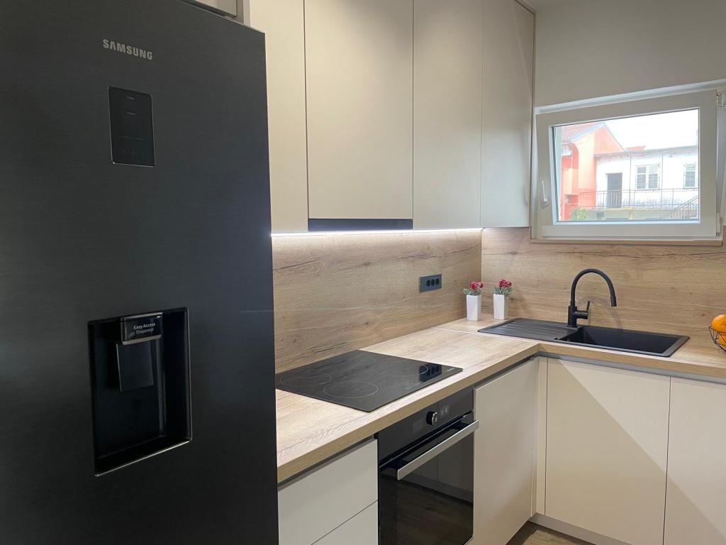 Apartamente complet echipate într-o zonă mai liniștită a orașului, cu parcare păzită. Unitatea este situată la 500 de metri de centru și plajă