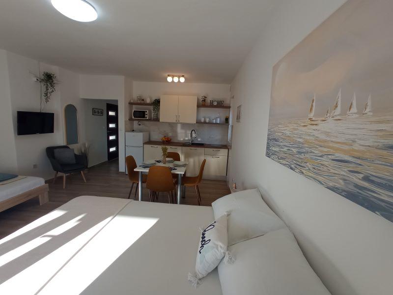 Apartamentul este ideal pentru două persoane. Curat, ordonat și echipat cu tot ce ai nevoie. Este situat lângă mare, restaurante, cafenele ... Proprietarii apartamentelor sunt extrem de confortabili, comunicativi și mereu la dispoziția dumneavoastră. Dacă există o șansă, vom veni anul viitor. Pe lângă cazare, își vând și produsele de casă. Smochinele sunt grozave!