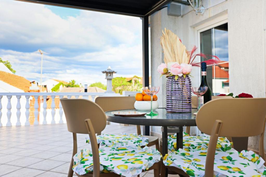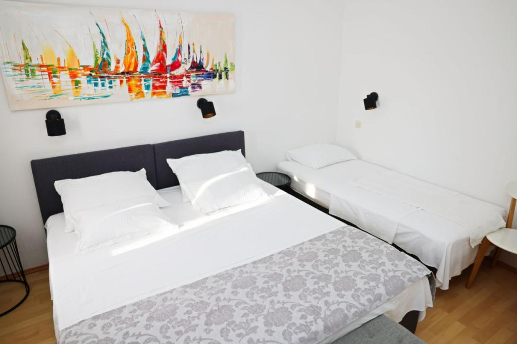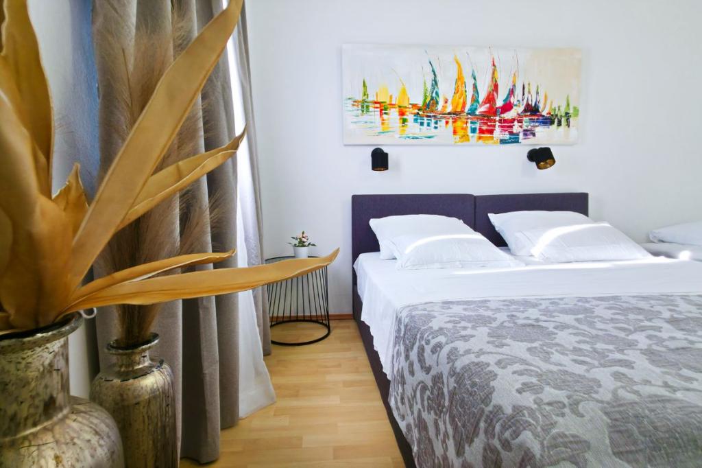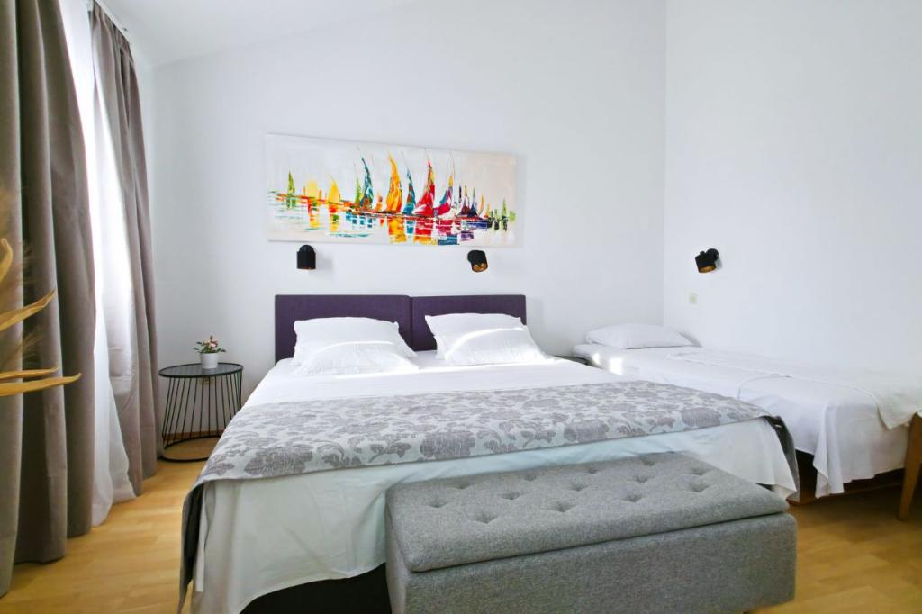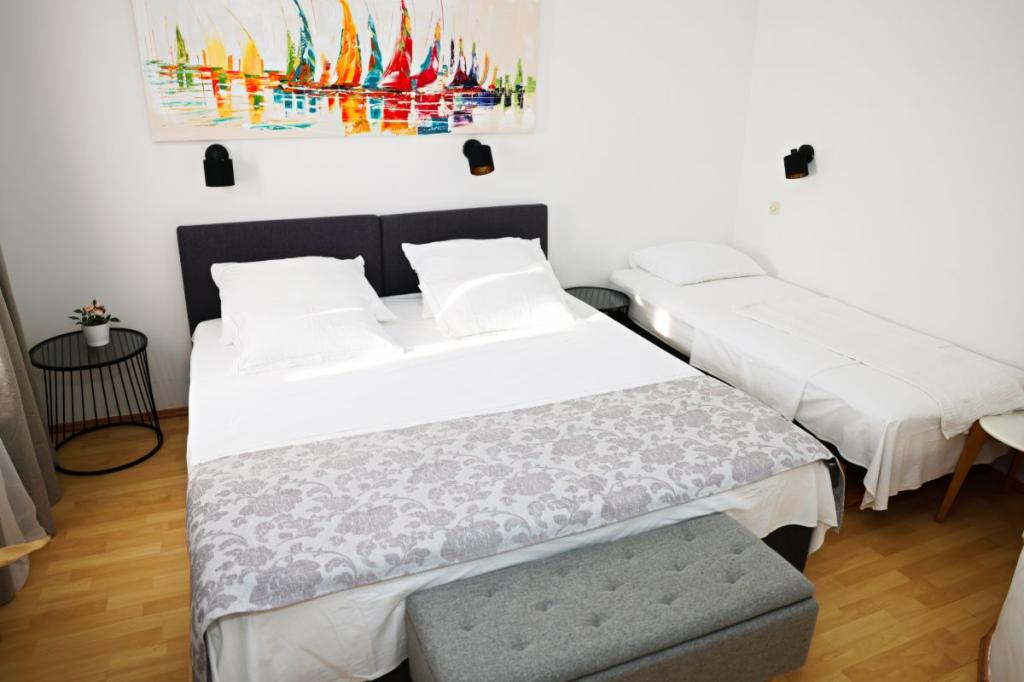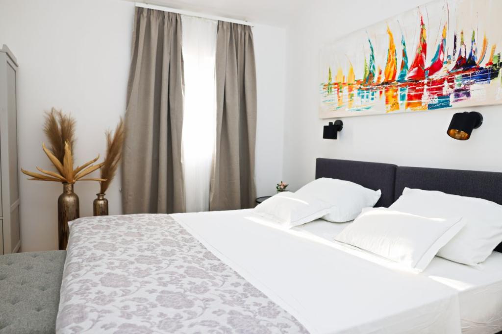 Apartamentele Tri Ferala sunt situate chiar în centrul orașului Pakoštane, la câțiva pași de piața principală, magazine, cafenele, restaurante și piața de pește. Apartamentele sunt situate deasupra celebrului restaurant Tri Ferala, oferind liniște, intimitate și confort, iar terasele au vedere la străzile pitorești din Pakoštane. Plaja Janice, favorită printre localnici și turiști, este la doar 300 de metri. Dacă sunteți în căutarea unei cazări care oferă confort, o locație convenabilă și o experiență dalmată autentică, Apartments Tri Ferala sunt o alegere excelentă. Vă rugăm să trimiteți întrebări exclusiv prin formularul de contact. Lista de prețuri este actualizată și corectă.
