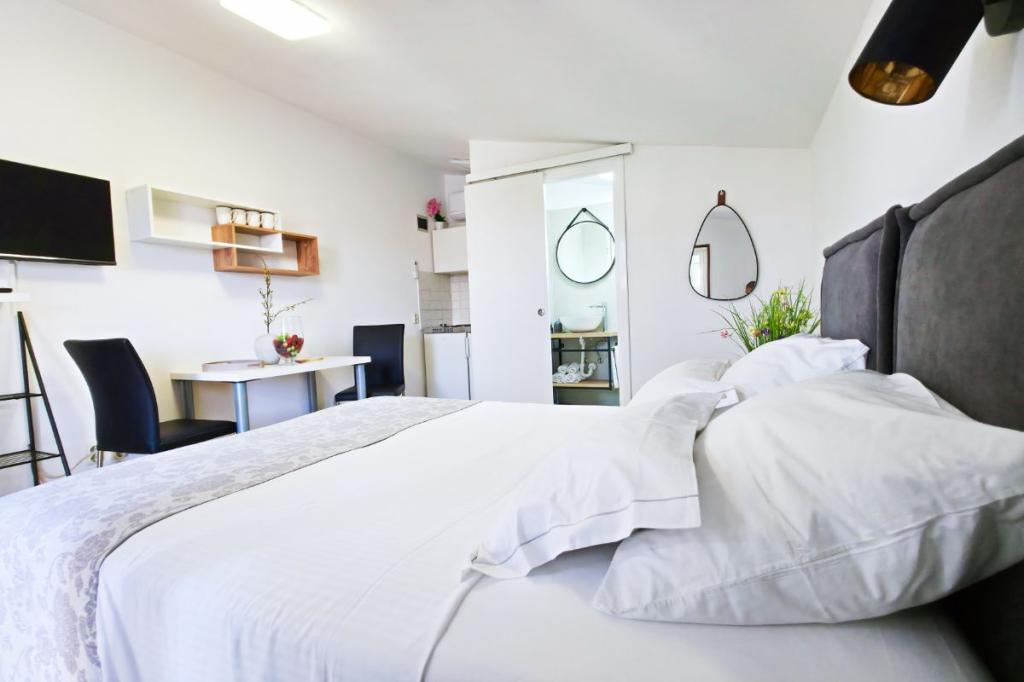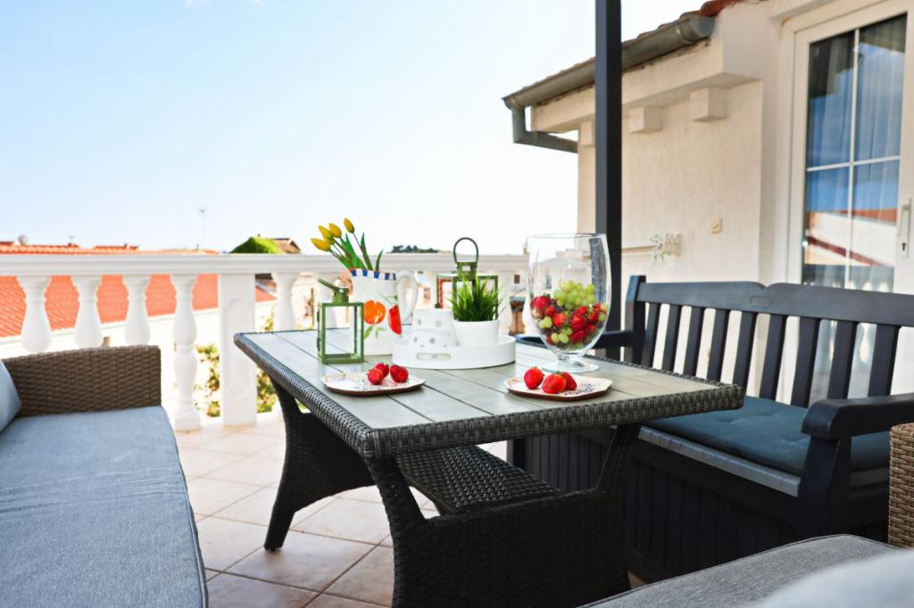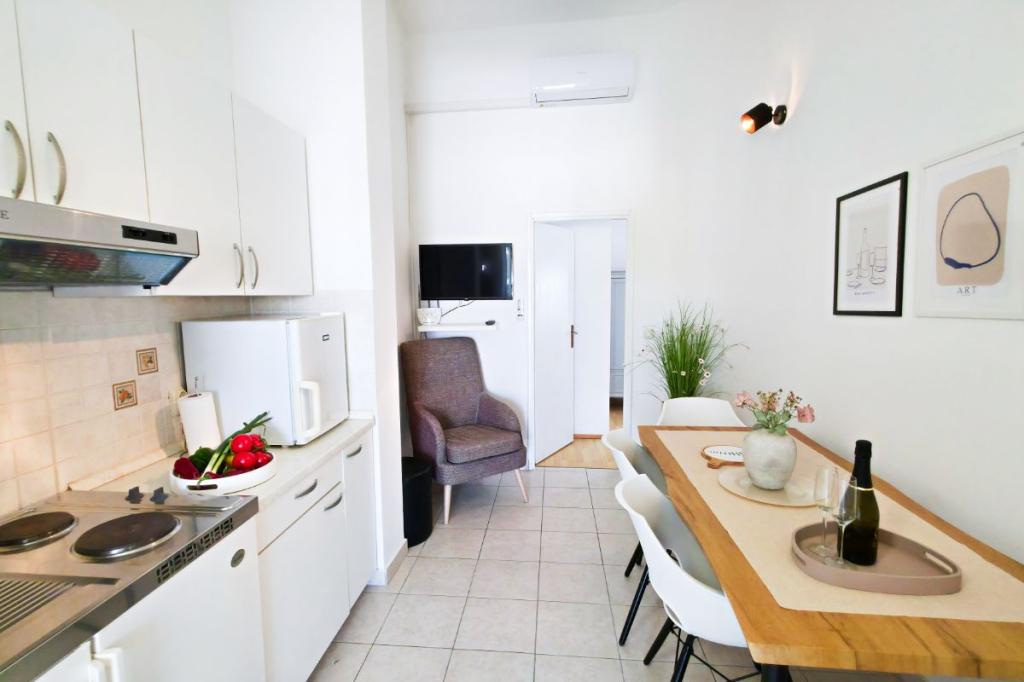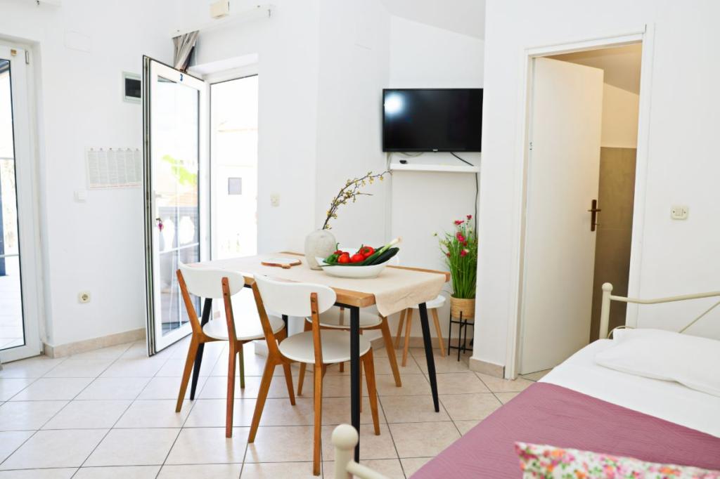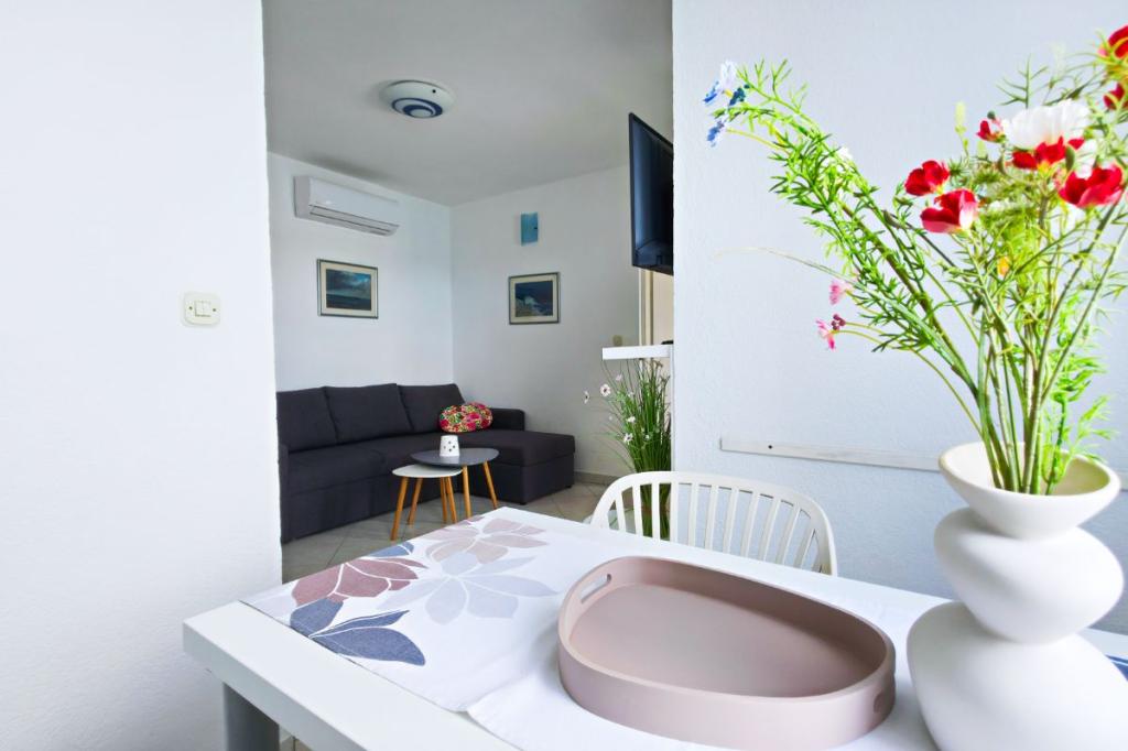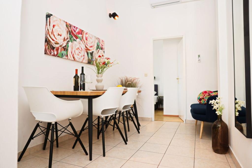 Apartamentele Tri Ferala sunt situate chiar în centrul orașului Pakoštane, la câțiva pași de piața principală, magazine, cafenele, restaurante și piața de pește. Apartamentele sunt situate deasupra celebrului restaurant Tri Ferala, oferind liniște, intimitate și confort, iar terasele au vedere la străzile pitorești din Pakoštane. Plaja Janice, favorită printre localnici și turiști, este la doar 300 de metri. Dacă sunteți în căutarea unei cazări care oferă confort, o locație convenabilă și o experiență dalmată autentică, Apartments Tri Ferala sunt o alegere excelentă. Vă rugăm să trimiteți întrebări exclusiv prin formularul de contact. Lista de prețuri este actualizată și corectă.