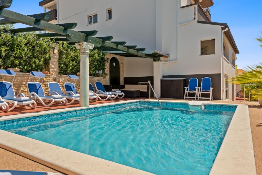 Apartamentele sunt situate chiar în centrul orașului, aproape de plaje, restaurante și alte oferte pe care consiliul de turism din Pakoštane le-a pregătit pentru această vară (diverse concerte, meniuri gastronomice, festivaluri și petreceri). Apartamentele sunt modern dotate cu toate facilitățile necesare (veselă, cuptoare cu microunde, fierbătoare, aparate de cafea, aer condiționat, lenjerie de pat, prosoape). Avem mare grijă să menținem apartamentele și întreaga grădină (piscină, grătar, parcare) curate și ne străduim să ne asigurăm că oaspeții noștri se bucură la maximum de apartamentele noastre.