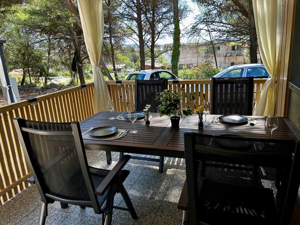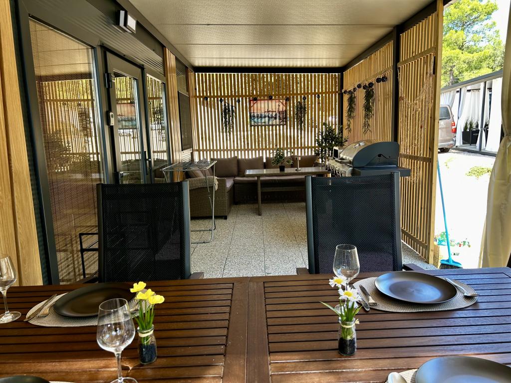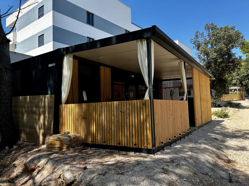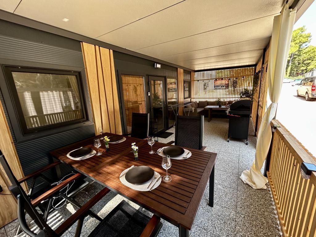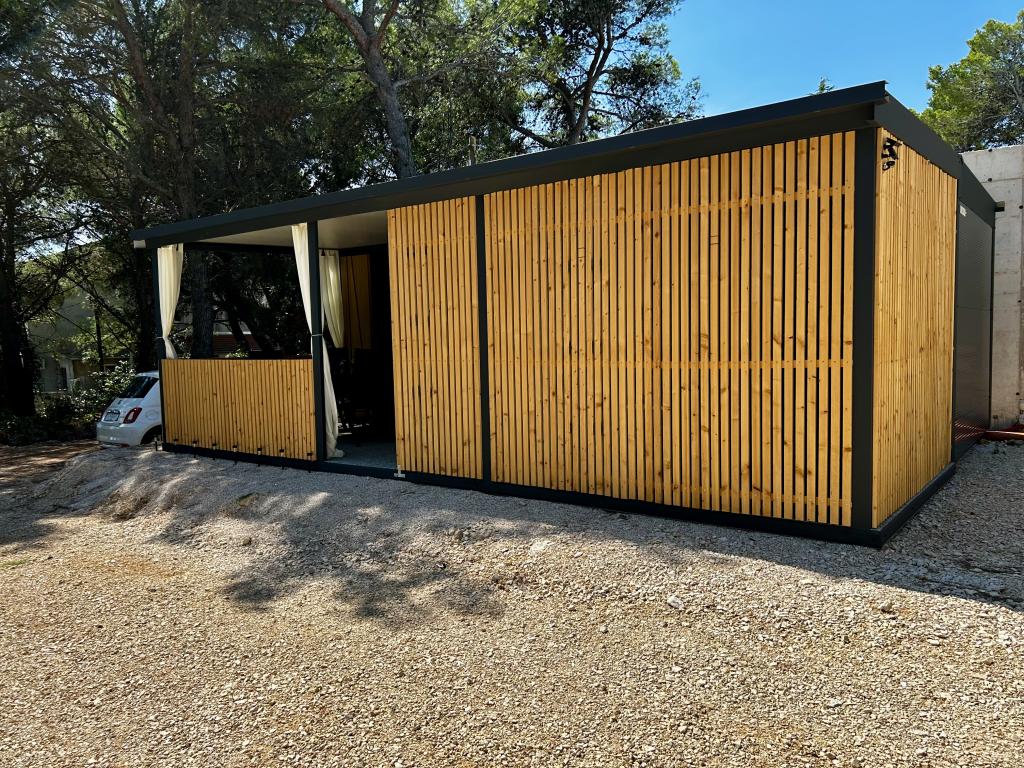 Bine ați venit în căsuța noastră fermecătoare, locul perfect pentru a evada din stresul cotidian! Situată într-un camping liniștit, la doar 4 minute de mers pe jos de marea frumoasă și de plajele cu pietriș și nisip, această căsuță oferă tot ce aveți nevoie pentru o vacanță relaxantă. Caracteristici cheie: 25m2 + 25m2 de terasă semi-închisă. • Două dormitoare: Cabana are două dormitoare confortabile cu paturi duble, ideale pentru cupluri sau familii. Fiecare cameră oferă un spațiu liniștit pentru odihnă și relaxare. • Living: Livingul are o canapea extensibilă care oferă spațiu suplimentar de dormit, perfect pentru prieteni sau copii. • Spațiu exterior frumos: Bucurați-vă de cafeaua de dimineață sau de întâlnirile de seară pe terasă, cu o priveliște frumoasă asupra naturii. Acest spațiu este ideal pentru grătare sau pentru relaxare cu o carte bună. • Proximitatea față de plajă și lac: Doar 4 minute de mers pe jos vă separă de mare și de plajele cu pietriș și nisip, iar cel mai mare lac din Croația se află la doar 20 de minute de mers pe jos.
