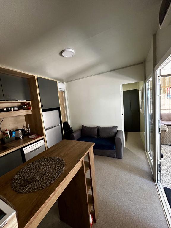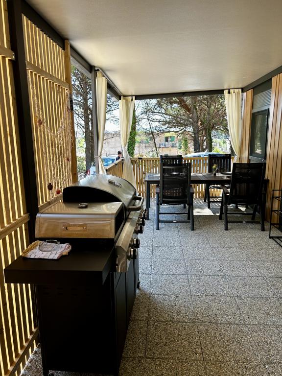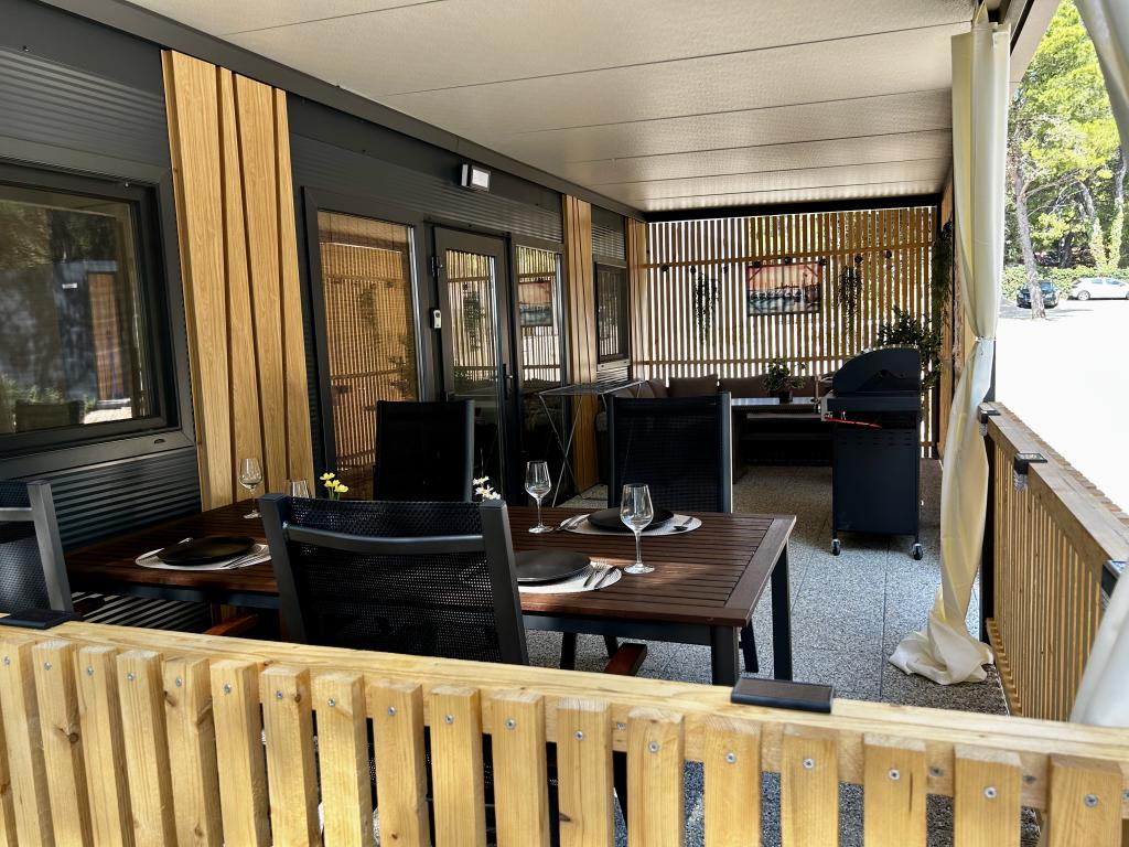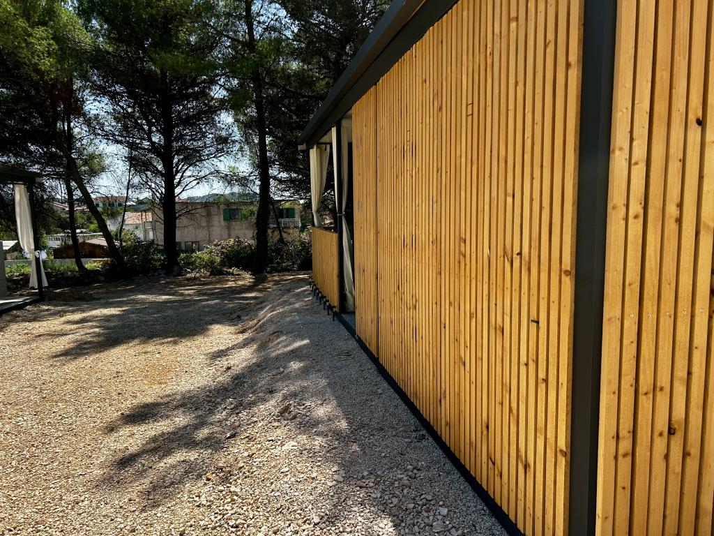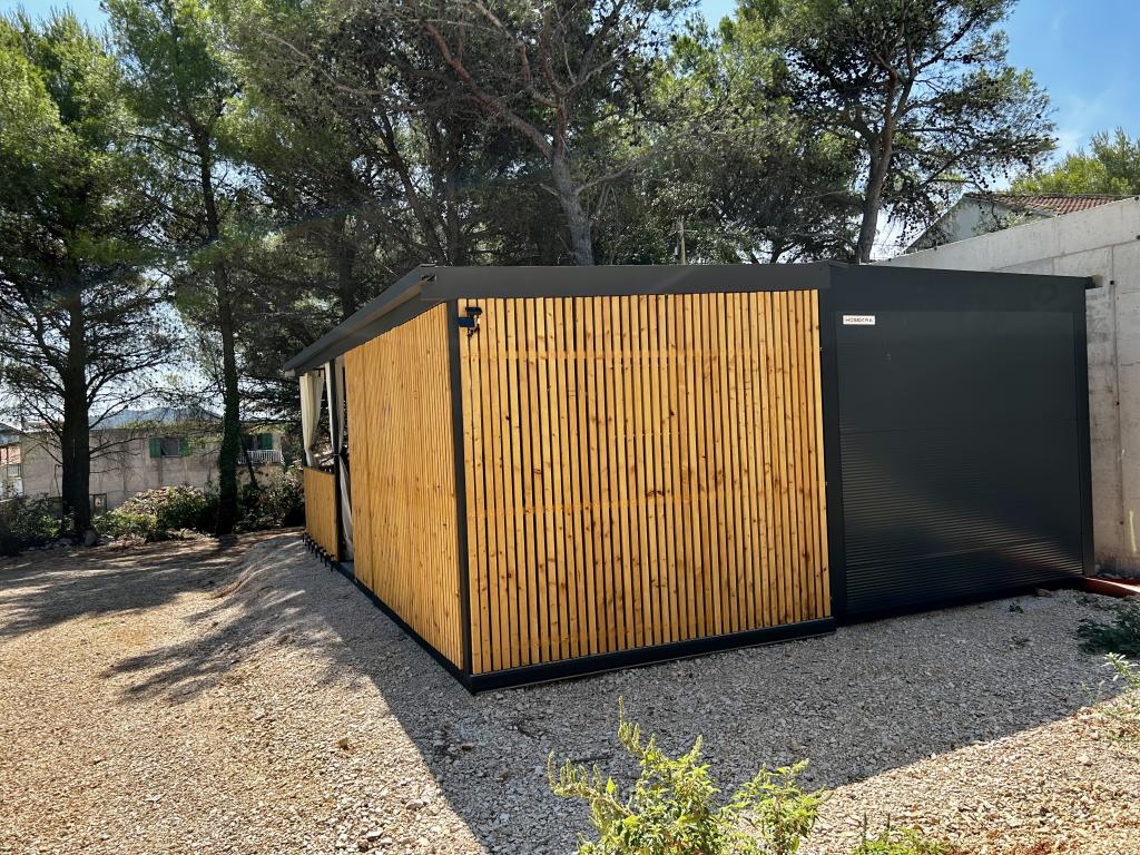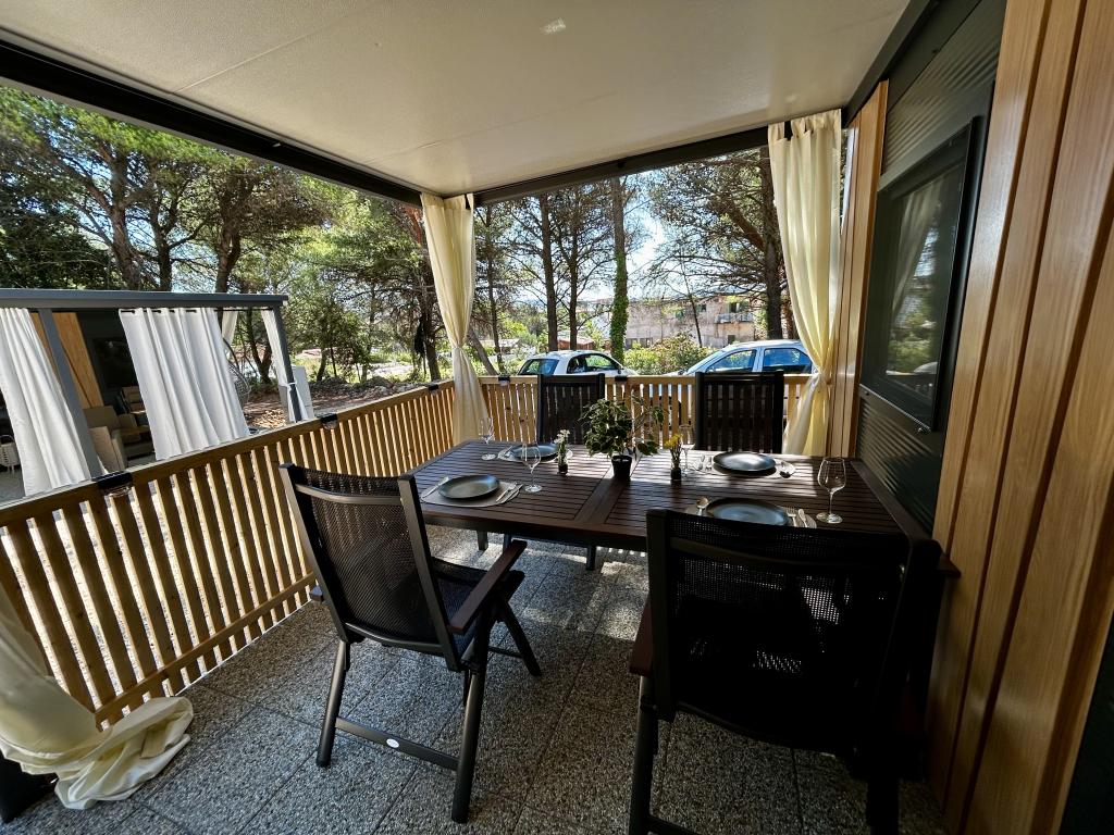 Bine ați venit în căsuța noastră fermecătoare, locul perfect pentru a evada din stresul cotidian! Situată într-un camping liniștit, la doar 4 minute de mers pe jos de marea frumoasă și de plajele cu pietriș și nisip, această căsuță oferă tot ce aveți nevoie pentru o vacanță relaxantă. Caracteristici cheie: 25m2 + 25m2 de terasă semi-închisă. • Două dormitoare: Cabana are două dormitoare confortabile cu paturi duble, ideale pentru cupluri sau familii. Fiecare cameră oferă un spațiu liniștit pentru odihnă și relaxare. • Living: Livingul are o canapea extensibilă care oferă spațiu suplimentar de dormit, perfect pentru prieteni sau copii. • Spațiu exterior frumos: Bucurați-vă de cafeaua de dimineață sau de întâlnirile de seară pe terasă, cu o priveliște frumoasă asupra naturii. Acest spațiu este ideal pentru grătare sau pentru relaxare cu o carte bună. • Proximitatea față de plajă și lac: Doar 4 minute de mers pe jos vă separă de mare și de plajele cu pietriș și nisip, iar cel mai mare lac din Croația se află la doar 20 de minute de mers pe jos.