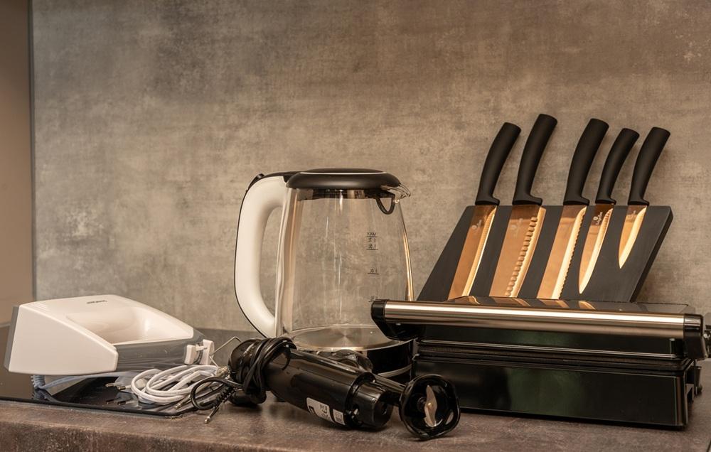 Oaspeții au la dispoziție o mașină de spălat, o mașină de spălat vase, aer condiționat, un frigider exterior și unul interior, un ventilator pe terasă, un televizor în living și pe terasă. Casa are două dormitoare cu paturi cu lățimea de 160 cm. Paturile sunt dotate cu saltele de calitate, saltele suplimentare și lenjerie de pat din satin. Există o canapea extensibilă în living pentru o persoană suplimentară. Bucătăria este complet utilată cu veselă și electrocasnice: aparat de cafea, cuptor, cuptor cu microunde, prăjitor de pâine... În curte, oaspeții au acces la un grătar, șezlonguri și două plăci de SUP. Casa are internet StarLink de mare viteză.