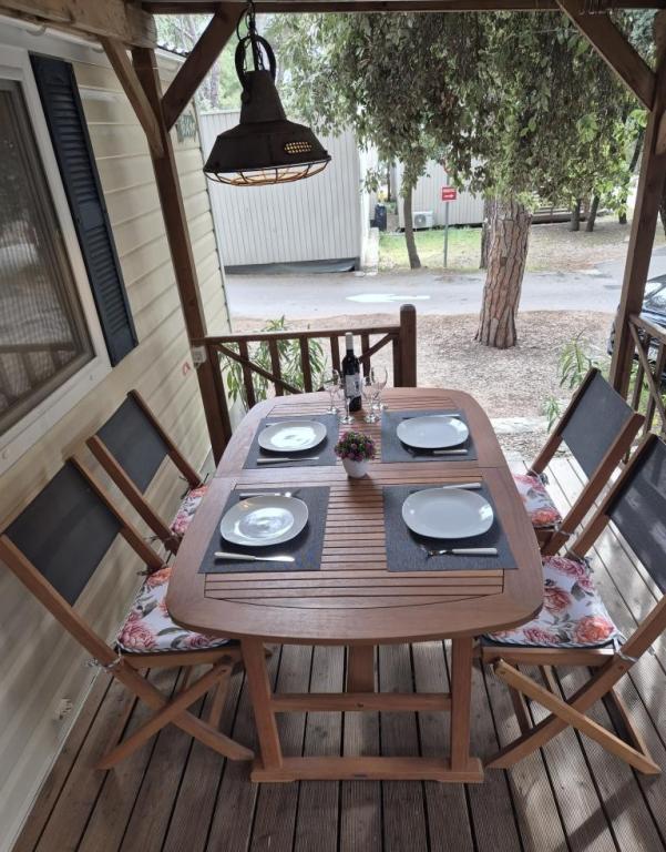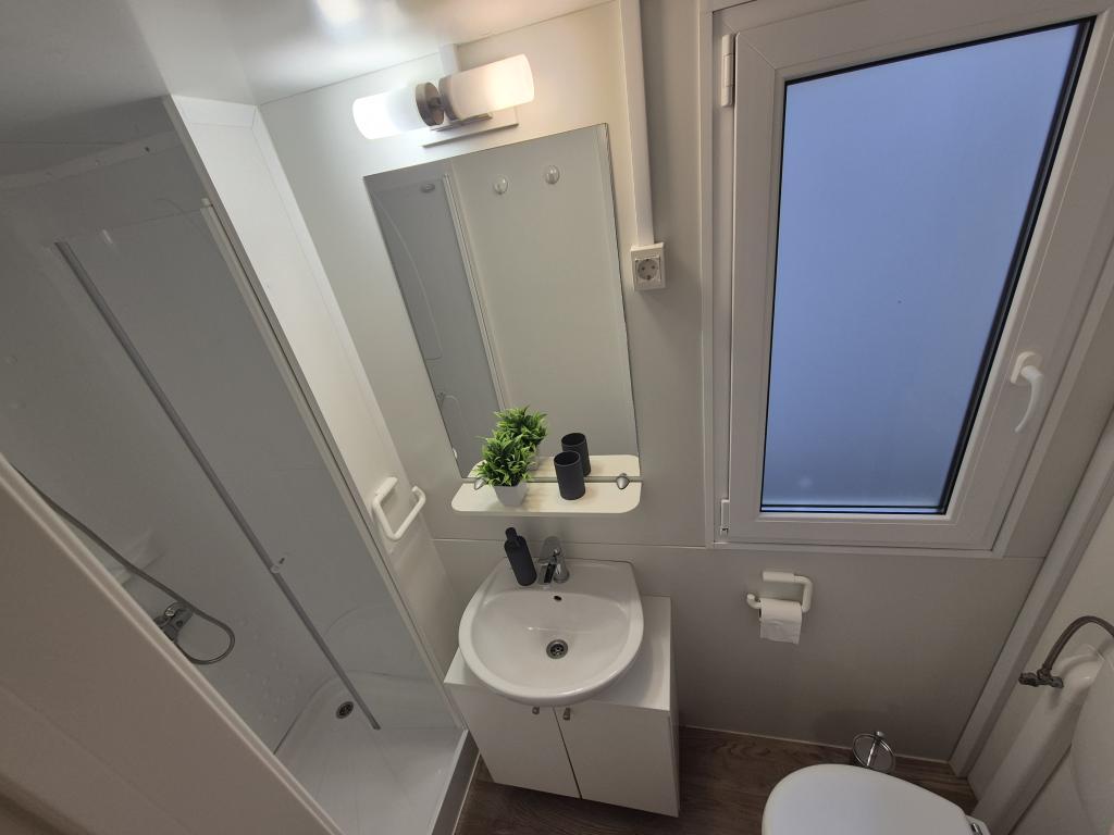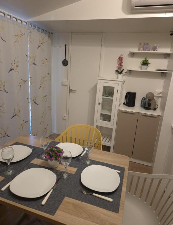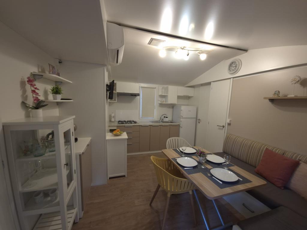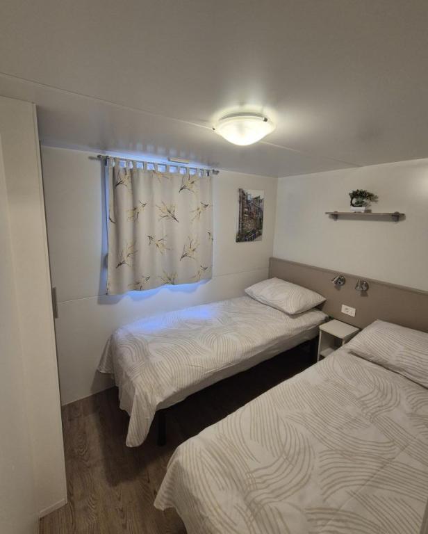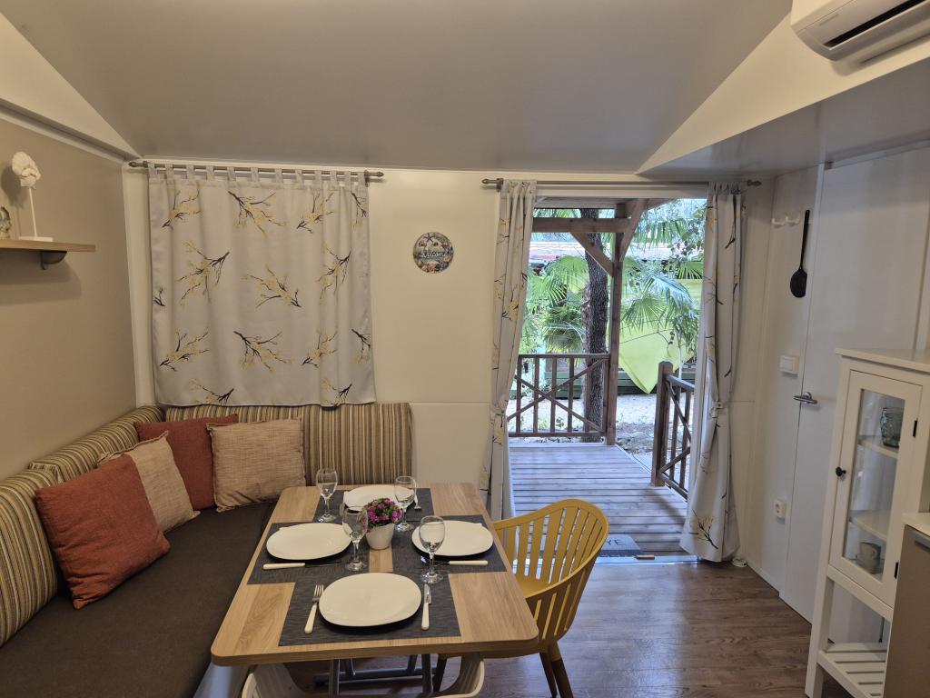 Cazare confortabilă: Casa mobilă Glamour Pakoštane din Pakoštane oferă două dormitoare și două băi, cu un living spațios. Proprietatea include o bucătărie complet utilată, aer condiționat și WiFi gratuit. Facilități de agrement: Oaspeții se pot bucura de terasă, bar și piscină pentru copii. Facilitățile suplimentare includ o zonă de luat masa, mobilier de exterior și parcare privată gratuită la fața locului. Locație excelentă: Campingul este situat la 27 km de Aeroportul Zadar, la câțiva pași de plaja Punta. În apropiere se află Marina Kornati și Muzeul Patrimoniului Biograd, ambele la 8 km distanță. Oportunitățile de navigație împodobesc împrejurimile.