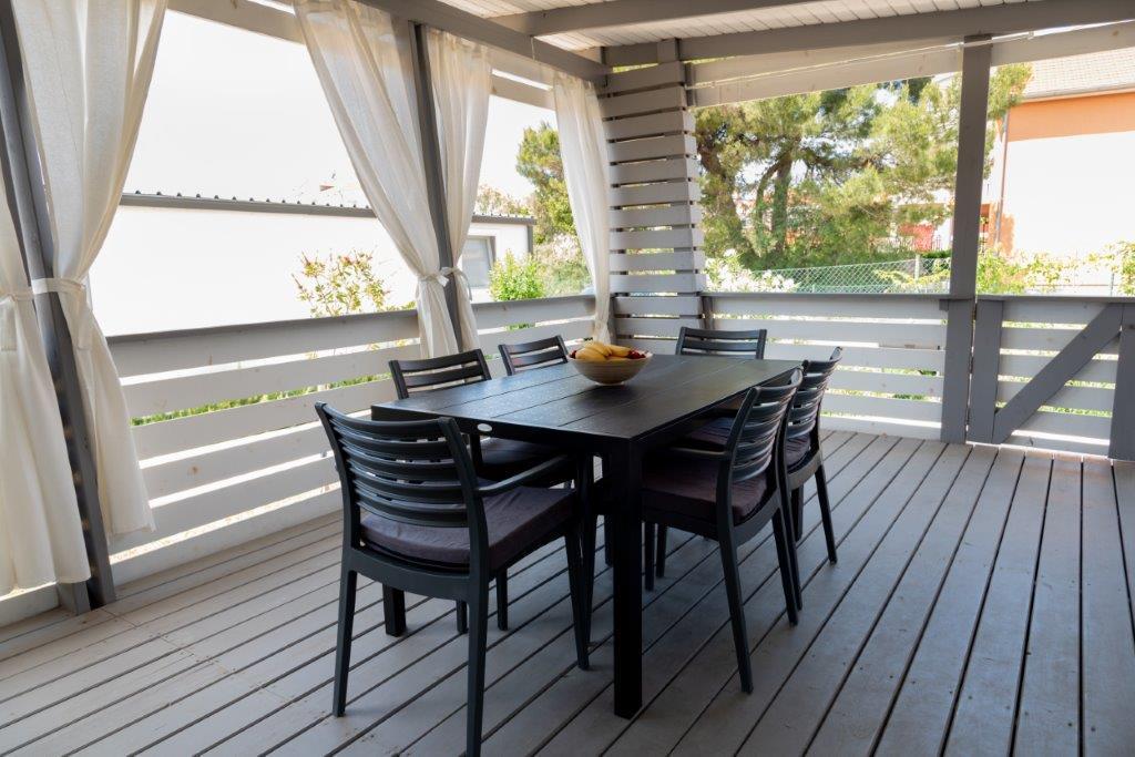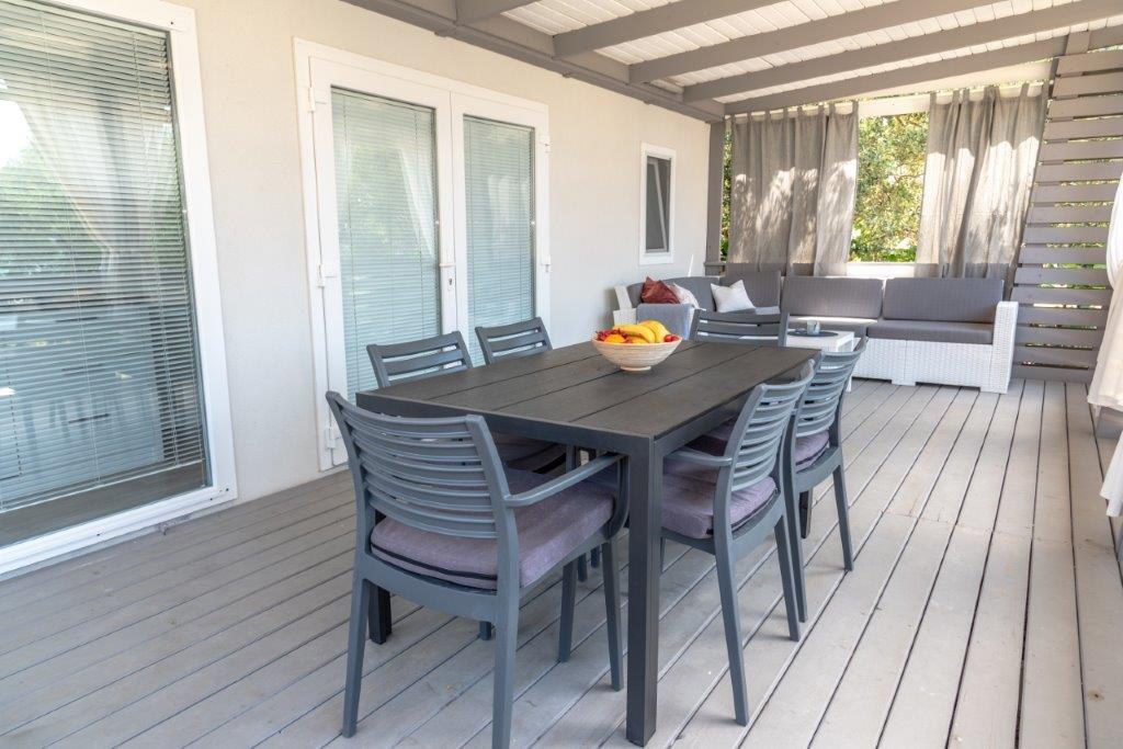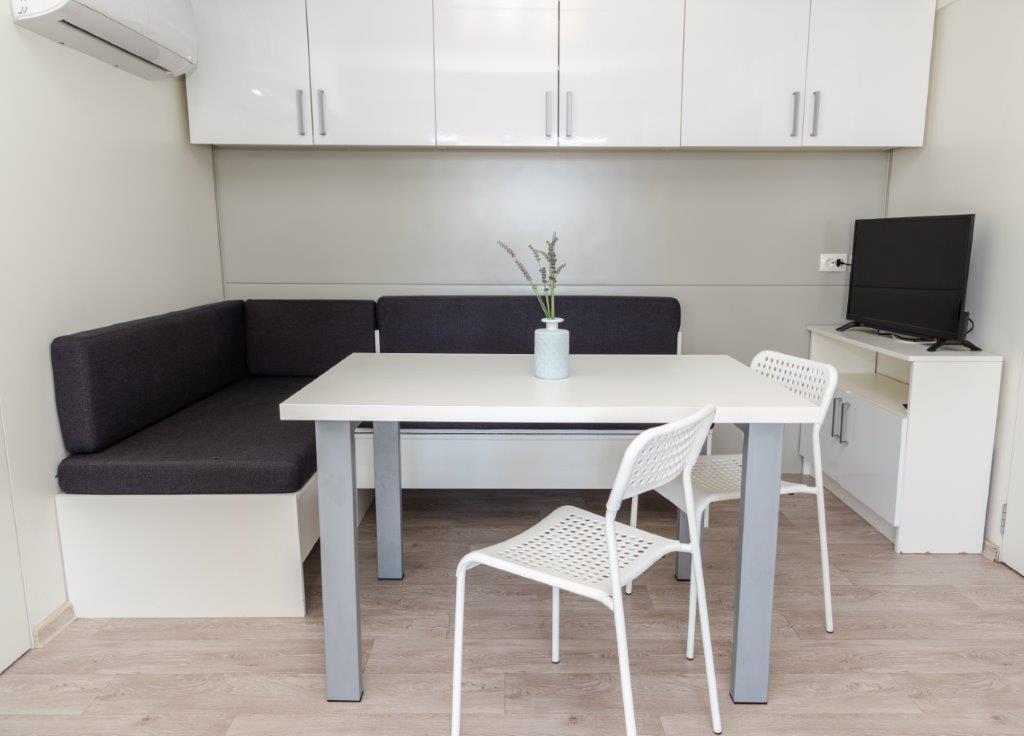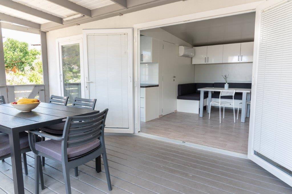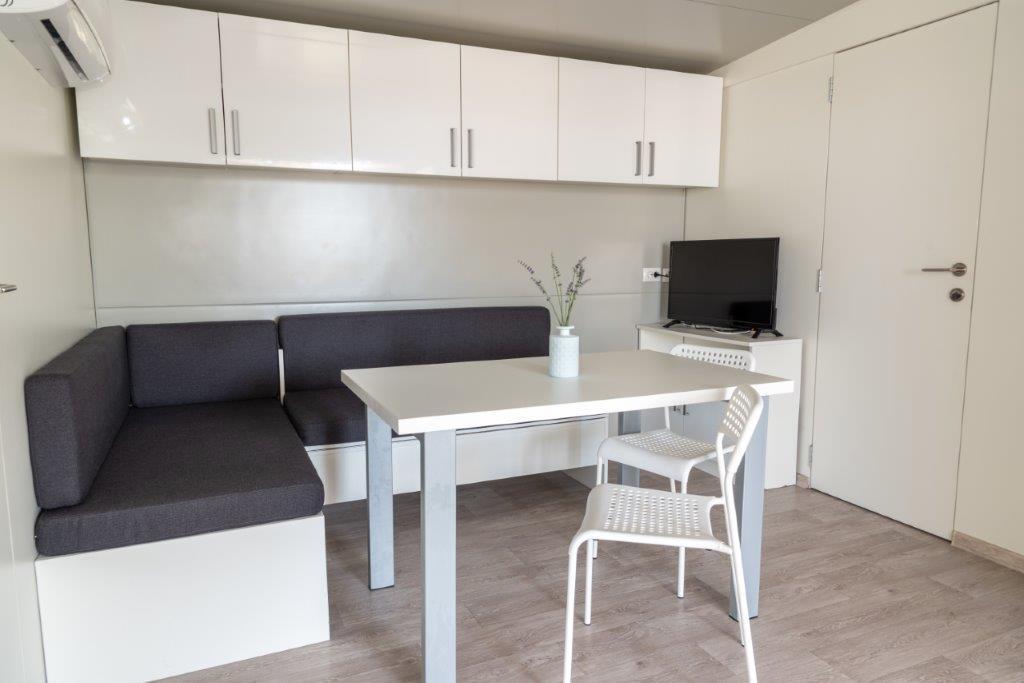 Case mobile situate în centrul orașului Pakoštane, chiar lângă plaja principală cu nisip, cu vedere directă la mare. Casa mobilă are două dormitoare, o sufragerie, o bucătărie, o toaletă și o terasă mare (5). Toți oaspeții au la dispoziție un grătar. Oaspeții au la dispoziție un loc de parcare. Animalele de companie sunt permise, dar se percepe o taxă suplimentară de 7 €/noapte per animal de companie. Avem propriul loc de acostare pentru bărci și parcare pentru remorci, care sunt disponibile oaspeților contra cost.