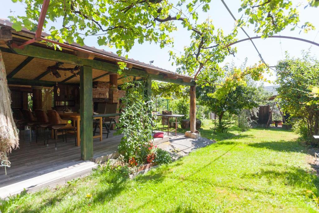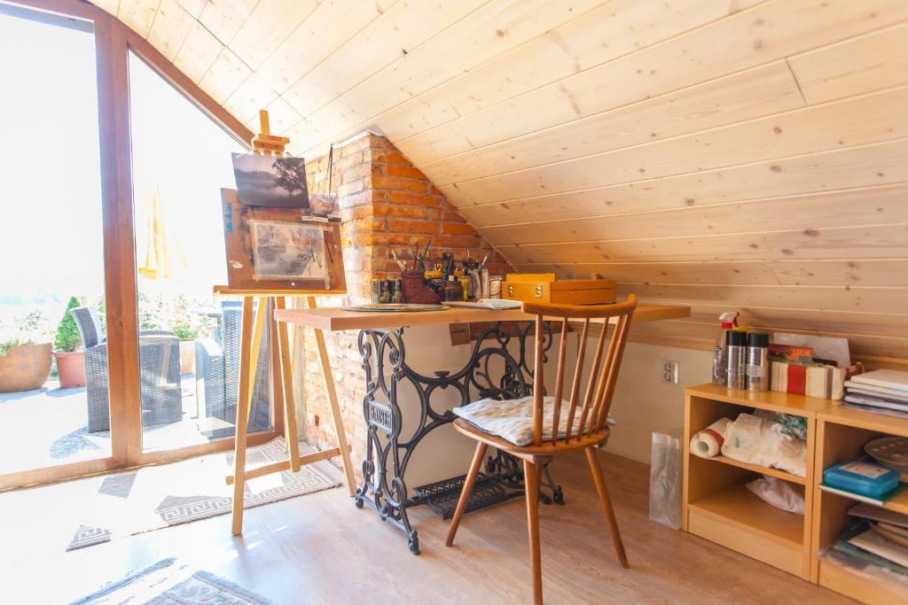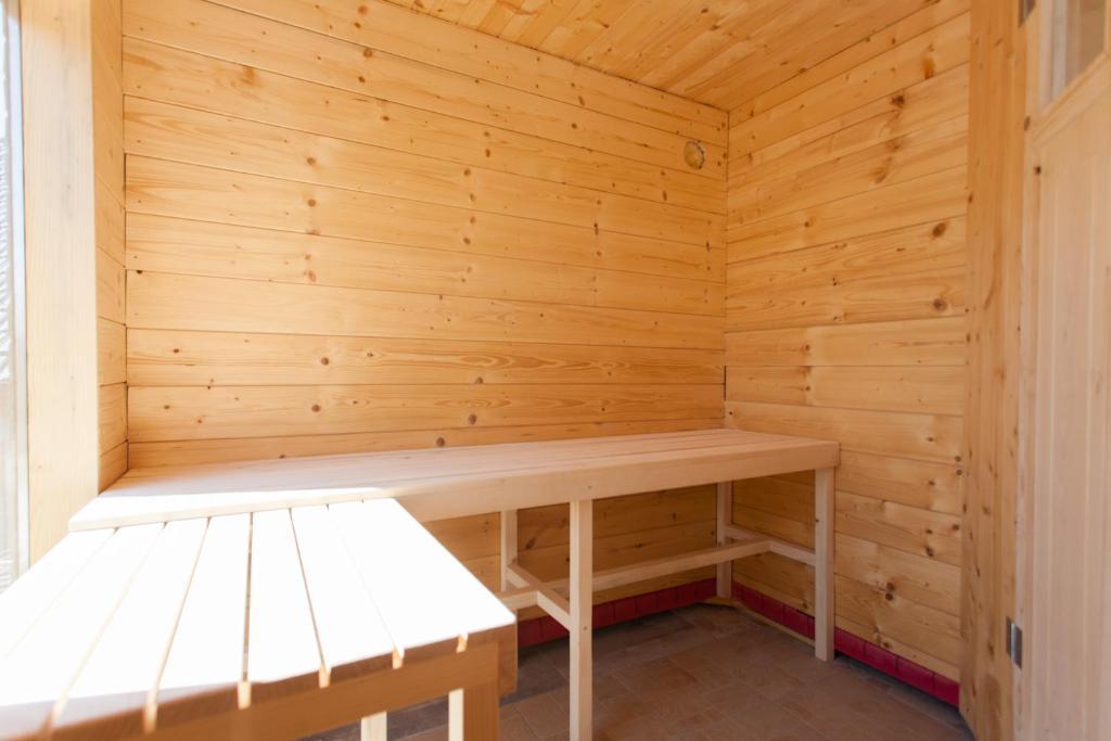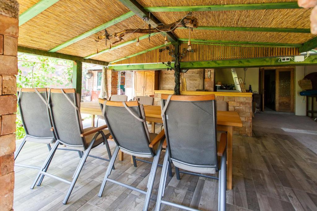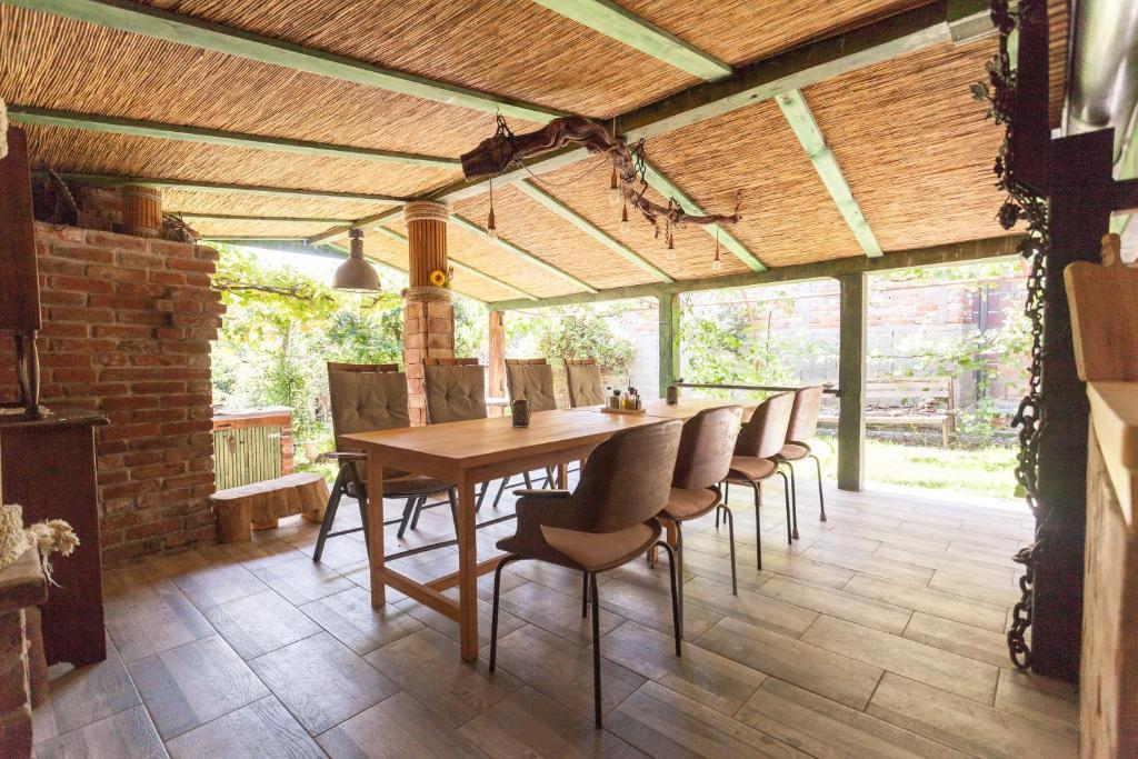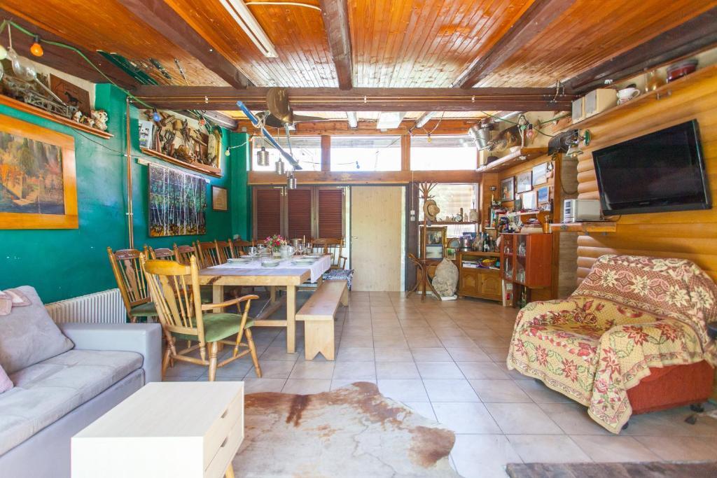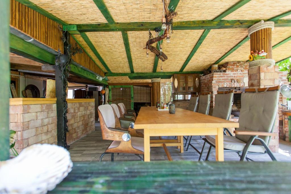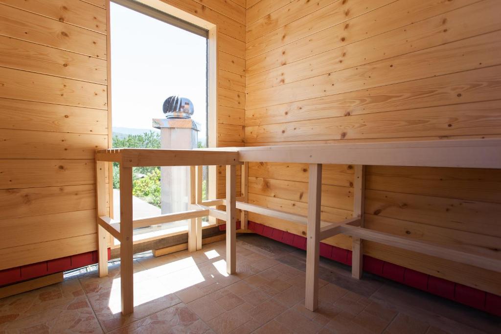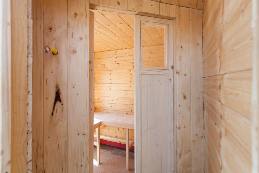 Casa de vacanta contine doua camere si o galerie cu pat dublu, o camera dubla cu doua paturi separate si un pat suplimentar pentru doua persoane. Are doua bai, o bucatarie si un living spatios. Posibilitate de folosire a piscinei exterioare, sauna si jacuzzi, wi-fi, max-tv, parcare. Înconjurat de verdeață, există o terasă în aer liber acoperită cu grătar, cuptor, ceainic, frigarui. Sunt disponibile jocuri de societate, cărți, omul nu se supără, badminton cu plasă, arc și săgeți, săgeți, trambulină și leagăne pentru copii.