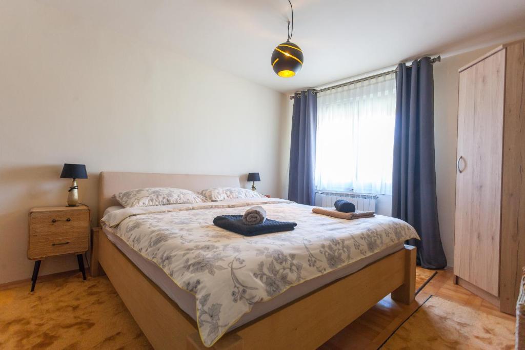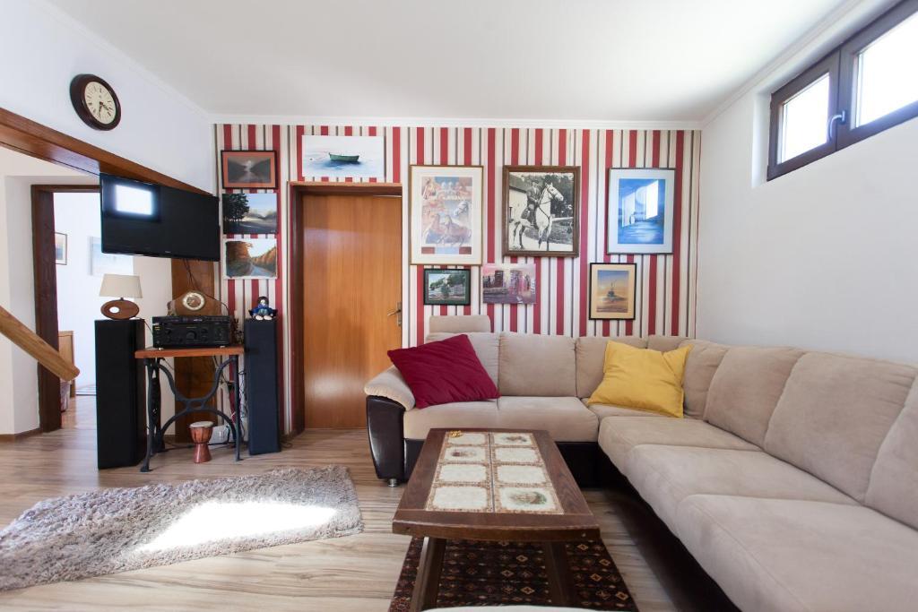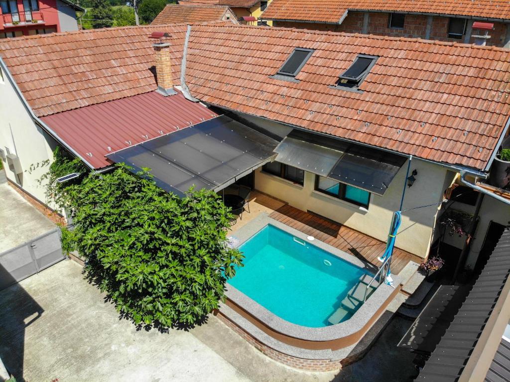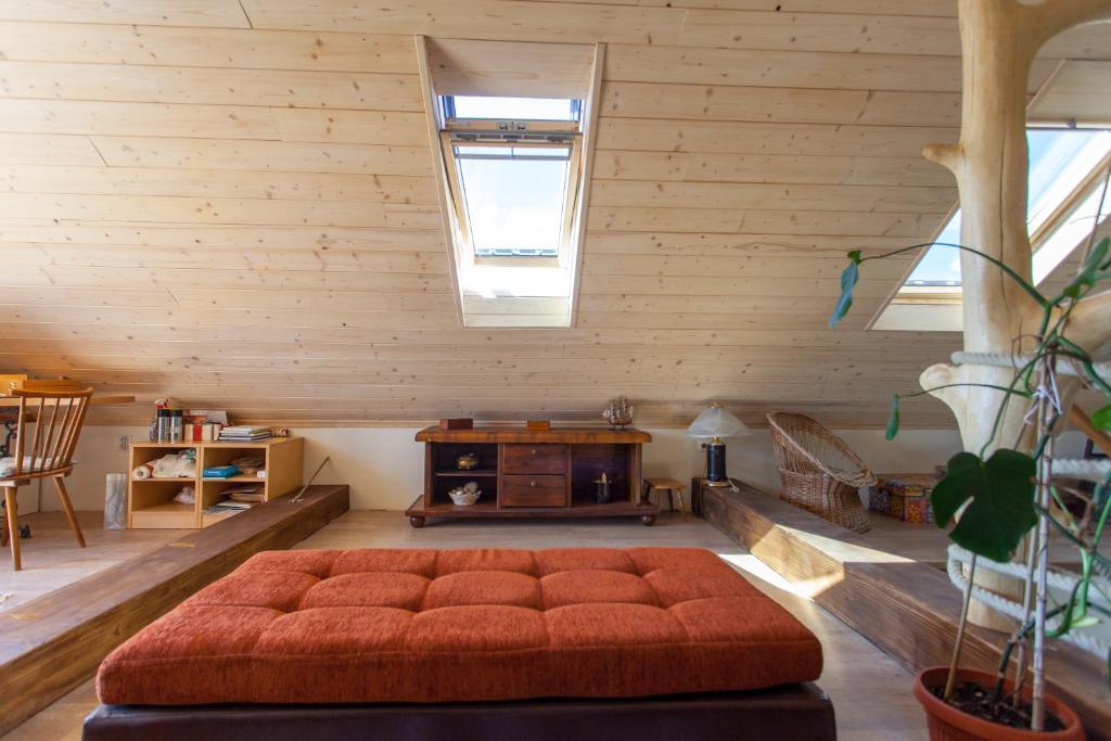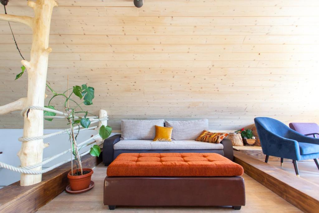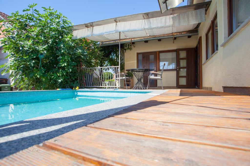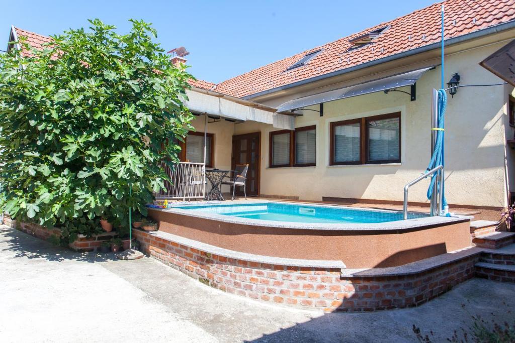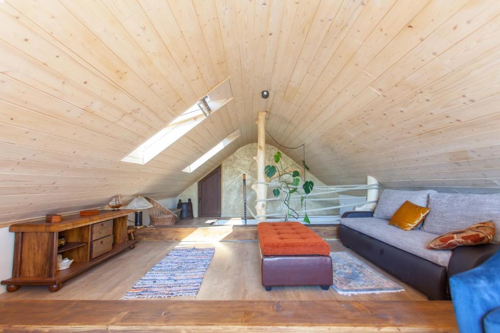 Casa de vacanta contine doua camere si o galerie cu pat dublu, o camera dubla cu doua paturi separate si un pat suplimentar pentru doua persoane. Are doua bai, o bucatarie si un living spatios. Posibilitate de folosire a piscinei exterioare, sauna si jacuzzi, wi-fi, max-tv, parcare. Înconjurat de verdeață, există o terasă în aer liber acoperită cu grătar, cuptor, ceainic, frigarui. Sunt disponibile jocuri de societate, cărți, omul nu se supără, badminton cu plasă, arc și săgeți, săgeți, trambulină și leagăne pentru copii.