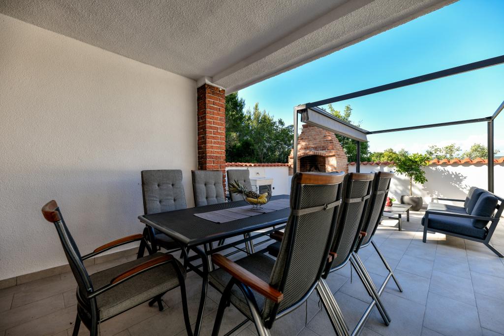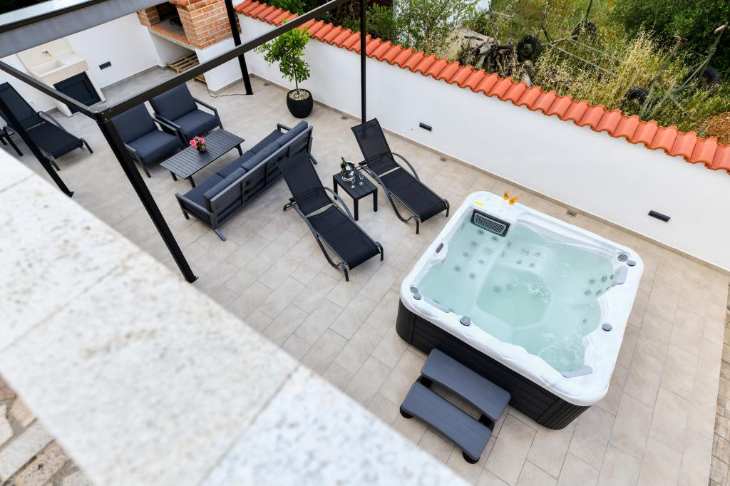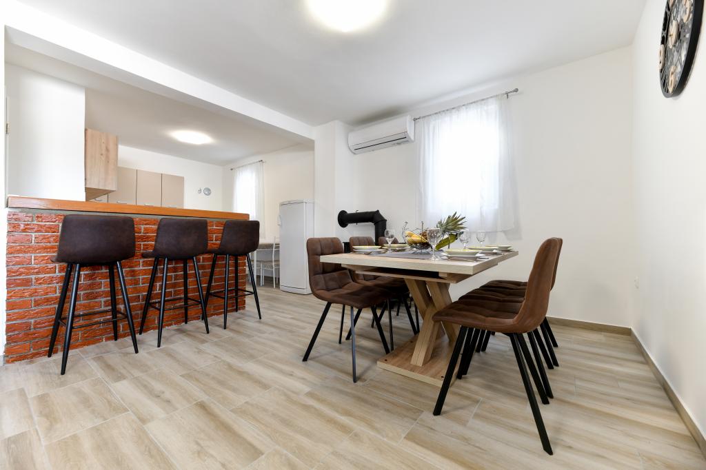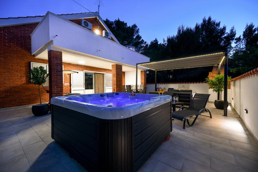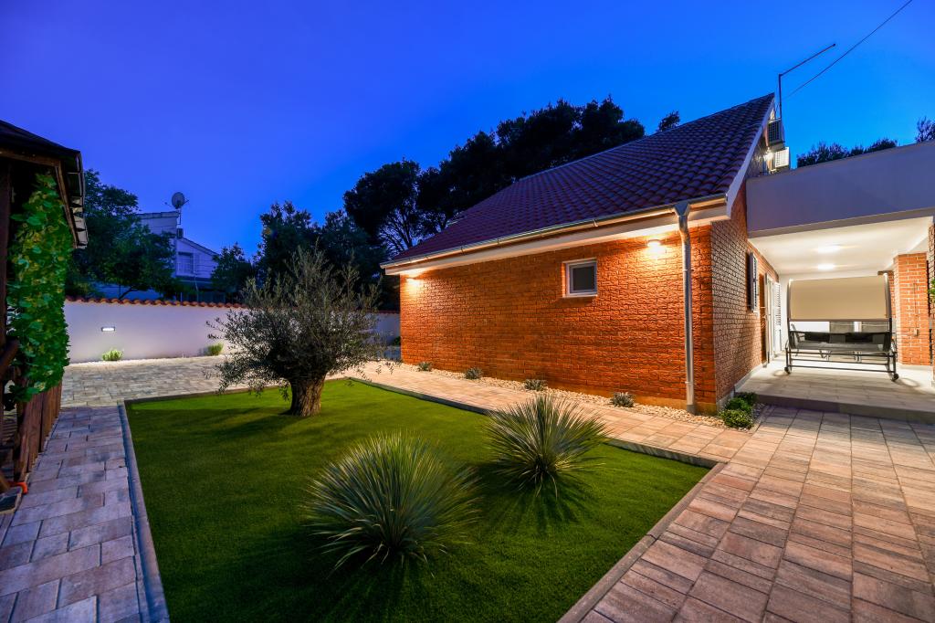 Casa este situată pe insula Pašman, într-o oază de pace, liniște și frumusețe a unui mic oraș tipic dalmat. Trei minute de mers pe jos până la plajă, cinci minute până la magazin. Facilitatea are o terasă mare în aer liber, grătar, șezlonguri, un leagăn pentru odihnă și o cadă cu hidromasaj. La parter se afla un living mare cu o bucatarie, doua bai si trei toalete si o masina de spalat rufe. La primul etaj sunt 4 dormitoare, doua camere au acces la o terasa mare cu vedere la mare, un pat matrimonial 180x200, iar celelalte doua camere au un pat dublu 160x200, si vedere la padure. Există și o toaletă la primul etaj. La cerere este disponibil un pătuț. In curte sunt trei locuri de parcare, precum si posibilitatea folosirii unui dus exterior. Casa a fost complet renovata in mai 2023. Este posibilă și un sejur de 10 persoane, caz în care se asigură cazare pentru două persoane într-o garsonieră pe aceeași parcelă, cu cost suplimentar. Garsoniera are o bucătărie cu toate electrocasnicele, o baie cu duș, televizor, aer condiționat și o terasă cu vedere la mare.