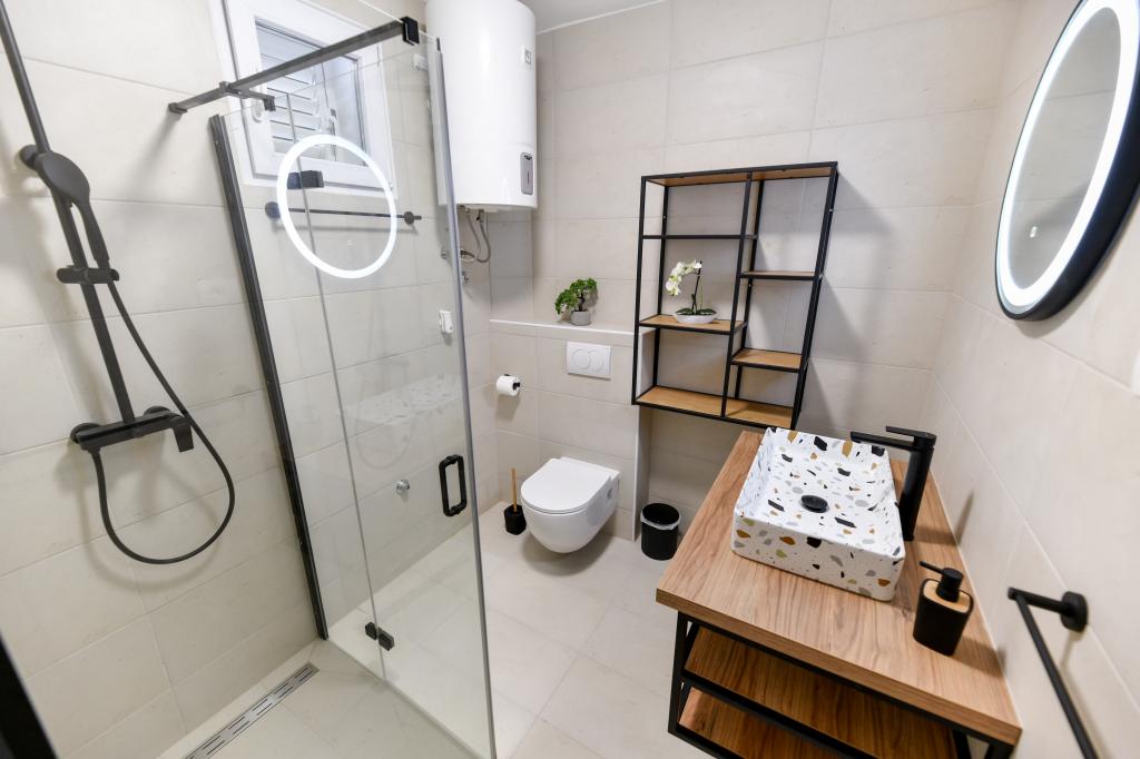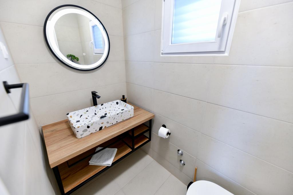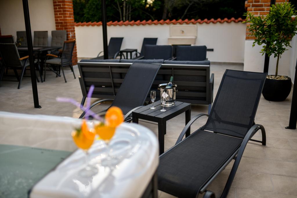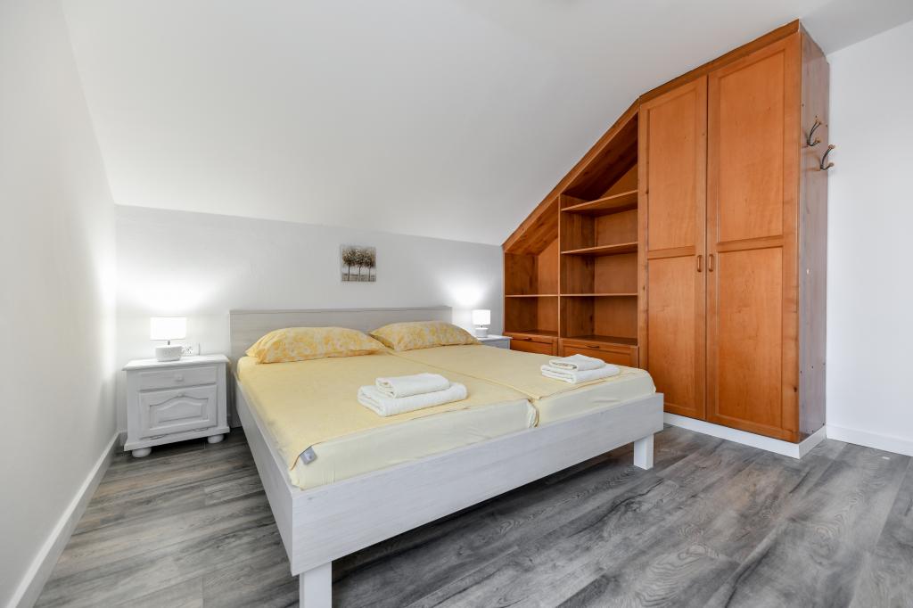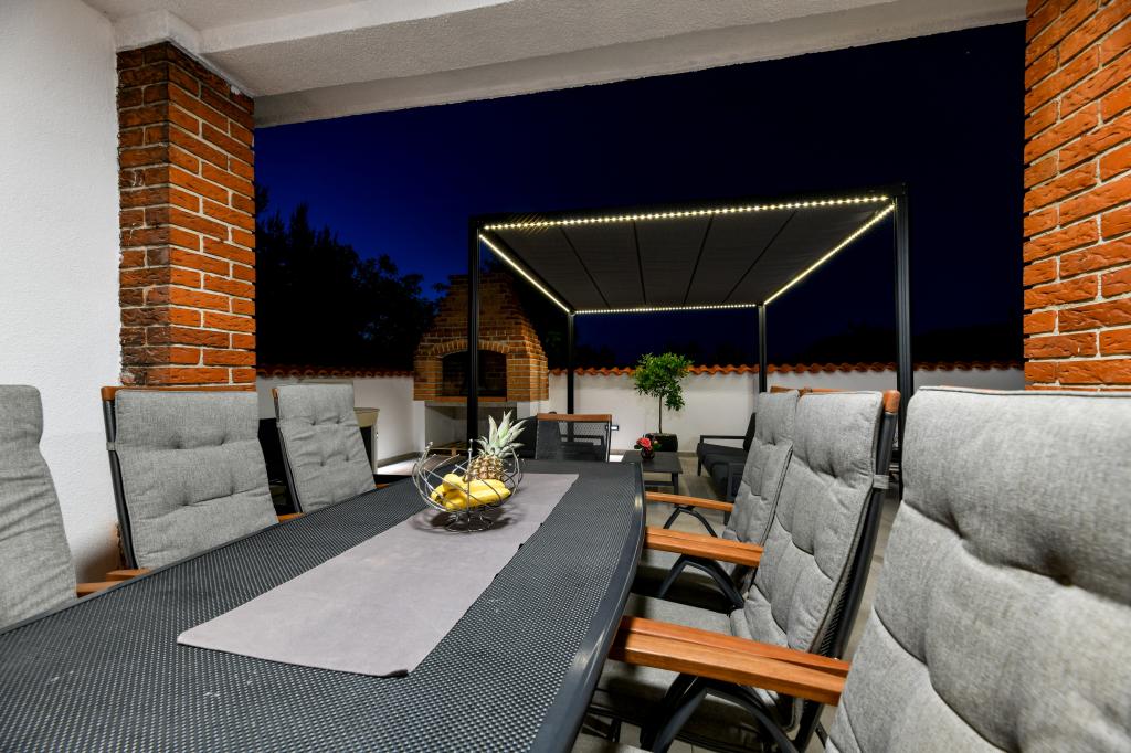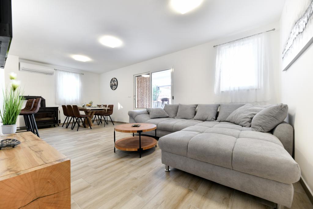 Casa este situată pe insula Pašman, într-o oază de pace, liniște și frumusețe a unui mic oraș tipic dalmat. Trei minute de mers pe jos până la plajă, cinci minute până la magazin. Facilitatea are o terasă mare în aer liber, grătar, șezlonguri, un leagăn pentru odihnă și o cadă cu hidromasaj. La parter se afla un living mare cu o bucatarie, doua bai si trei toalete si o masina de spalat rufe. La primul etaj sunt 4 dormitoare, doua camere au acces la o terasa mare cu vedere la mare, un pat matrimonial 180x200, iar celelalte doua camere au un pat dublu 160x200, si vedere la padure. Există și o toaletă la primul etaj. La cerere este disponibil un pătuț. In curte sunt trei locuri de parcare, precum si posibilitatea folosirii unui dus exterior. Casa a fost complet renovata in mai 2023. Este posibilă și un sejur de 10 persoane, caz în care se asigură cazare pentru două persoane într-o garsonieră pe aceeași parcelă, cu cost suplimentar. Garsoniera are o bucătărie cu toate electrocasnicele, o baie cu duș, televizor, aer condiționat și o terasă cu vedere la mare.
