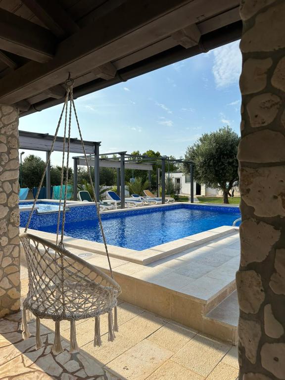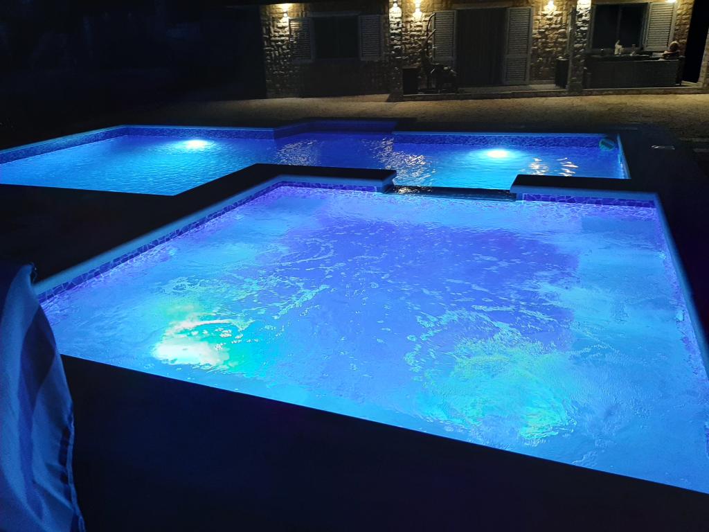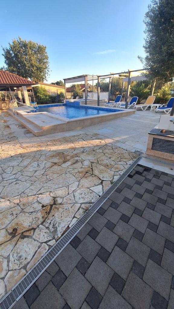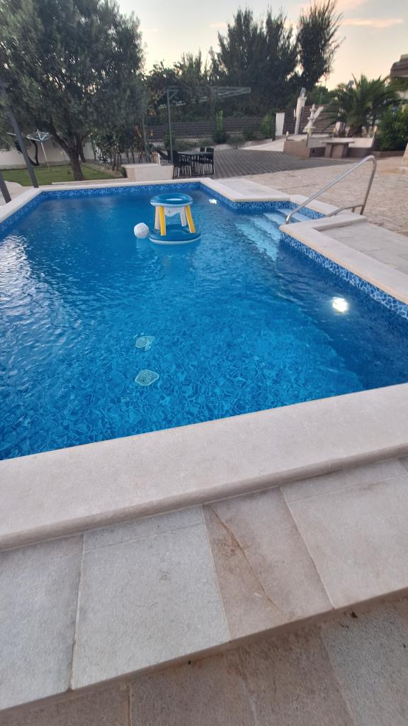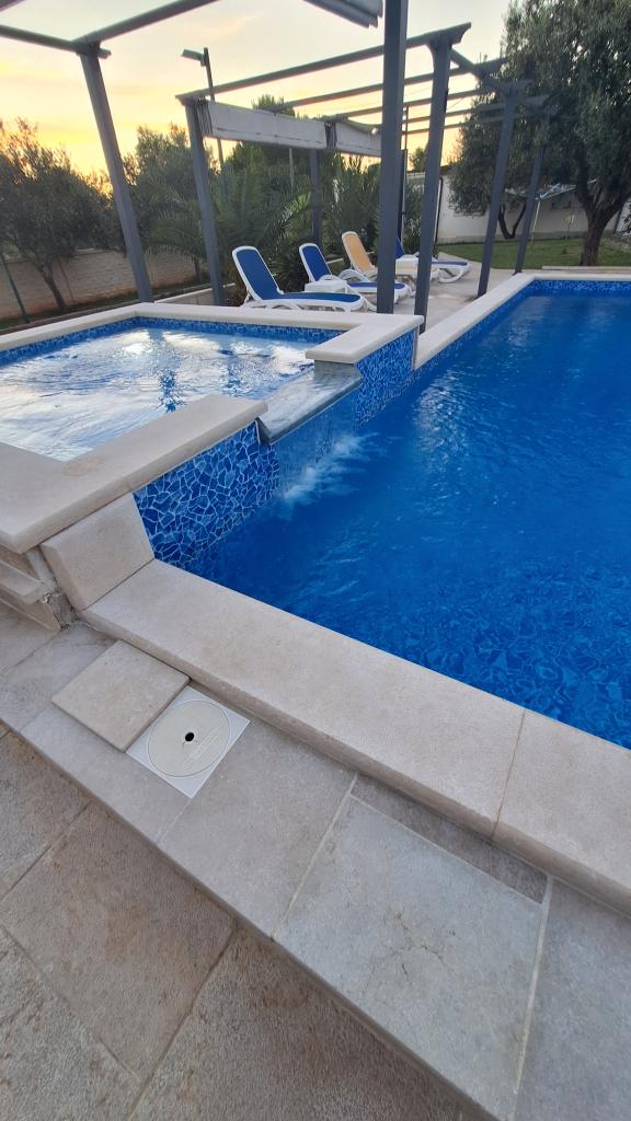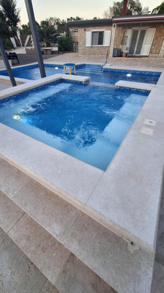 Casă de vacanță cu piscină încălzită și piscină cu masaj și cascadă artificială. Piscina are dimensiunile de 8x4 m, iar piscina cu masaj are 3 x 3 m. Se află la 200 de metri de plajă. În apropiere se află un restaurant, un port pentru acostarea bărcilor și o plajă pentru animale de companie. Cu grătar, parcare pentru 3 mașini.