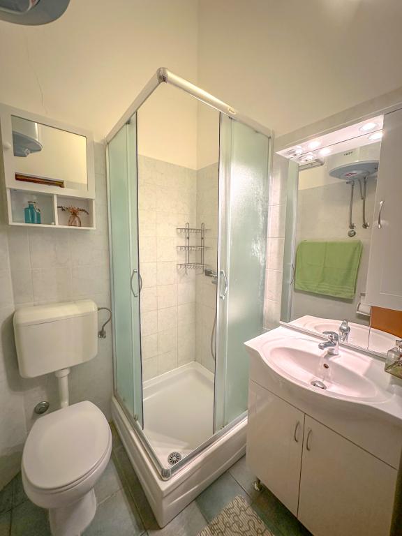 APARTAMENTUL SARA - PUNTA SKALA /PETRČANE este nou si frumos decorat si este format dintr-un hol de intrare, doua dormitoare, un living cu bucatarie, o baie si un balcon cu vedere la mare. Apartamentul este la etajul 1 al blocului. APARTAMENTUL MARINA-PUNTA SKALA/PETRČANE este un apartament confortabil la parterul clădirii, compus dintr-un hol de intrare, două dormitoare, living cu bucătărie, baie și balcon. Ambele apartamente sunt complet echipate pentru un sejur placut.Este asigurata parcare. Cel mai apropiat magazin, restaurant, brutărie și patiserie se află la aproximativ 100 m de apartament. Plaja cu piscine se afla la aproximativ 200 de metri distanta de apartament, iar verdeata este din belsug, asa ca poti gasi oricand umbra care iti permite sa stai pe plaja mai mult timp. Există o lungă promenadă pe malul mării pe care o puteți folosi pentru a ajunge la Petrčane. Apartamentele sunt la 12 km de orașul Zadar și la 3 km de orașul istoric Nin. Apartamentele Sara și Marina sunt ideale pentru o vacanță liniștită în familie, dar oferă și oportunități pentru excursii și ieșiri. Așteptăm cu nerăbdare sosirea dumneavoastră!