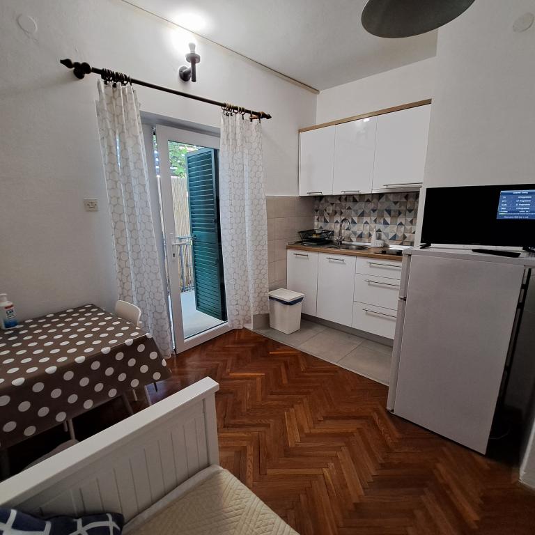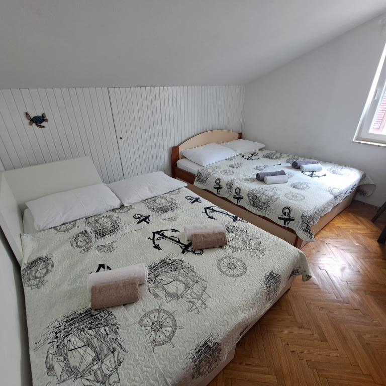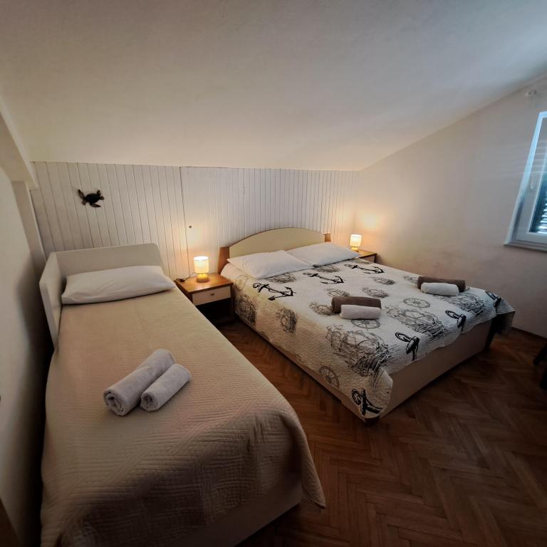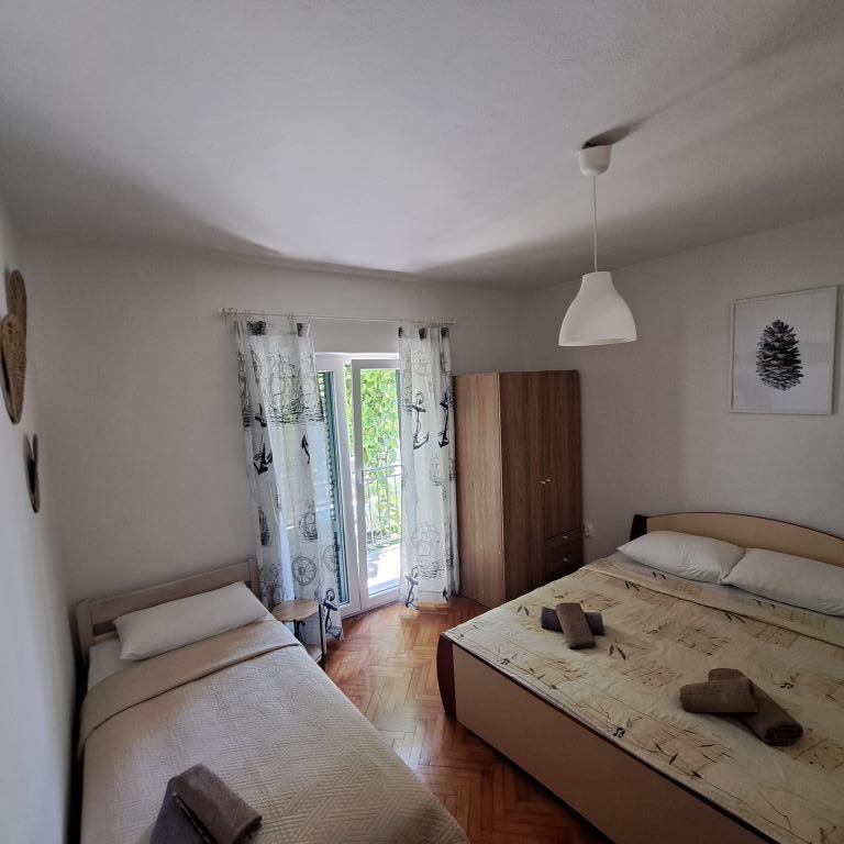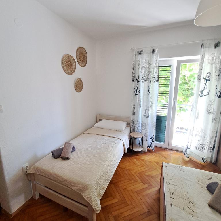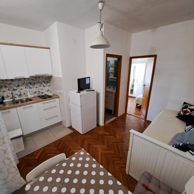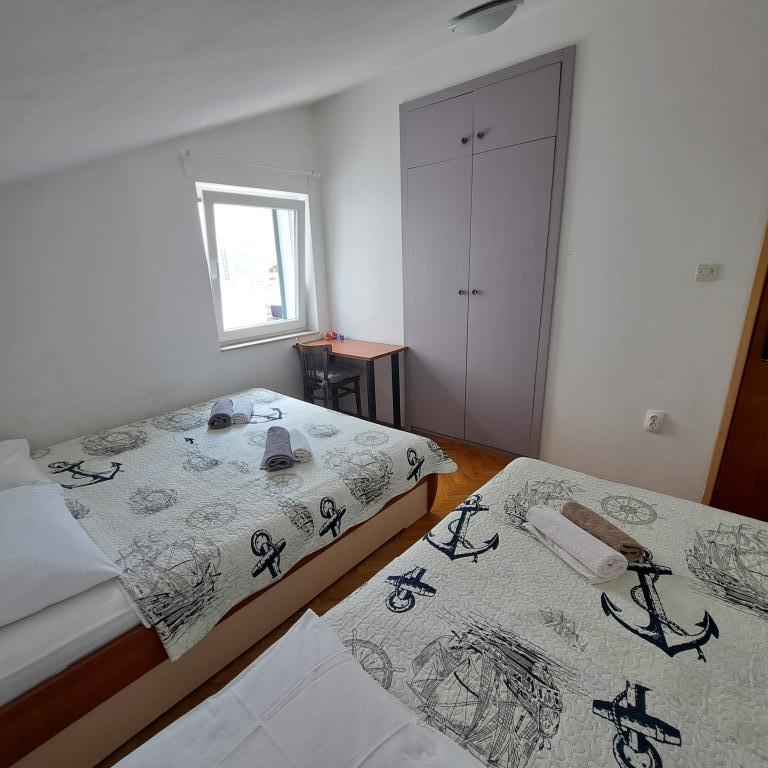 Cazare îngrijită, decorată decent și extrem de funcțională. Gazdele sunt extrem de primitoare și cordiale, iar ceea ce încântă cel mai mult este locația - la un minut sau doi de mers pe jos până la cea mai apropiată plajă, iar la o plimbare de cinci minute sunt mai multe plaje diferite, ceva pe gustul tuturor. Este nevoie de o plimbare la fel de ușoară de-a lungul promenadei pentru a ajunge în centrul acestui frumos oraș dalmat.