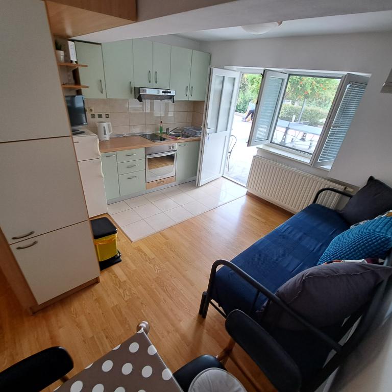 Garsoniera este frumos amenajata, curata. Proprietarul este foarte prietenos. Toate împreună oferă o senzație plăcută de acasă. Apartamentele sunt într-o locație excelentă, totul este foarte aproape. Plaja este la doar câțiva metri distanță. Plajele sunt frumoase si pentru toate gusturile. Marea este super curata. Cel mai mult mi-a plăcut că la scurt timp după intrarea în mare există nisip, care dă o senzație grozavă la înot. Fiului meu i-a plăcut scufundările. S-au jucat și în apă. Este grozav pentru familiile tinere, precum și pentru copiii puțin mai mari, dar și pentru cei dintre noi cărora le place o vacanță mai relaxată. Perčans satisfac toate gusturile. Sunt doua baruri pe plaja, inghetata, clatite, .... Una peste alta, această locație a fost cea mai bună pentru mine până acum. Cu dl. Am făcut deja aranjamente cu Boris pentru anul viitor.