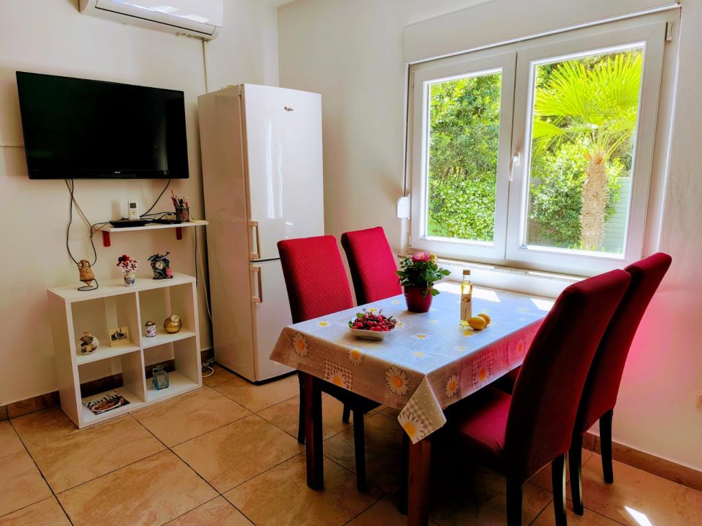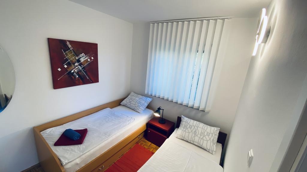 Apartament complet utilat, îngrijit și curat. Pozele de pe Apartmanija.hr corespund pe deplin stării reale. Parcare în fața apartamentului. Apartamentul este pe o stradă liniștită, fără trafic. Te trezești cu sunetul păsărilor care ciripesc. O plajă cu pietriș bine întreținută se află la câțiva pași. Marea este cristalină. Plaja cu nisip a orașului se află la 2 minute de mers pe jos. Gazda este foarte amabilă, disponibilă pentru informații oricând.