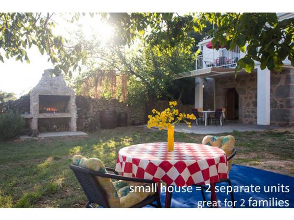 Cazare pentru 7 persoane - EXCELENT PENTRU 2 FAMILII - Casa ŽOFICA este formată din 2 apartamente: - parter: apartament studio MIMOZA, 3 persoane, aprox. 30 m2, living, baie cu duș, terasă 22m2, ziduri de piatră; - etaj 1: apartament CIKLAMA, 4 persoane, 40 m2, living, dormitor mic, baie cu duș, balcon. Insula Krk, Skrpčićī - sat mic, liniștit, ospitalier. Mediu rural. La aproximativ 4 - 7 minute cu mașina de mare. Cazare - atmosferă mediteraneană. Verde luxuriant și zone stâncoase. Grătar de piatră, curte mare, parcare. Magazin, loc de joacă pentru copii, teren mic de sport, biserică, restaurant la 40m. Bine conectat cu orașele culturale și de divertisment Malinska și orașul Krk. Portul de feribot Valbiska la 2km (excursii către insula Cres și insula Rab), aeroportul Rijeka la 25km. Taxe incluse. Rezervarea se face cu plată în avans, restul se plătește la sosire. Sosire 14-15. Plecare 07-10. EnkaraPopenkara@gmail.com 385 976062644