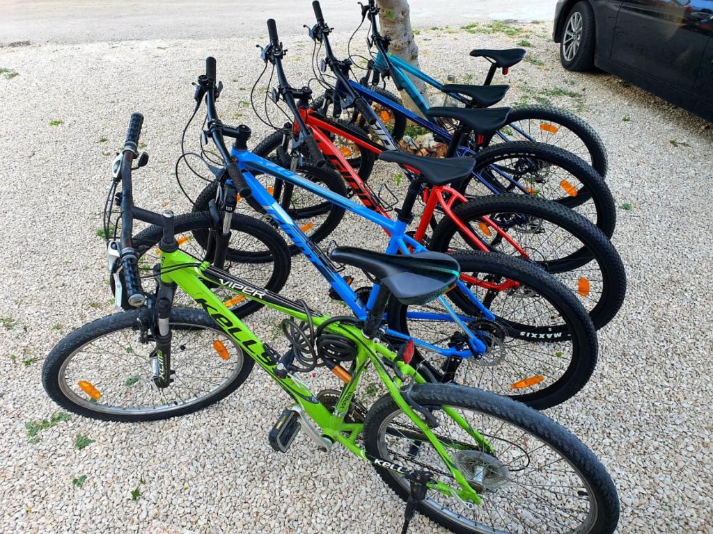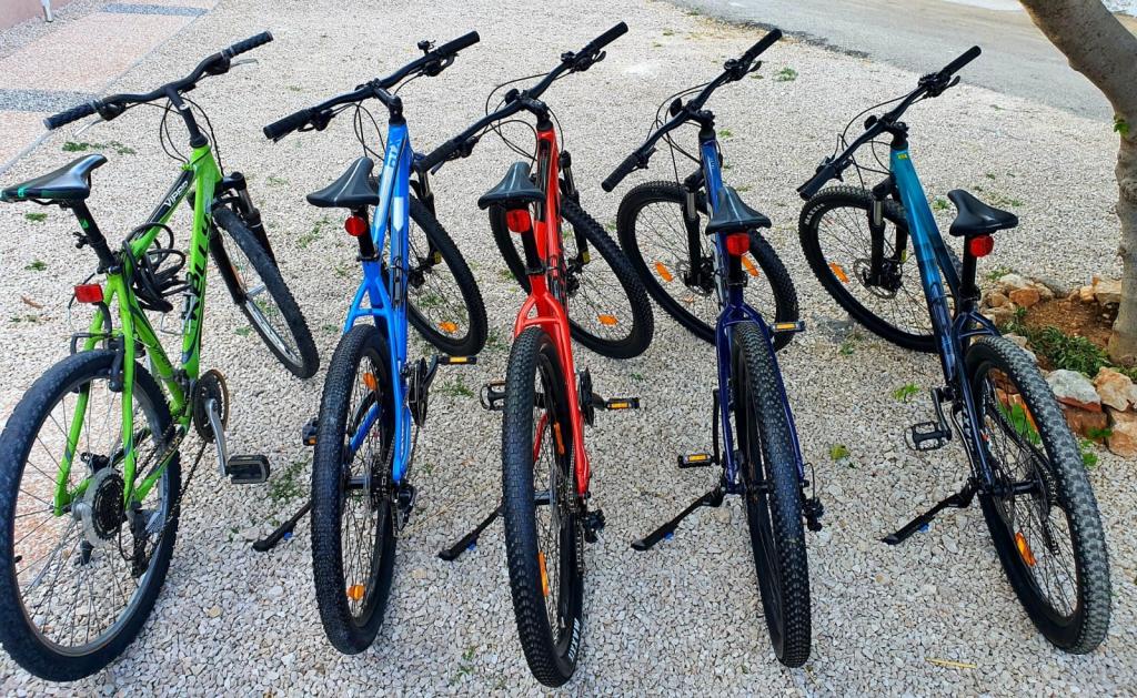 Oaspeții au la dispoziție două biciclete de mărimea M și două biciclete de mărimea L, fie pentru închiriere pe mai multe zile (contra cost), fie pentru o singură utilizare (gratuit). Fiecare apartament are un loc de parcare în fața casei. Fiecare apartament este dotat cu articolele necesare pentru baie și bucătărie (săpun lichid, gel de duș, odorizant de cameră, hârtie igienică, tablete pentru mașina de spălat vase, burete și detergent de vase manual, ulei de măsline, condimente).