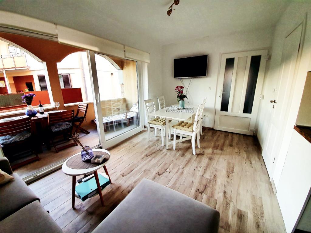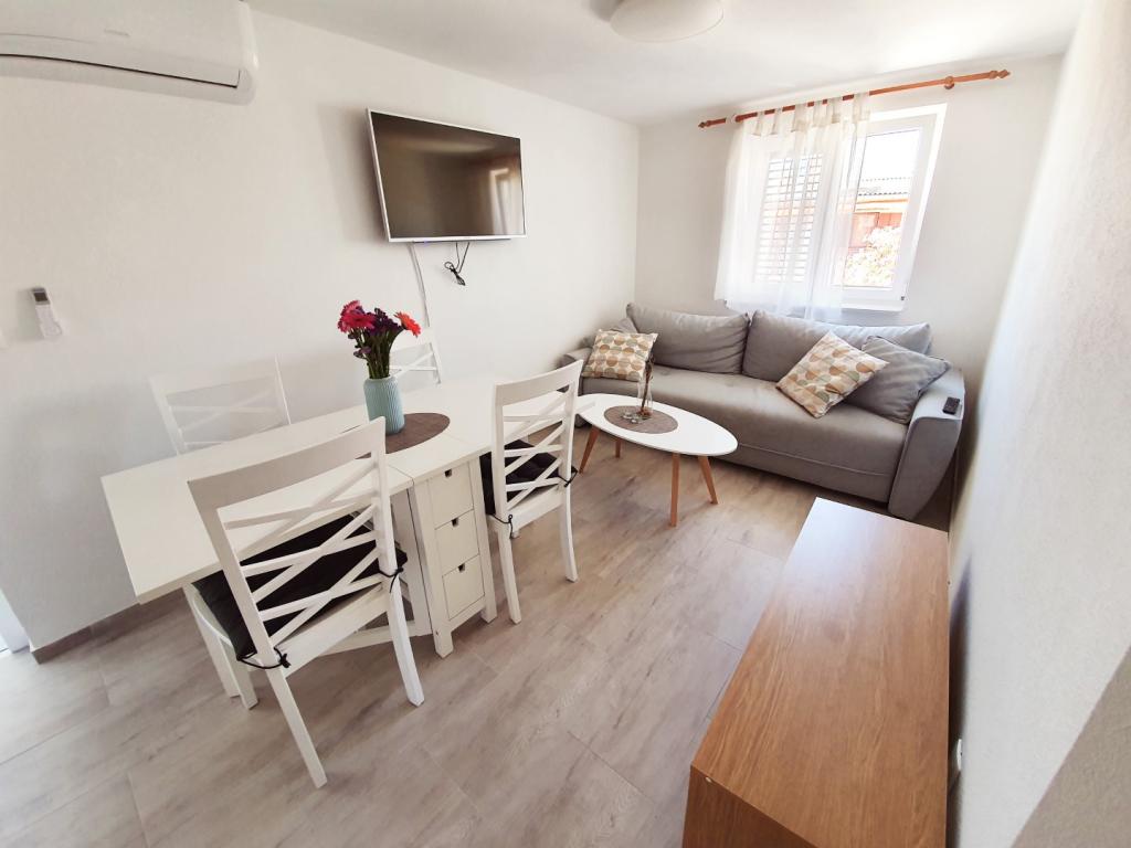 Apartament bine echipat. Frigider mare, mașină de spălat vase, cuptor și cuptor cu microunde + tot ce aveți nevoie în bucătărie. Paturi confortabile, curate și ordonate. Gazdele ajutătoare și foarte drăguțe. Contact excelent! Împrejurimi liniștite și smochine delicioase la îndemână. Surpriză de bun venit pentru oaspeți. Un punct de plecare ideal pentru excursii la Zadar, Trogir și Vodice sau pentru excursii la Kornati, Krka și altele. Vă recomand frumoasa insulă Murter cu minunata plajă Riva Podvrške, la 25 de minute de mers cu mașina. Il recomand cu drag!