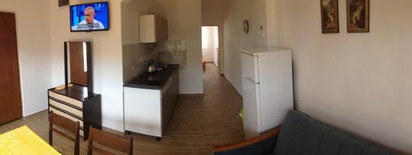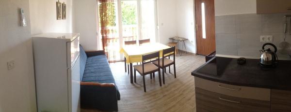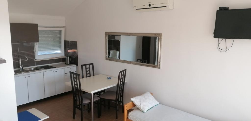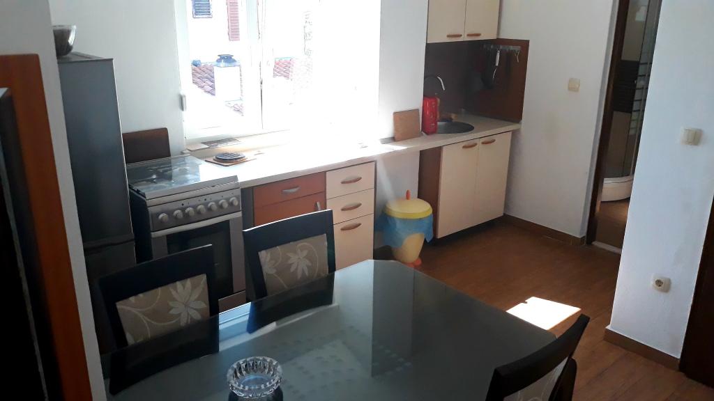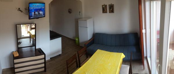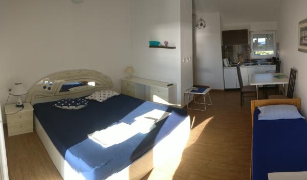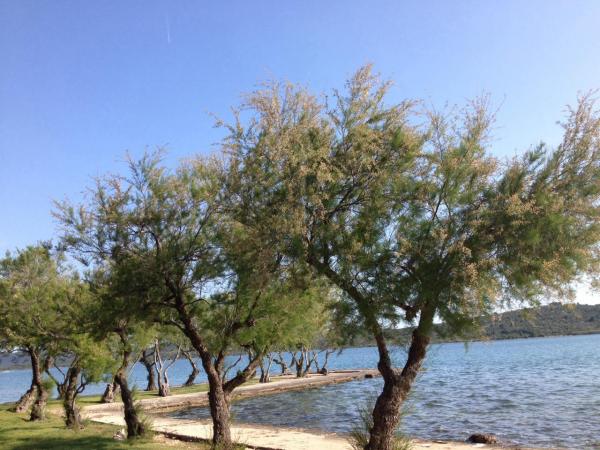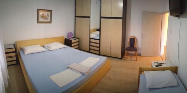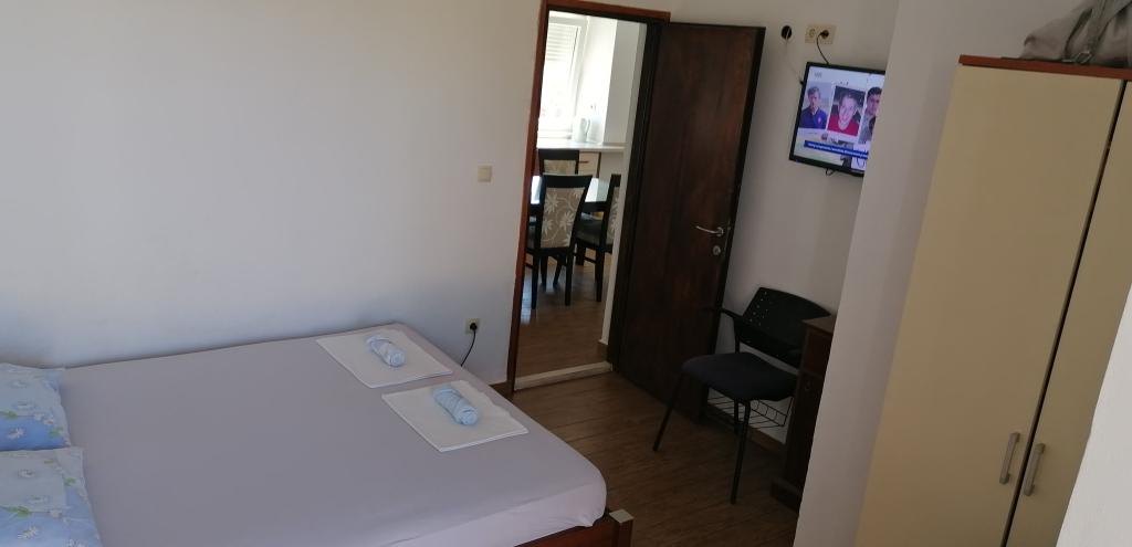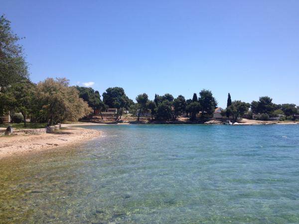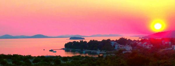 O vedere minunată la mare și la apus de soare de pe terasa apartamentului dumneavoastră. Literal, la 1 minut de mers pe jos până la plaja cu pietriș bine îngrijită, cu umbră naturală. În centrul orașului se poate ajunge de-a lungul plajei spre sud-est. Distanța până la centrul orașului Pirovac este de aproximativ 1500 m (15 minute de mers pe jos). Ne aflăm în partea de vest a orașului Pirovac, lângă intrarea în tabăra Miran. Casa a fost construita in 1982, iar apartamentele au fost renovate in 2018. Oferim oaspeților noștri cazare decentă, curată și ordonată, cu vedere frumoasă la mare și la apus la un preț corect. Nu există lux ca în apartamentele de 4 stele, dar obținem puncte la categoria „relație calitate-preț”. Casa se află în imediata apropiere a două parcuri naționale, Kornati și Krka, iar noi suntem la doar 5 kilometri de Parcul Natural Lacul Vrana. Climă blândă, golfuri frumoase, plaje cu pietriș cu umbra naturală a pinilor vechi de secole, mare caldă, apusuri minunate - acestea sunt plăceri și experiențe unice pentru toți vizitatorii din Pirovac, care a fost întotdeauna un loc pentru privilegiați să se odihnească și să se bucure