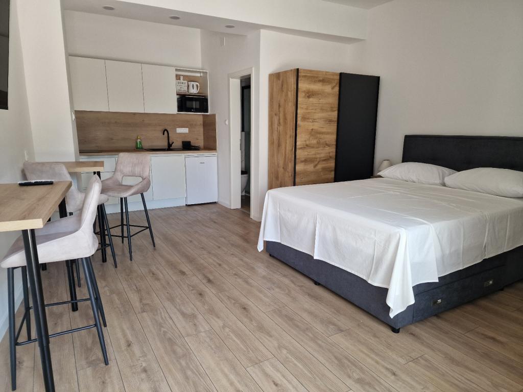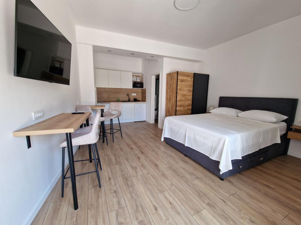 Vin la doamna Iva de câțiva ani și sunt foarte mulțumit de cazare. De obicei, aleg un studio mai mic, decorat cu gust și impecabil de curat. Studioul are tot ce ai nevoie pentru o ședere plăcută. Proprietarul este extrem de amabil și mereu disponibil. Plaja este la aproximativ 7 minute de mers pe jos, iar pe plajă există o pădure de pini, așa că este suficientă umbră. Cu siguranță voi reveni, deoarece, în cele din urmă, prețul cazării este extrem de rezonabil.
