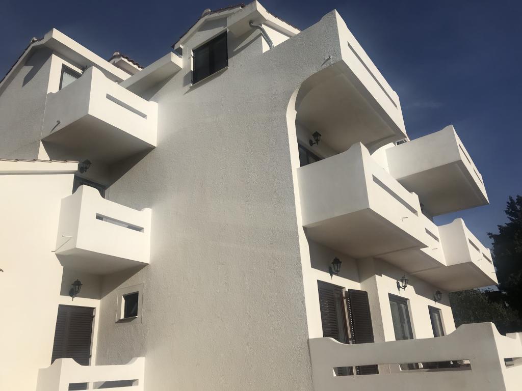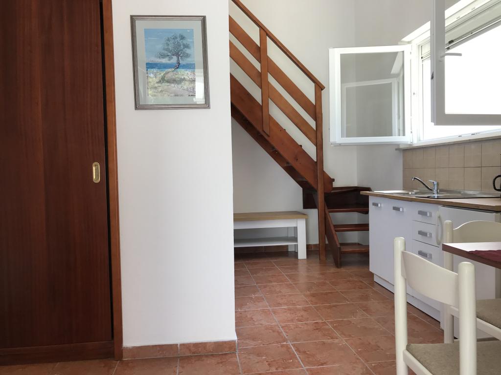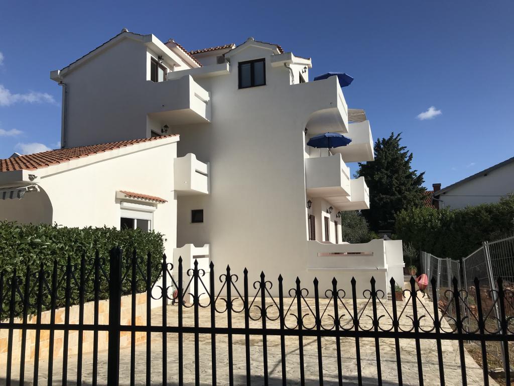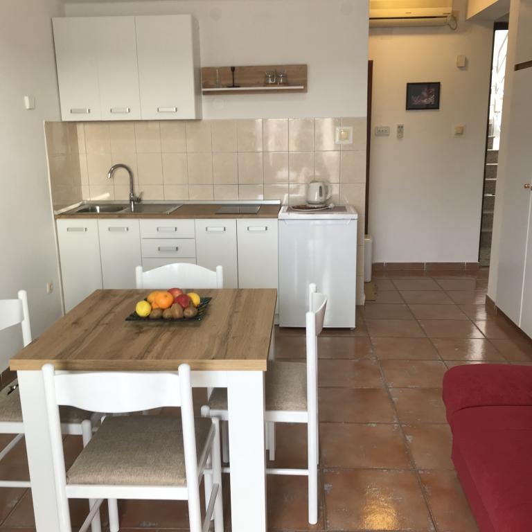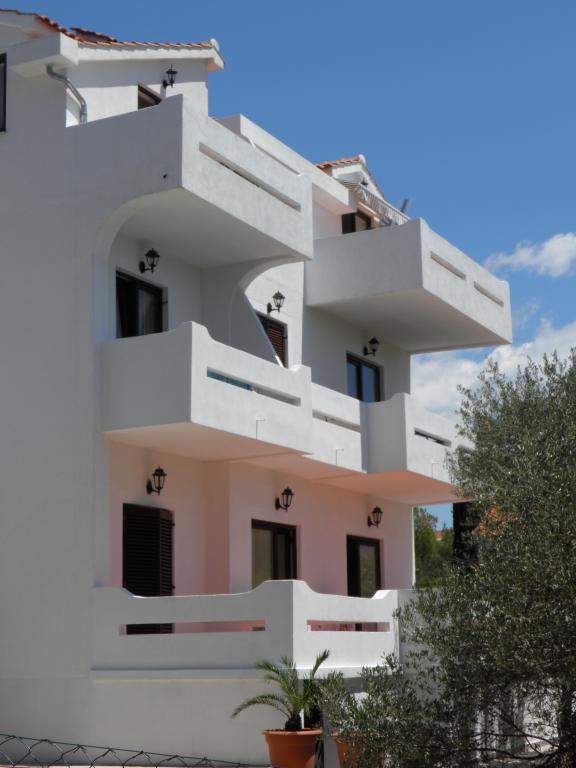 Apartamentele sunt situate lângă o pădure de pini și plaja principală Lolić. Plaja principală este la 50 de metri în fața casei. Centrul orașului este la câteva minute de mers pe jos, care are toate facilitățile necesare. Spațialitatea și simplitatea spațiului, plin de lumină și soare, cu vedere la mare, de pe terasele mari oferă o senzație de energie pozitivă și relaxare. Toate apartamentele sunt dotate cu aer condiționat. Există două apartamente la fiecare etaj și fiecare are intrarea sa separată. Apartamentul pentru patru persoane are doua dormitoare separate (paturi 160x200), un living mare cu bucatarie si o baie. In living exista o canapea care poate fi transformata in pat (120x200) daca este nevoie. Apartamentele pentru doua persoane au un dormitor separat (pat 160x200), un living cu o bucatarie si o baie In living exista o canapea extensibila care poate fi folosita ca pat 120x200. Garsoniera este la parterul casei si are doua etaje La primul etaj se afla un dormitor (pat 140x200 la parter se afla o bucatarie, o baie si o terasa mare).