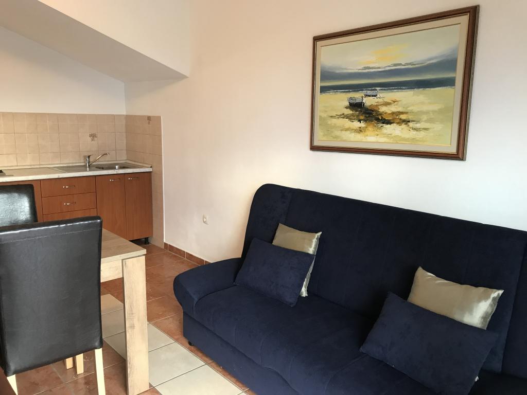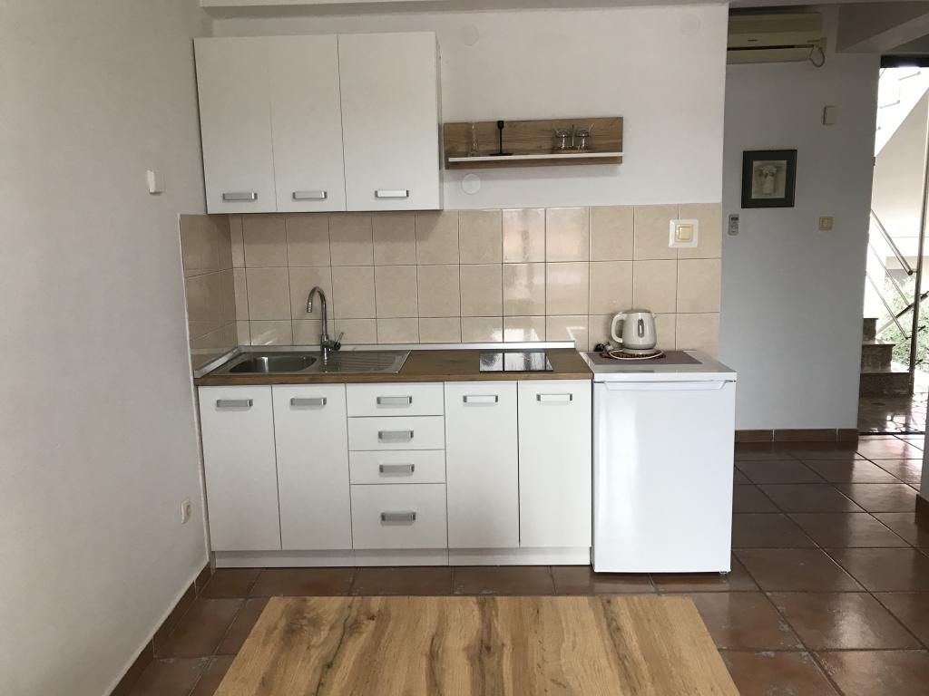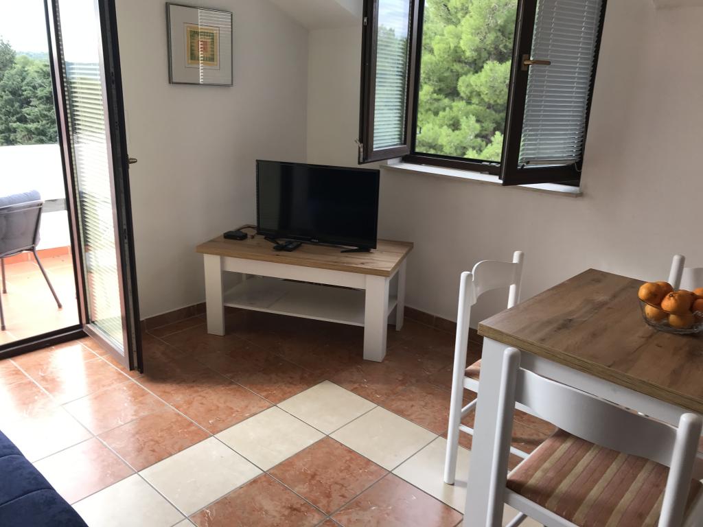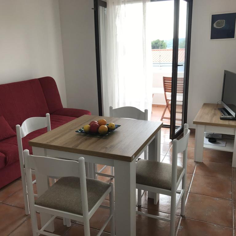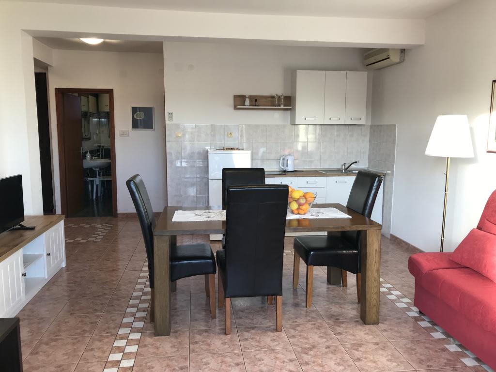 Apartamentele sunt situate lângă o pădure de pini și plaja principală Lolić. Plaja principală este la 50 de metri în fața casei. Centrul orașului este la câteva minute de mers pe jos, care are toate facilitățile necesare. Spațialitatea și simplitatea spațiului, plin de lumină și soare, cu vedere la mare, de pe terasele mari oferă o senzație de energie pozitivă și relaxare. Toate apartamentele sunt dotate cu aer condiționat. Există două apartamente la fiecare etaj și fiecare are intrarea sa separată. Apartamentul pentru patru persoane are doua dormitoare separate (paturi 160x200), un living mare cu bucatarie si o baie. In living exista o canapea care poate fi transformata in pat (120x200) daca este nevoie. Apartamentele pentru doua persoane au un dormitor separat (pat 160x200), un living cu o bucatarie si o baie In living exista o canapea extensibila care poate fi folosita ca pat 120x200. Garsoniera este la parterul casei si are doua etaje La primul etaj se afla un dormitor (pat 140x200 la parter se afla o bucatarie, o baie si o terasa mare).