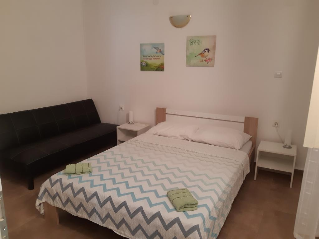 Apartamentele mobilate confortabil și funcțional sunt situate într-o casă de familie, într-o zonă liniștită din Pirovac, ideale pentru familii și cupluri care caută o vacanță de vară relaxantă. Proprietatea oferă apartamente cu aer condiționat, bucătării complet utilate, băi și terase cu vedere la grădină. Curtea este decorată și înconjurată de verdeață și conține un grătar și un duș exterior. Există o masă cu umbrelă de soare pe fiecare terasă. Oaspeții au la dispoziție Wi-Fi gratuit și parcare privată în curte. Casa este situată la 70 m de plaja Lolić, fiind potrivită în special pentru familiile cu copii mici datorită mării puțin adânci și umbrei adânci a pinilor. Se află la doar 10 minute de mers pe jos de centrul orașului Pirovac, unde puteți găsi toate facilitățile pentru un sejur plăcut și relaxant (magazine, cafenele, restaurante, brutării, parcuri de distracții pentru copii și multe altele). Vă recomandăm cu siguranță să vizitați Parcul Național Krka, Parcul Național Kornati, Rezervația Naturală Lacul Vrana, precum și Zadar și Šibenik.